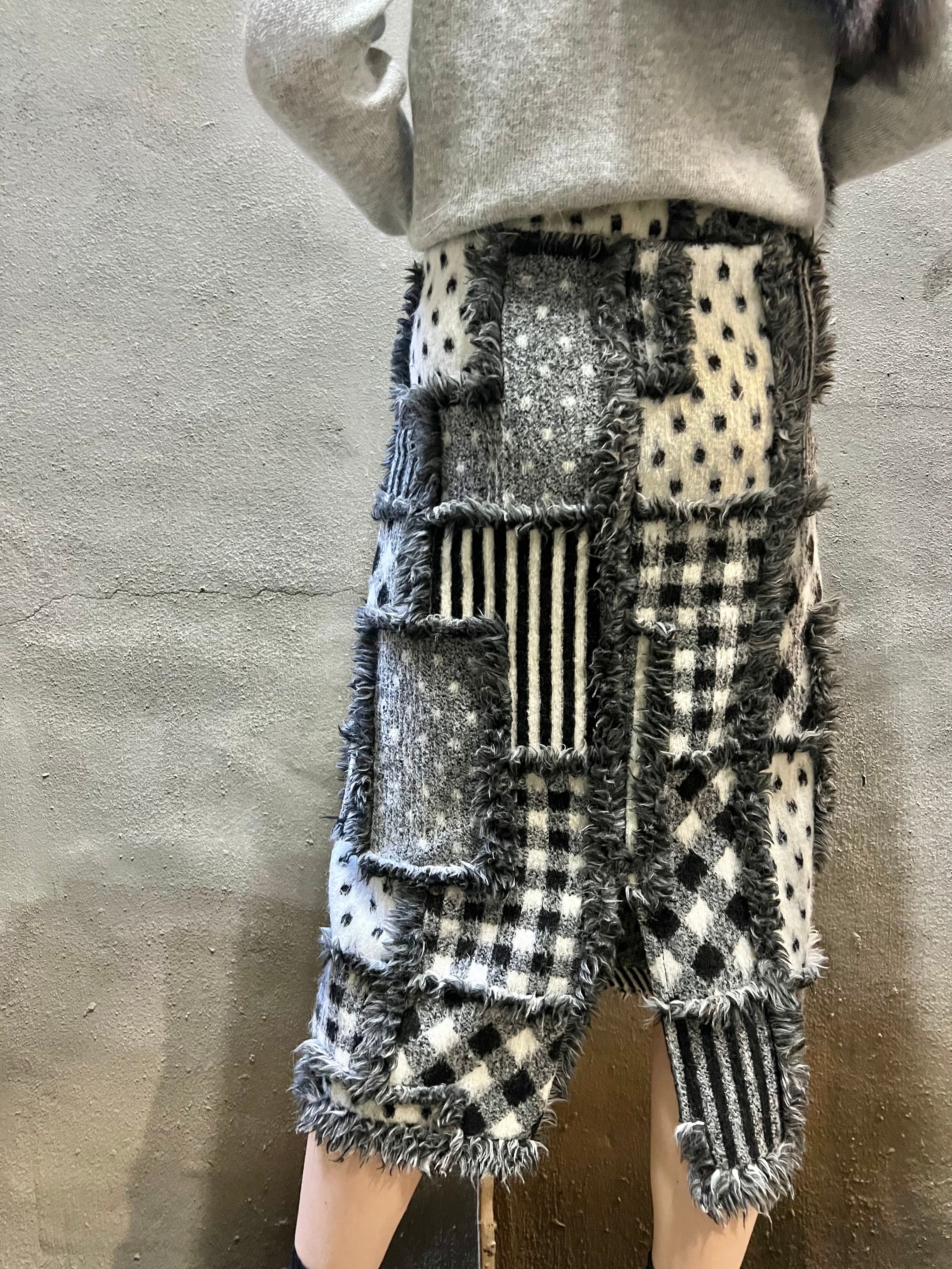 patchwork touch textile tight skirt スカート パッチワーク風 チェック ストライプ ドット タイトスカート