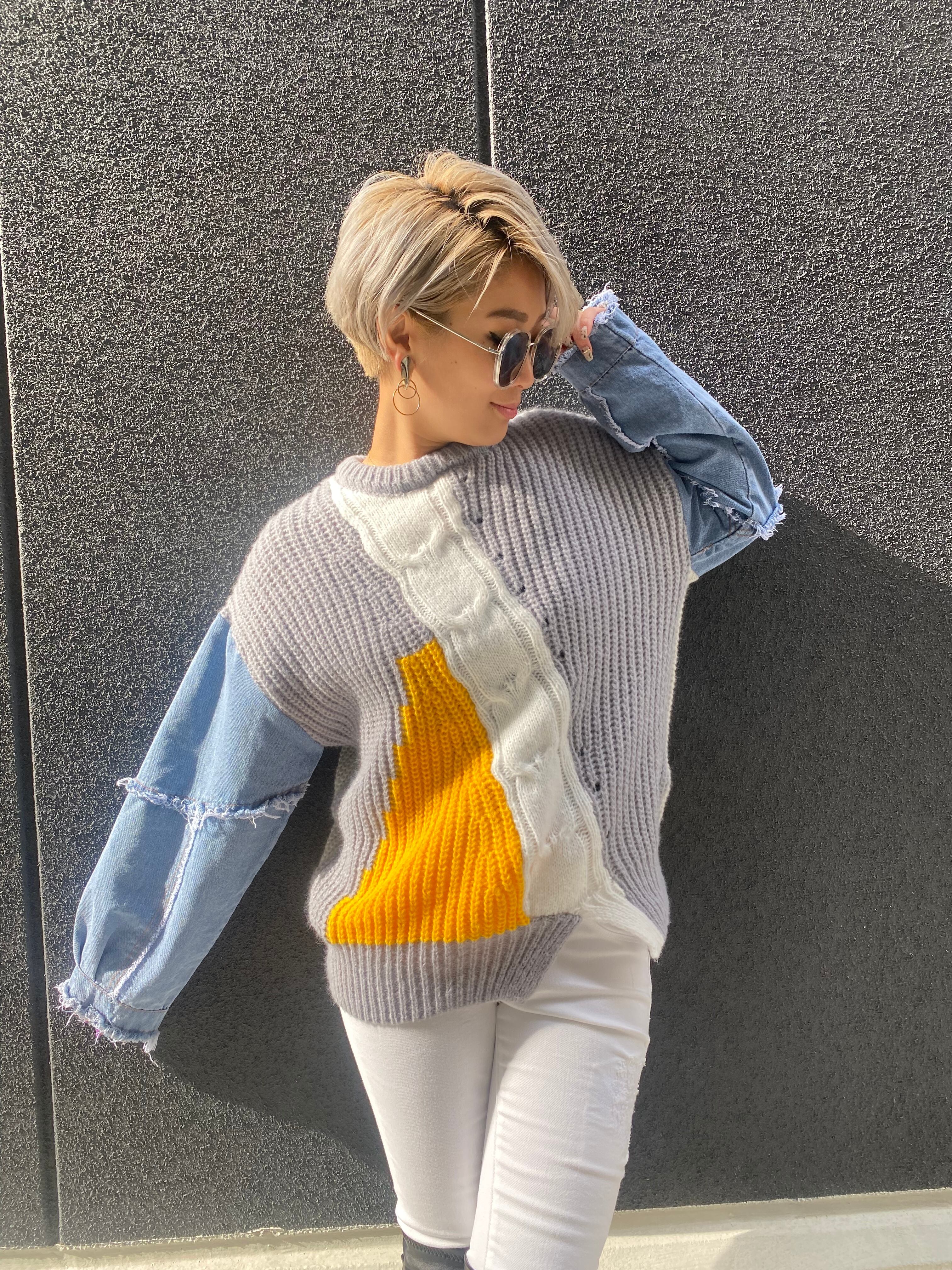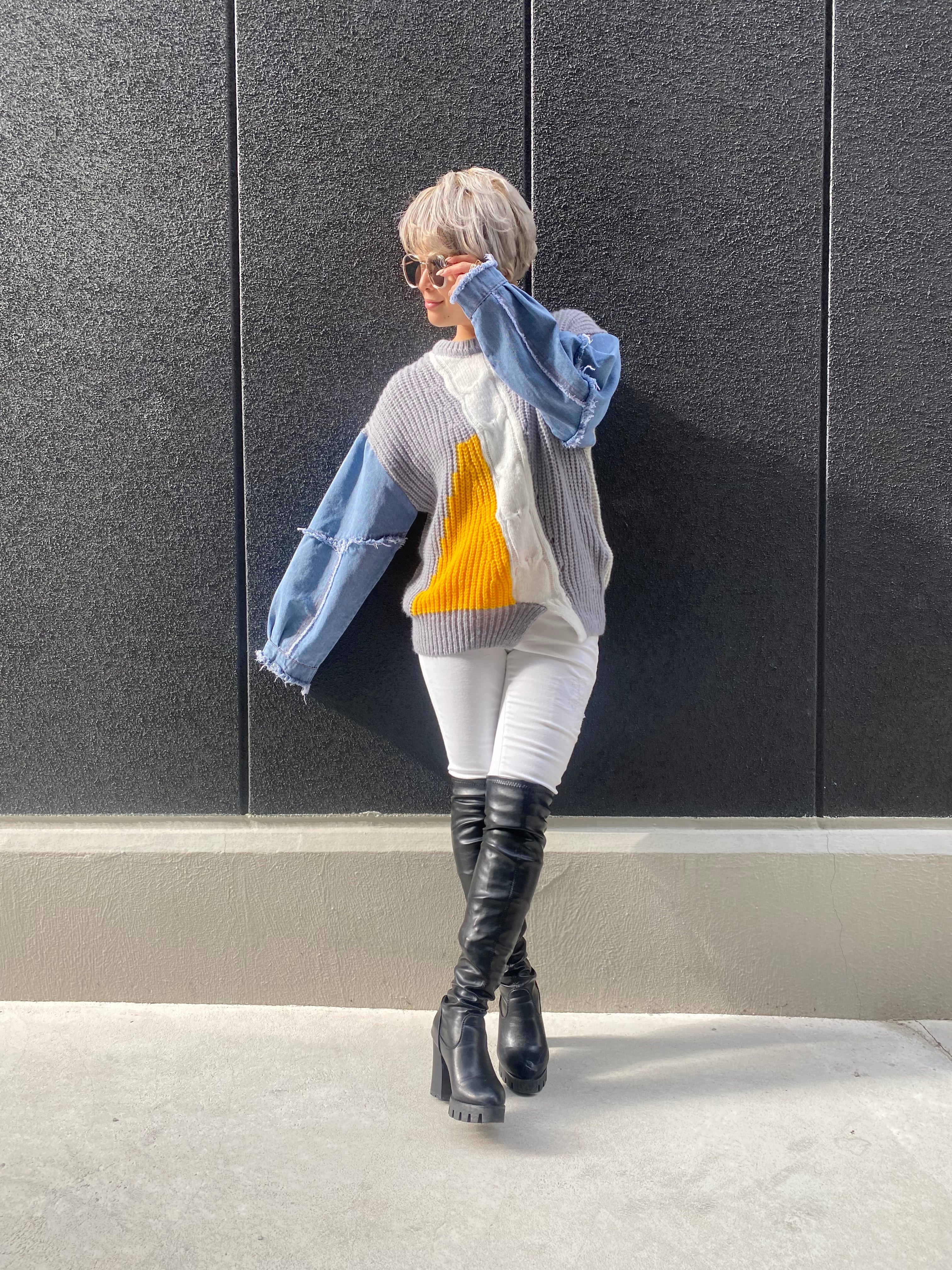 mix knit × denim remake touch tops トップス ニット デニム 切替 カジュアル