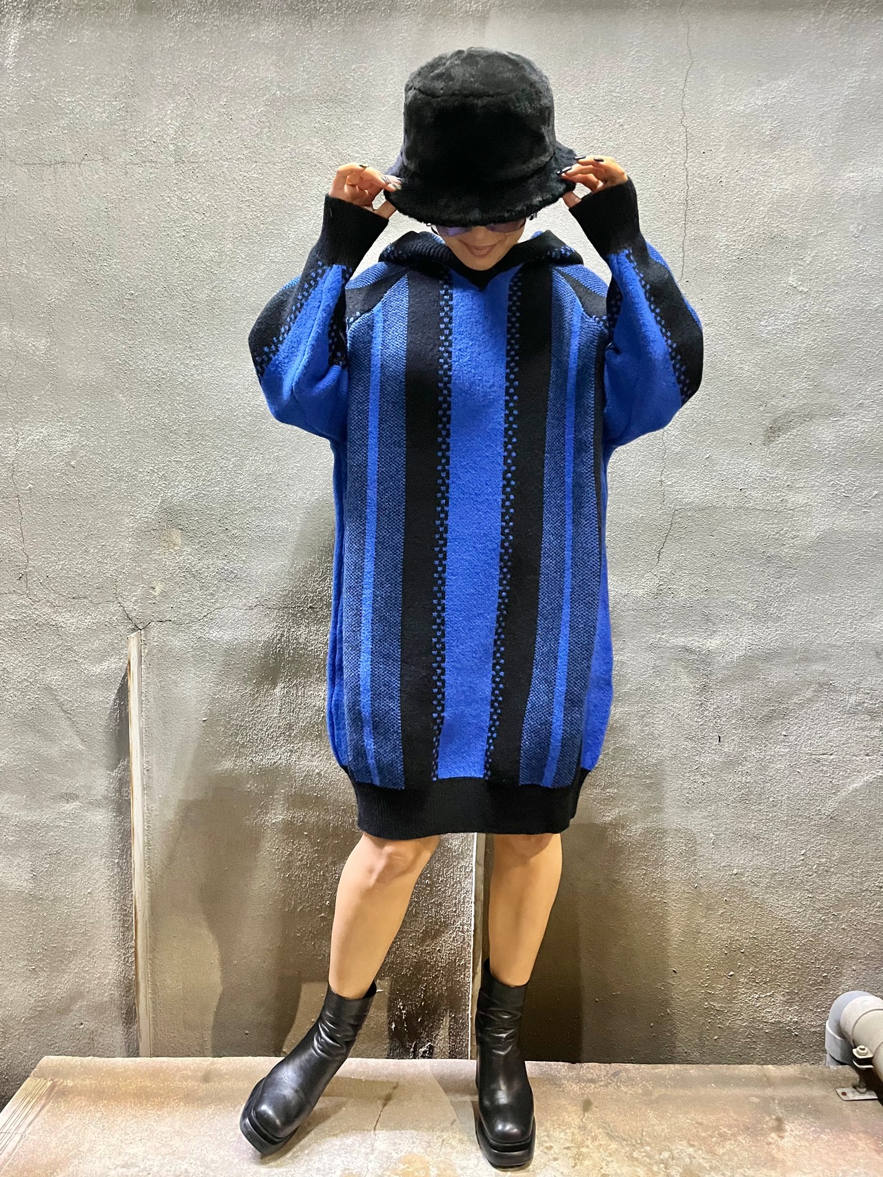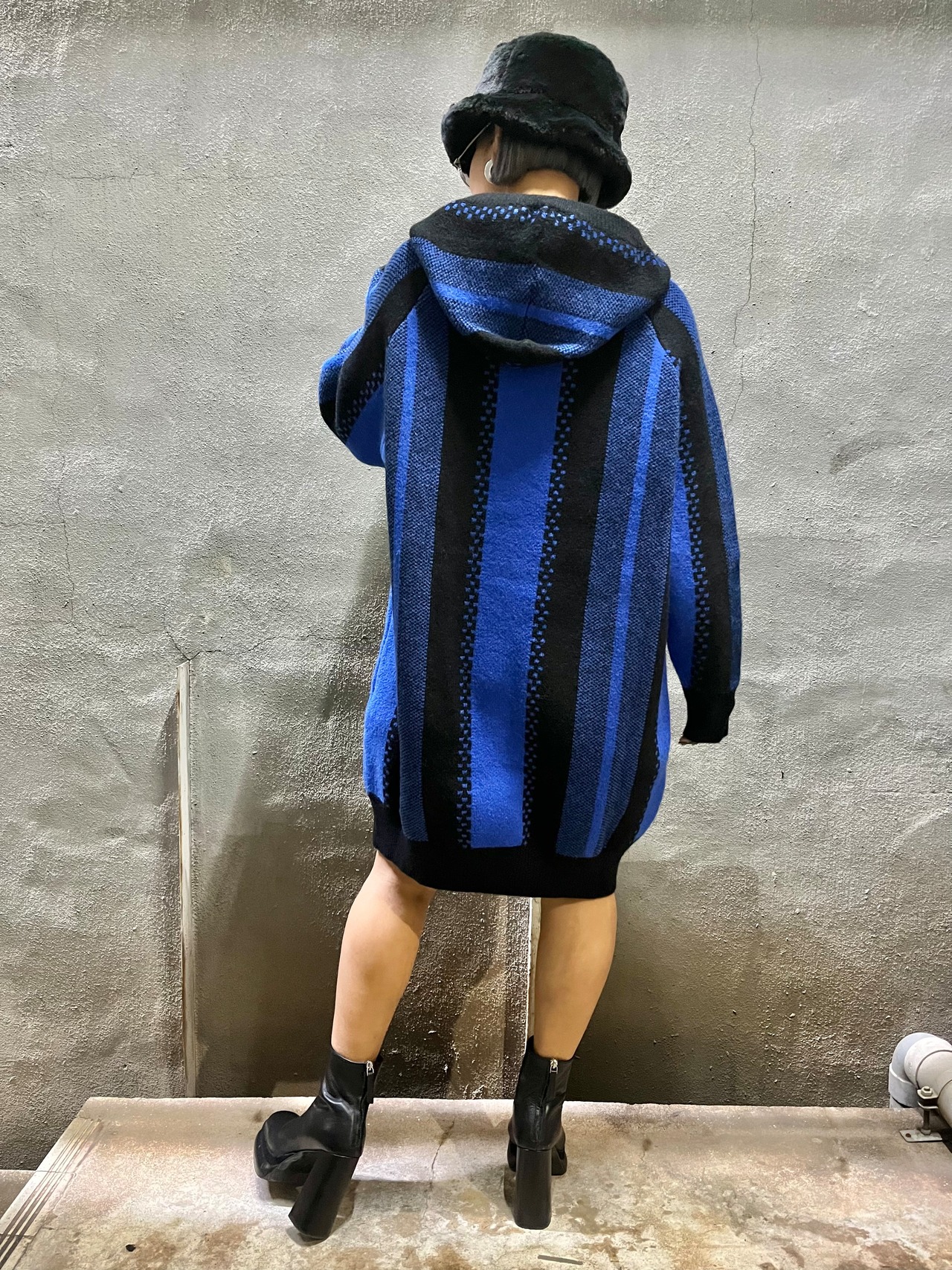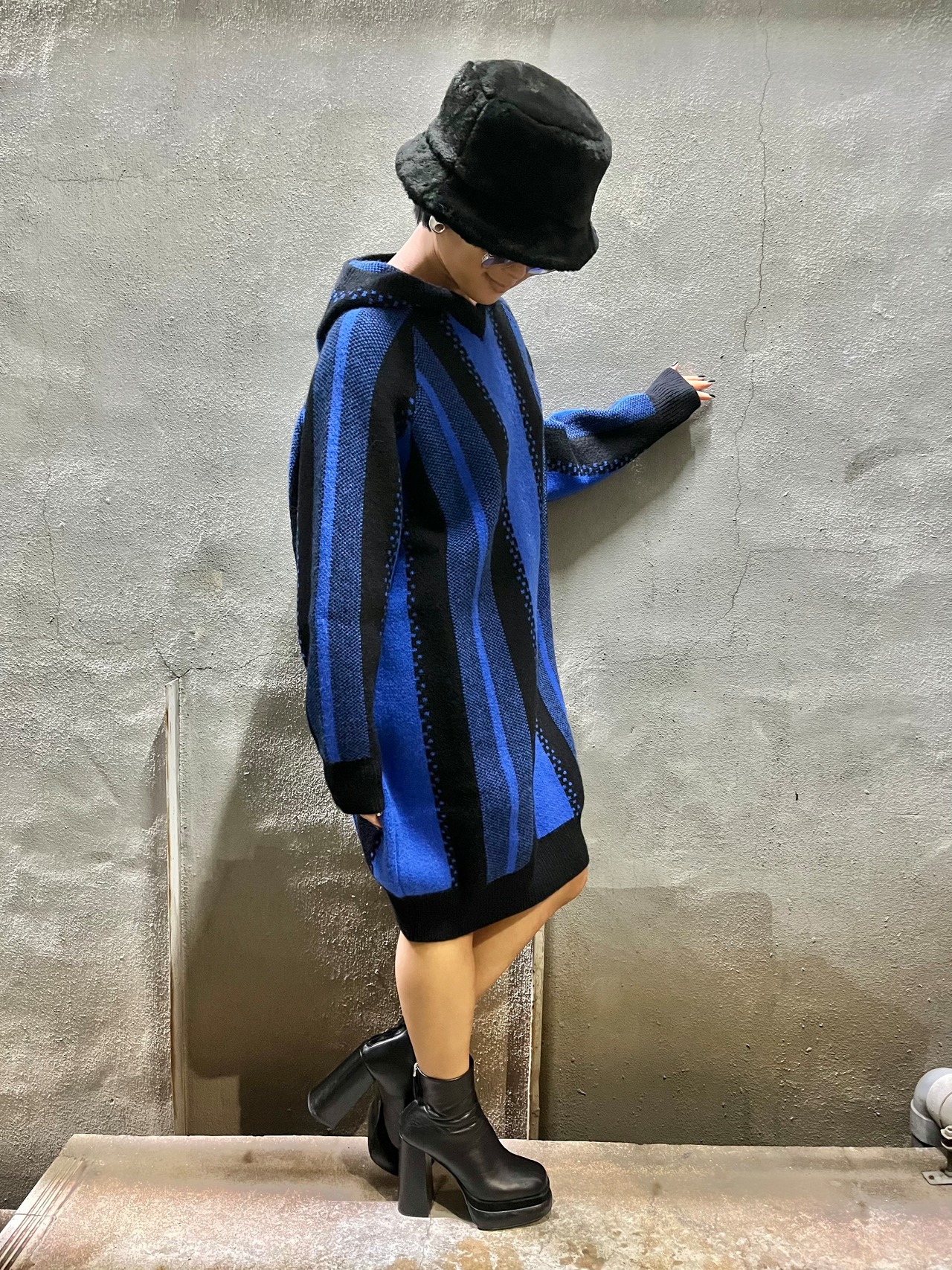 3color stripe knit hoodie one-piece ニット ニットワンピース ニットワンピ ストライプ フーディー