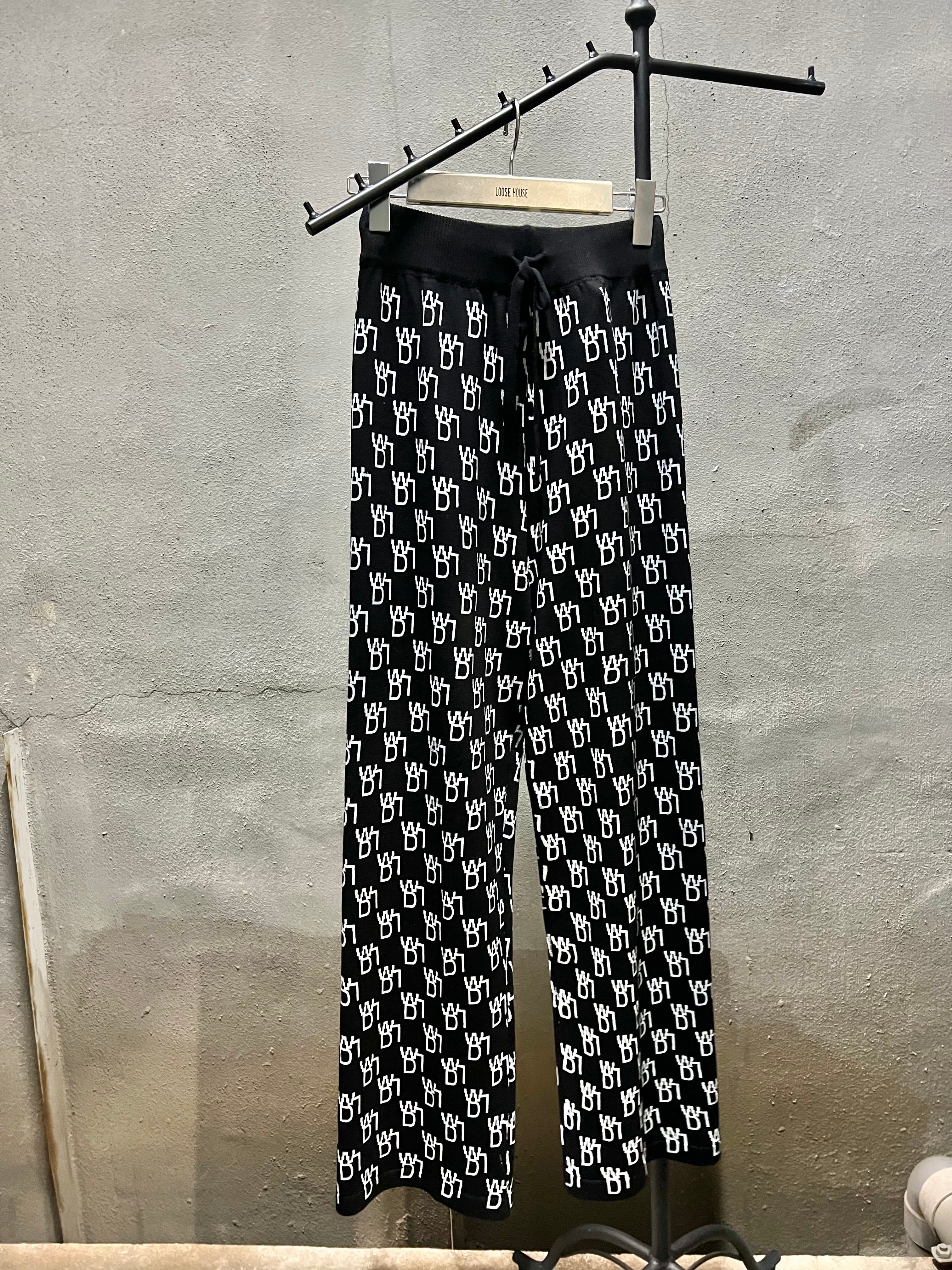 monogram pattern long pants パンツ モノグラム 柄パンツ バイカラー ワイドパンツ 白黒