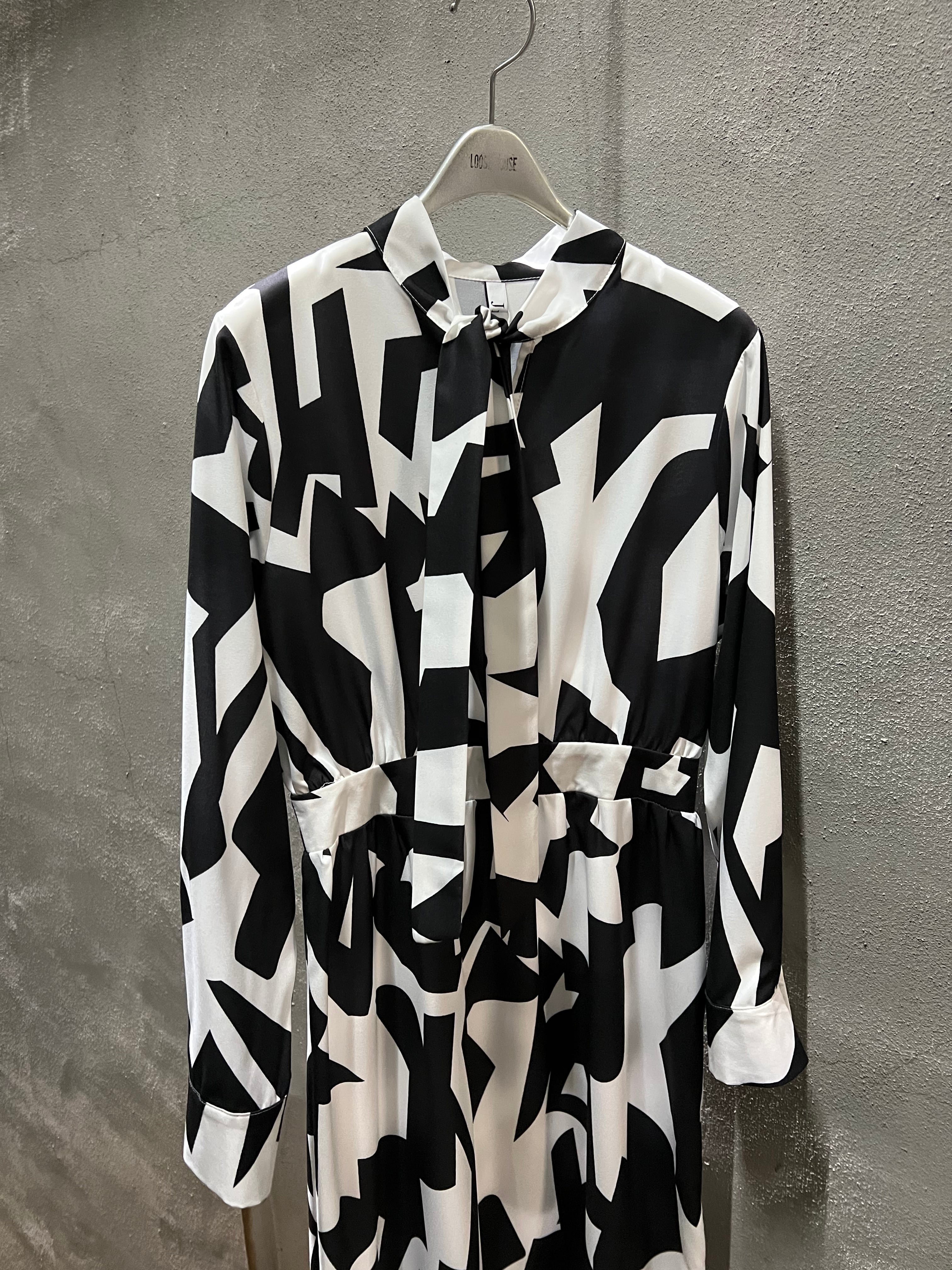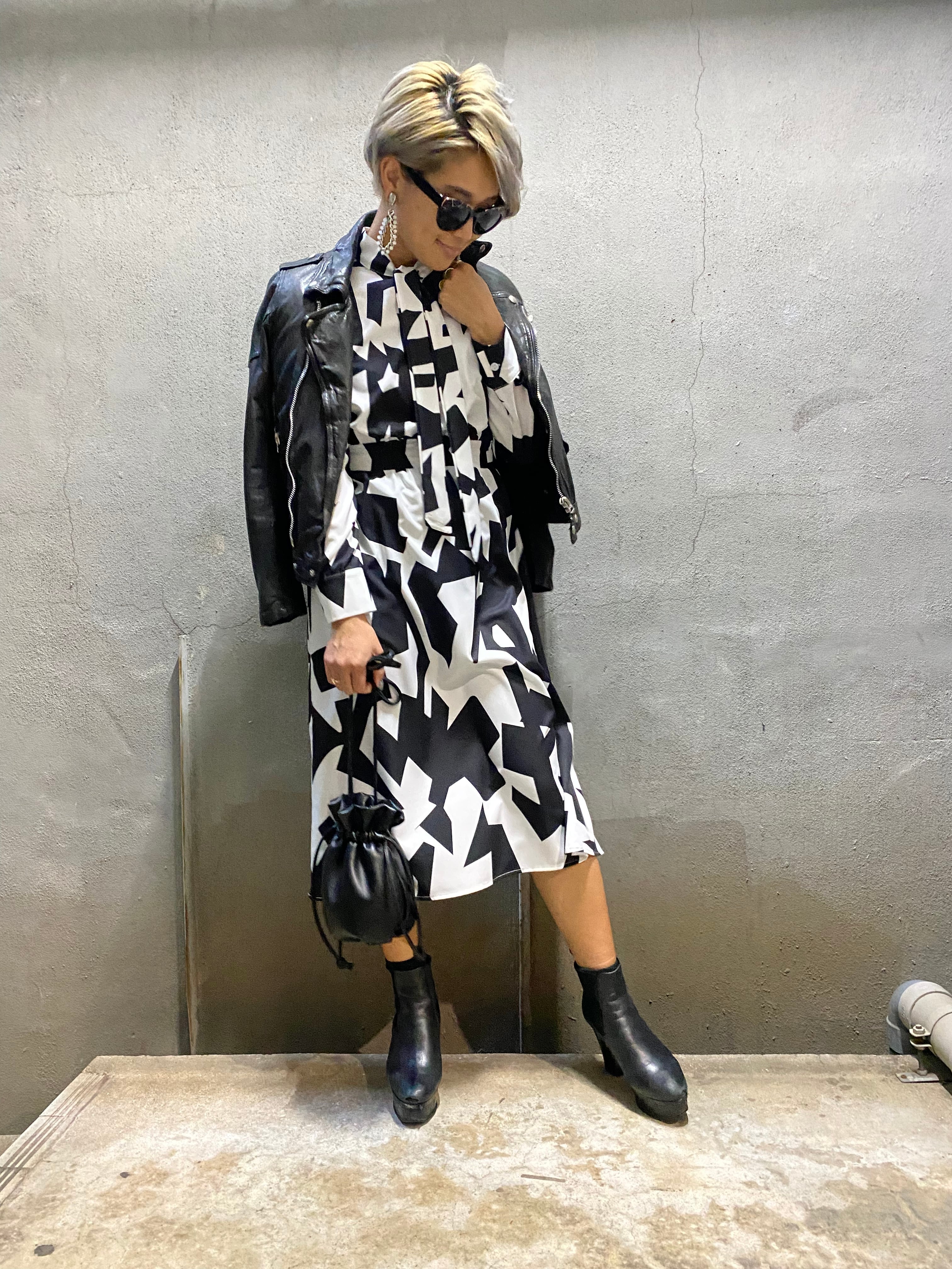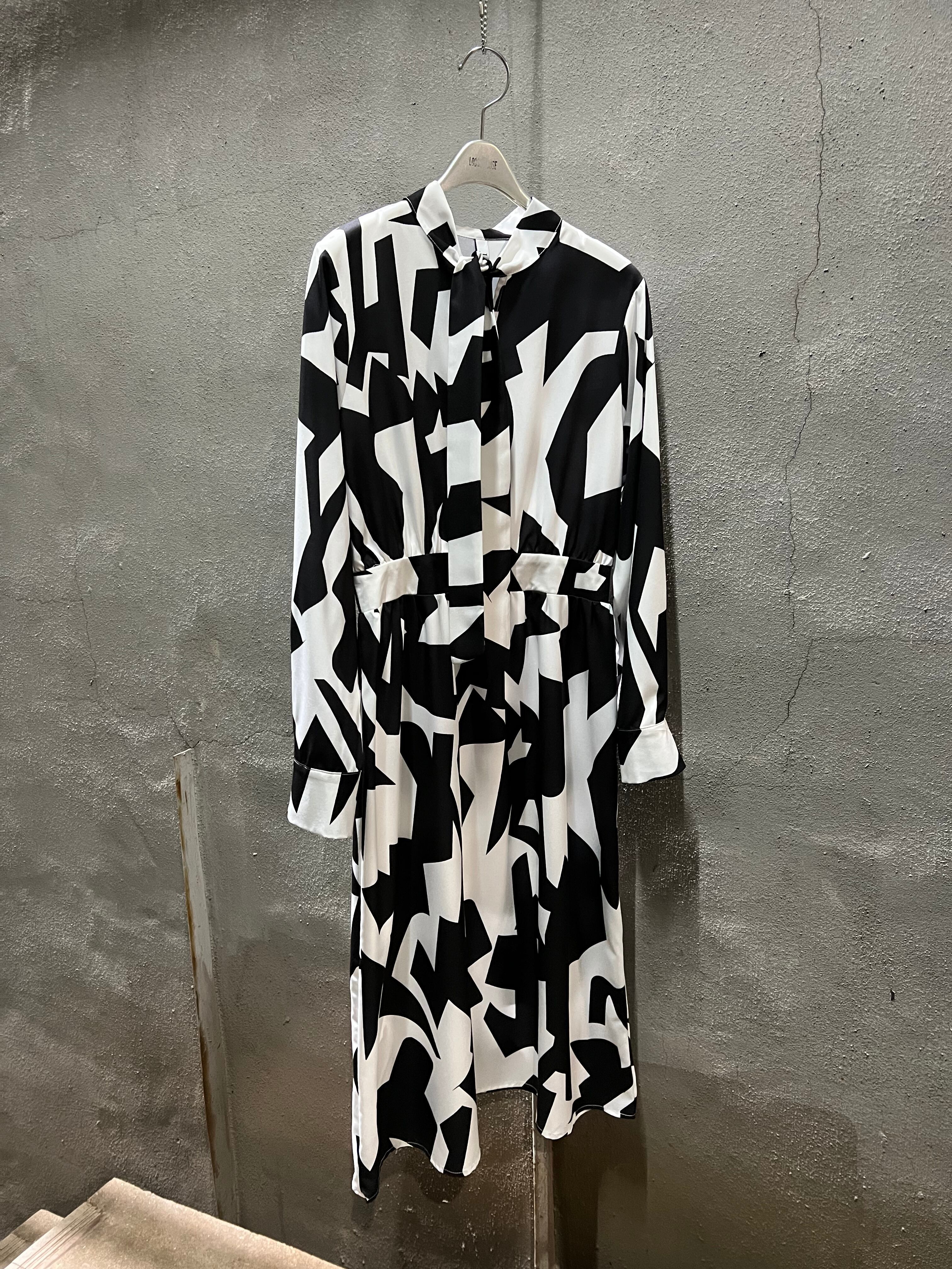 bi-color print bow-tie design one-piece ワンピース ボウタイリボン バイカラー 白黒 きれいめ