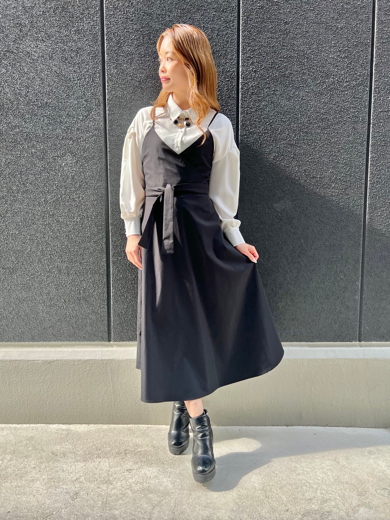 flare jumper skirt and white shirt 2P セット 2点セット ワンピース シャツ 重ね着 レイヤード