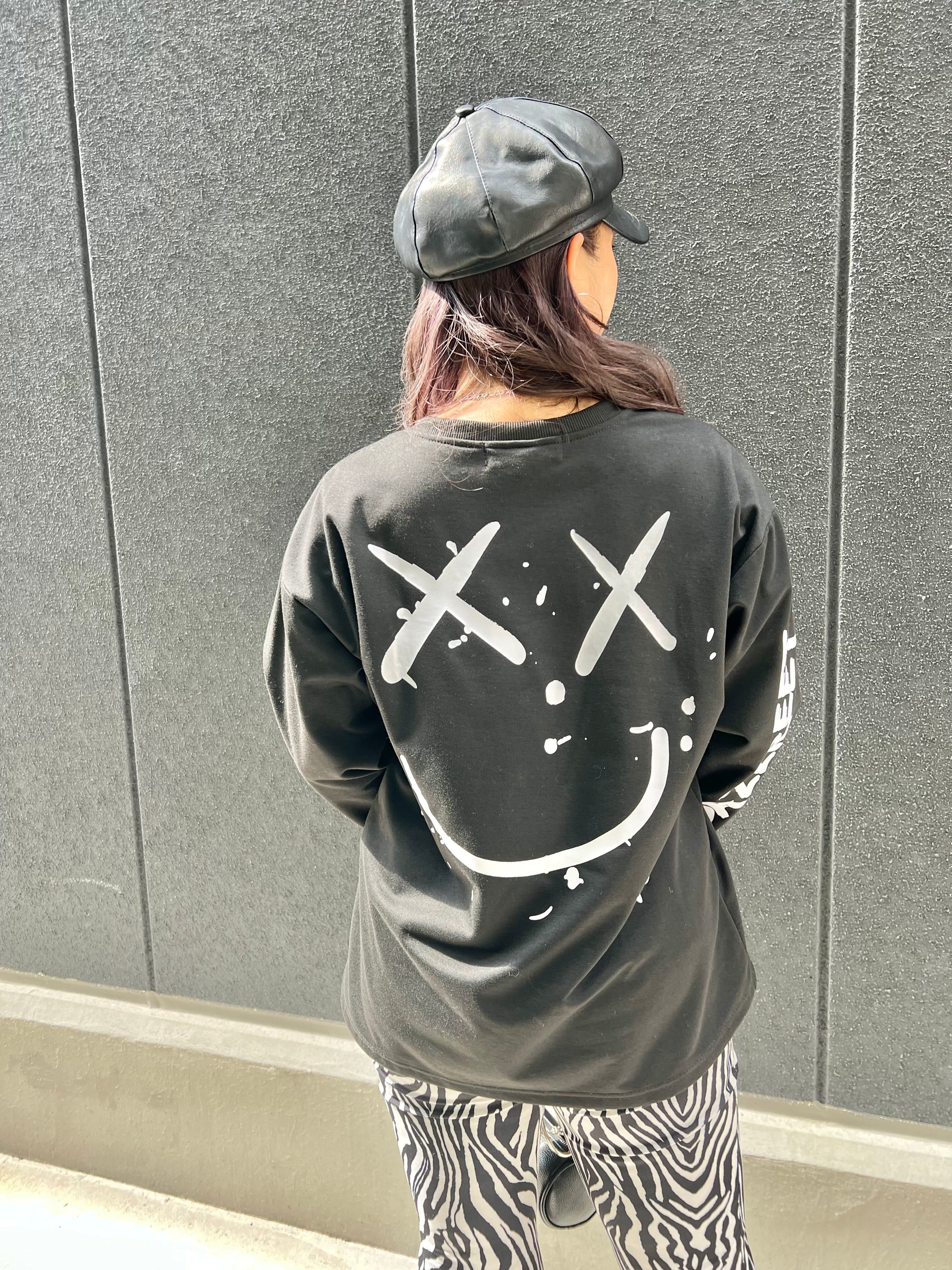×× cat over silhouette pullover tops トップス プルオーバー スウェット ロンT 長袖 カジュアル ラフ らくがき