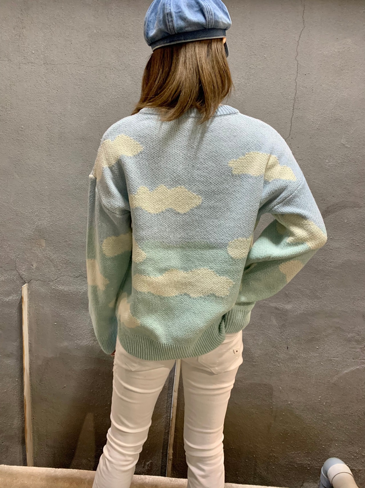 cloud sky knit tops sweater トップス ニット セーター 雲 空 牛 アップリケ