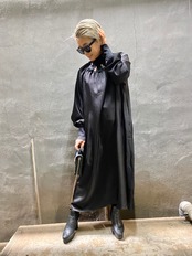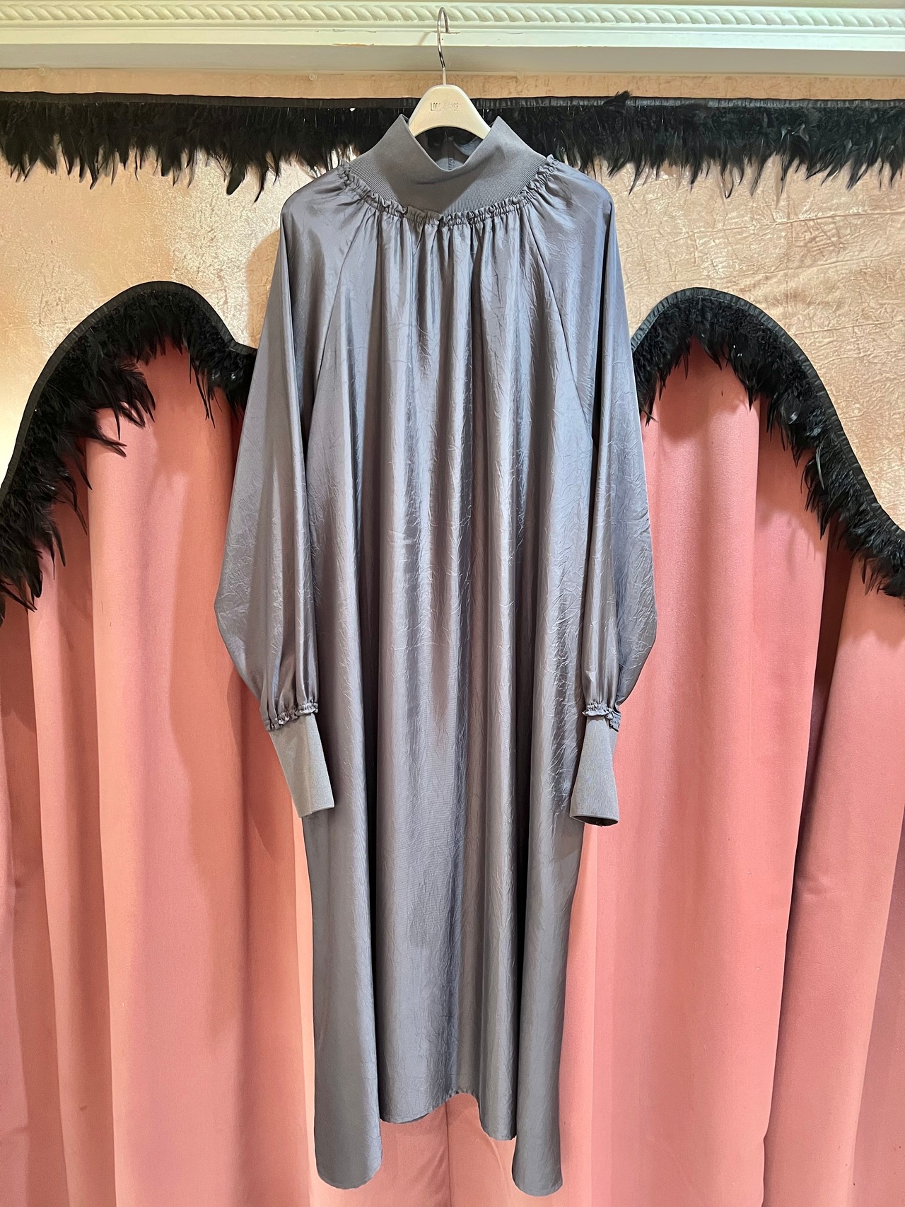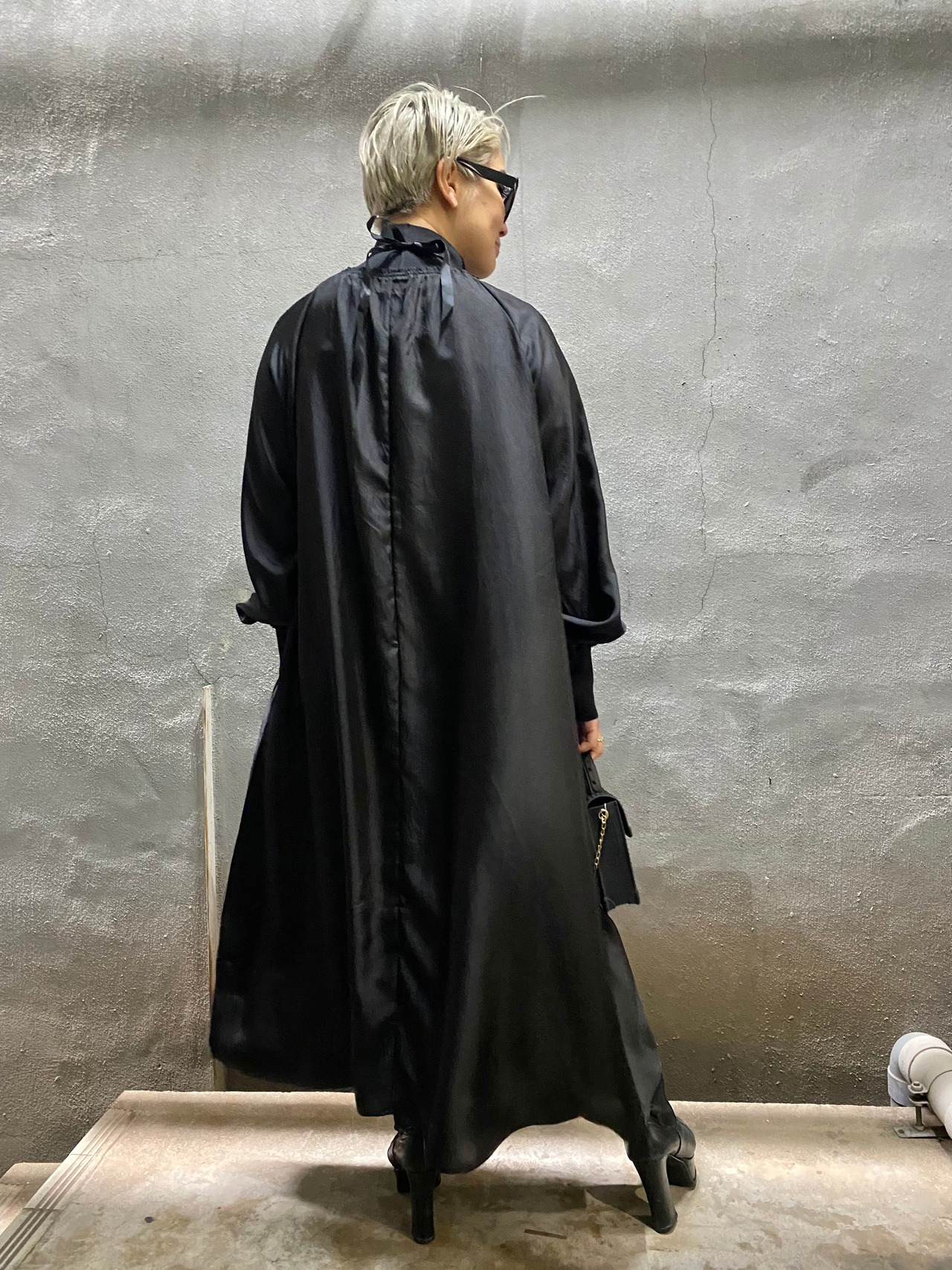 satin touch high neck wide flare one-piece ワンピース ワンピ フレアー ハイネック サテン 光沢 シャイニー