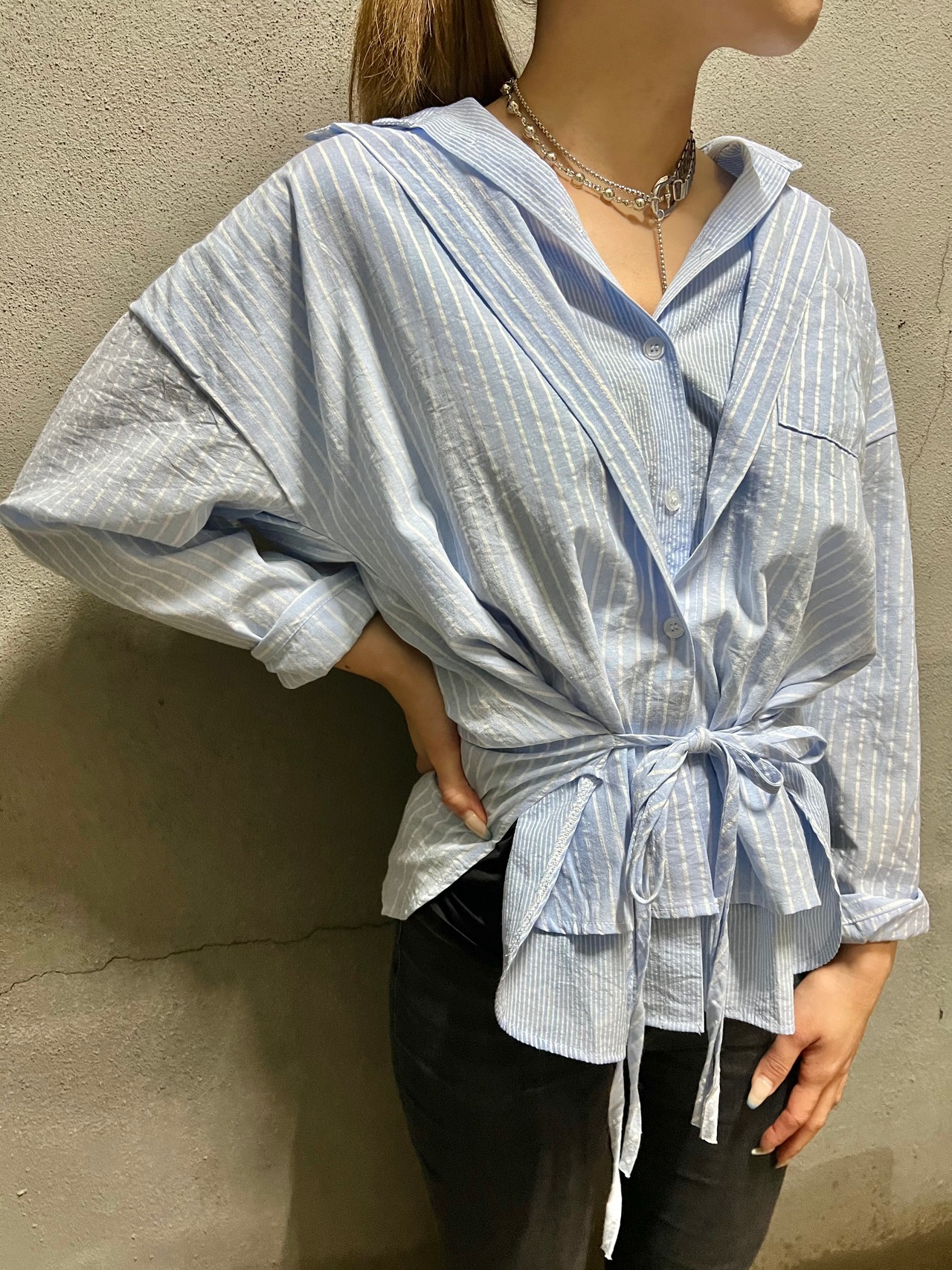 stripe double docking design shirt シャツ デザインシャツ ストライプ ドッキング リボン