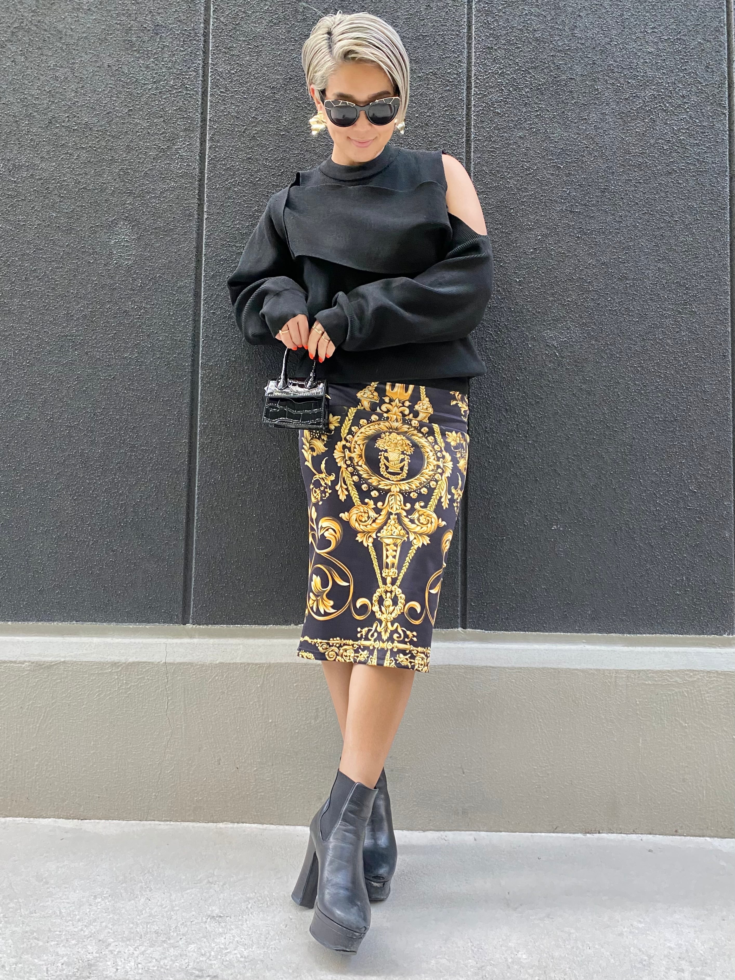 print tight skirt スカート タイトスカート 柄スカート ぴったりめ ストレッチ