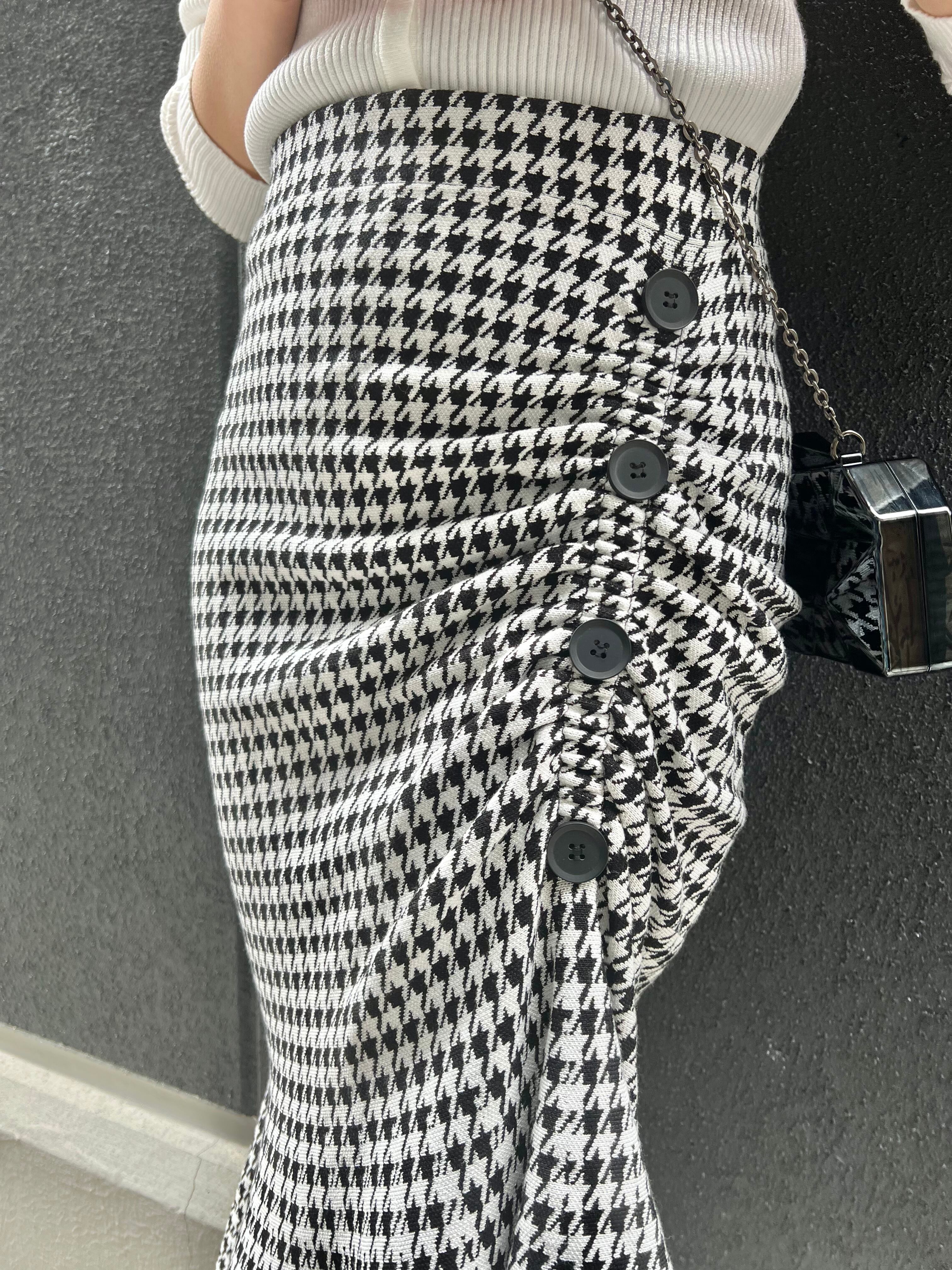 button gather mermaid silhouette design skirt スカート ギャザー マーメイド デザインスカート