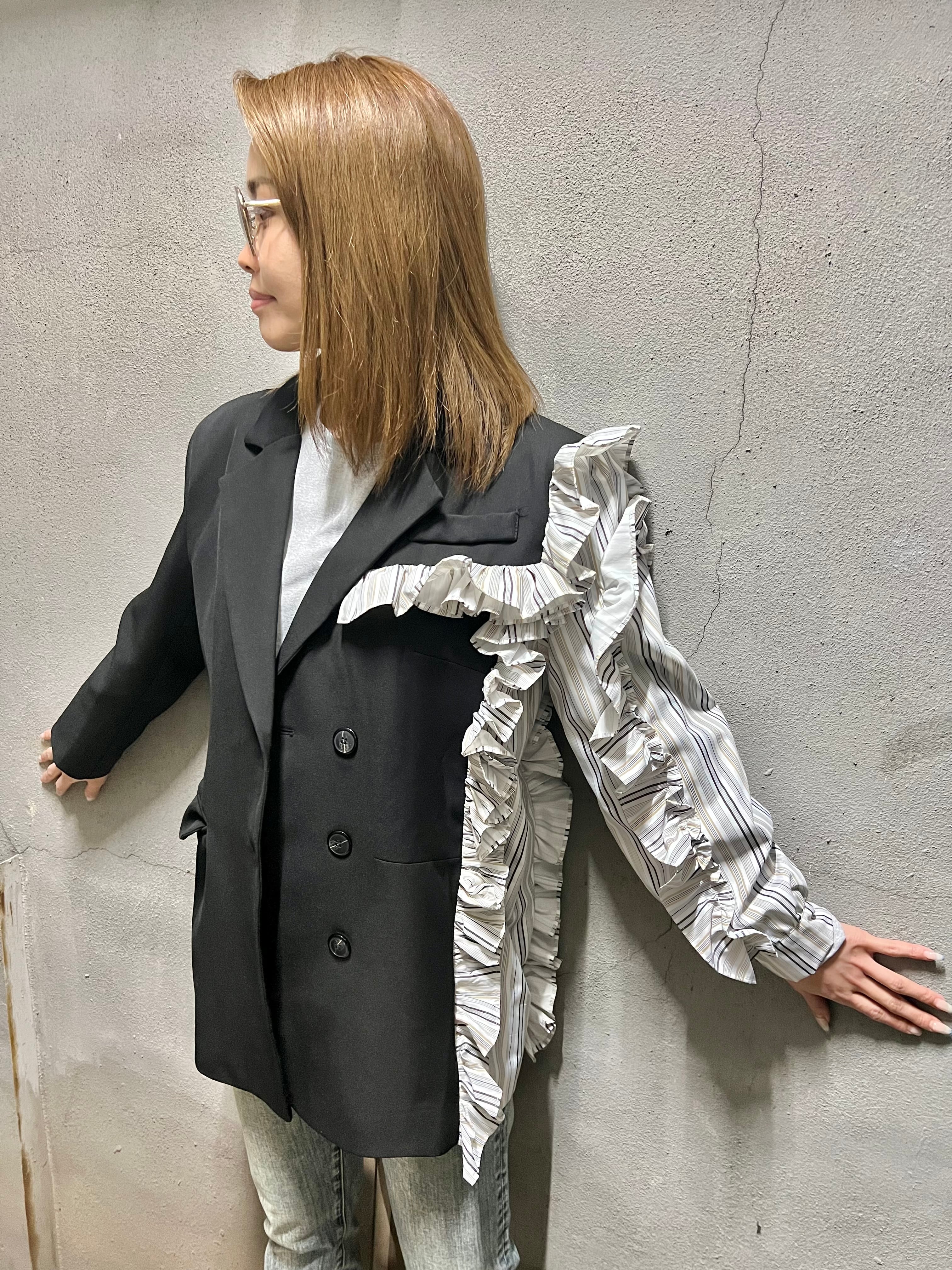 irregular frill stripe jacket ジャケット アシンメトリー ストライプ フリル