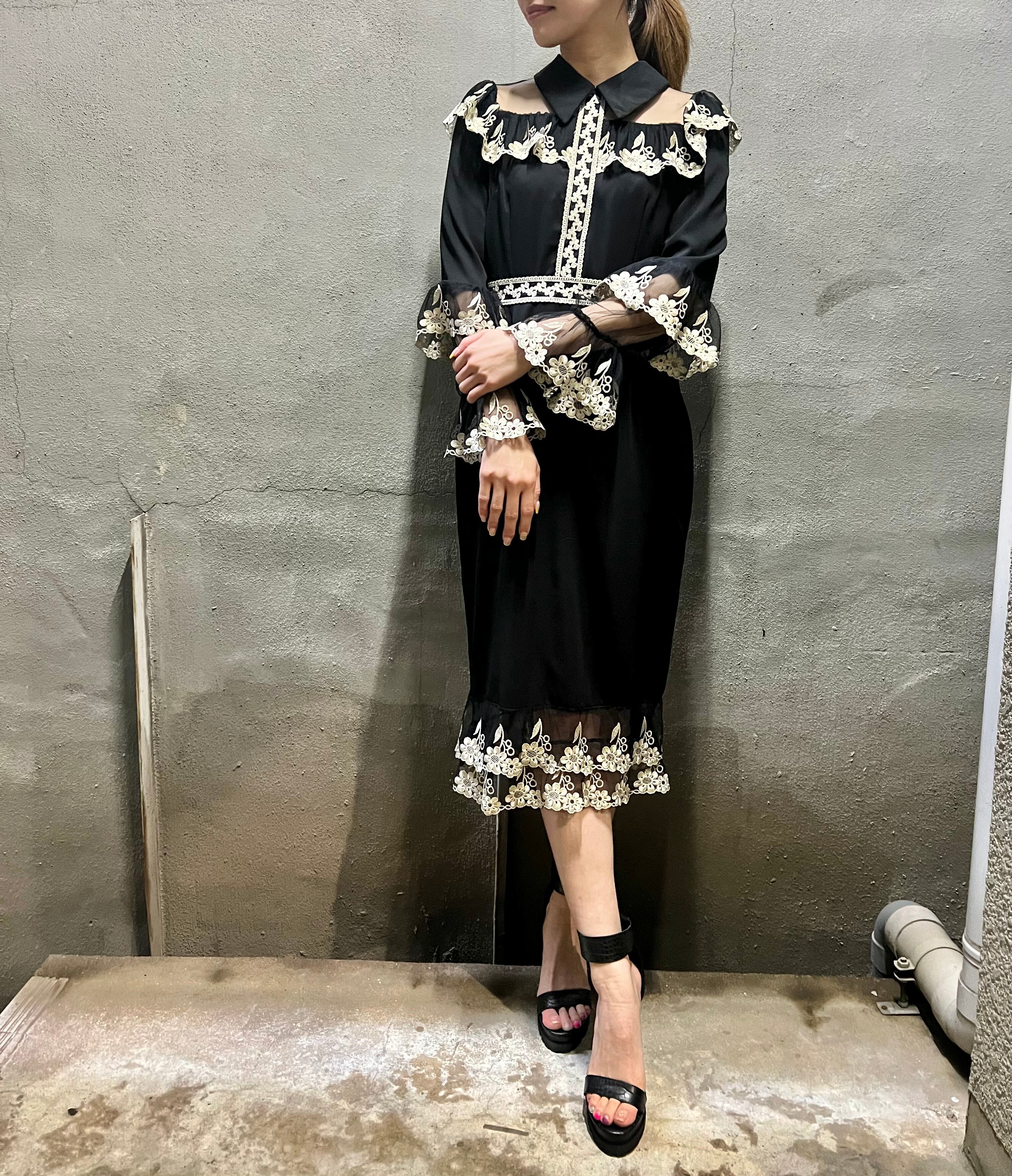 gold lace trimming one-piece ワンピース ワンピ レース 刺繍 シースルー きれいめ ドレス