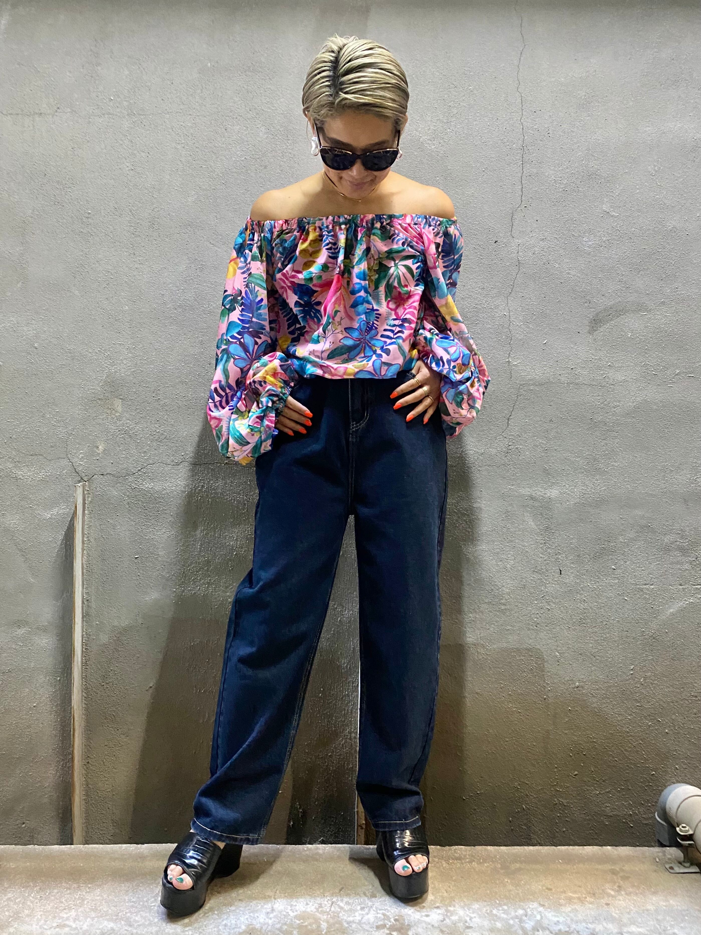 tropical print off shoulder tops トップス オフショルダー オフショル トロピカル フラワー 花柄 カラフル