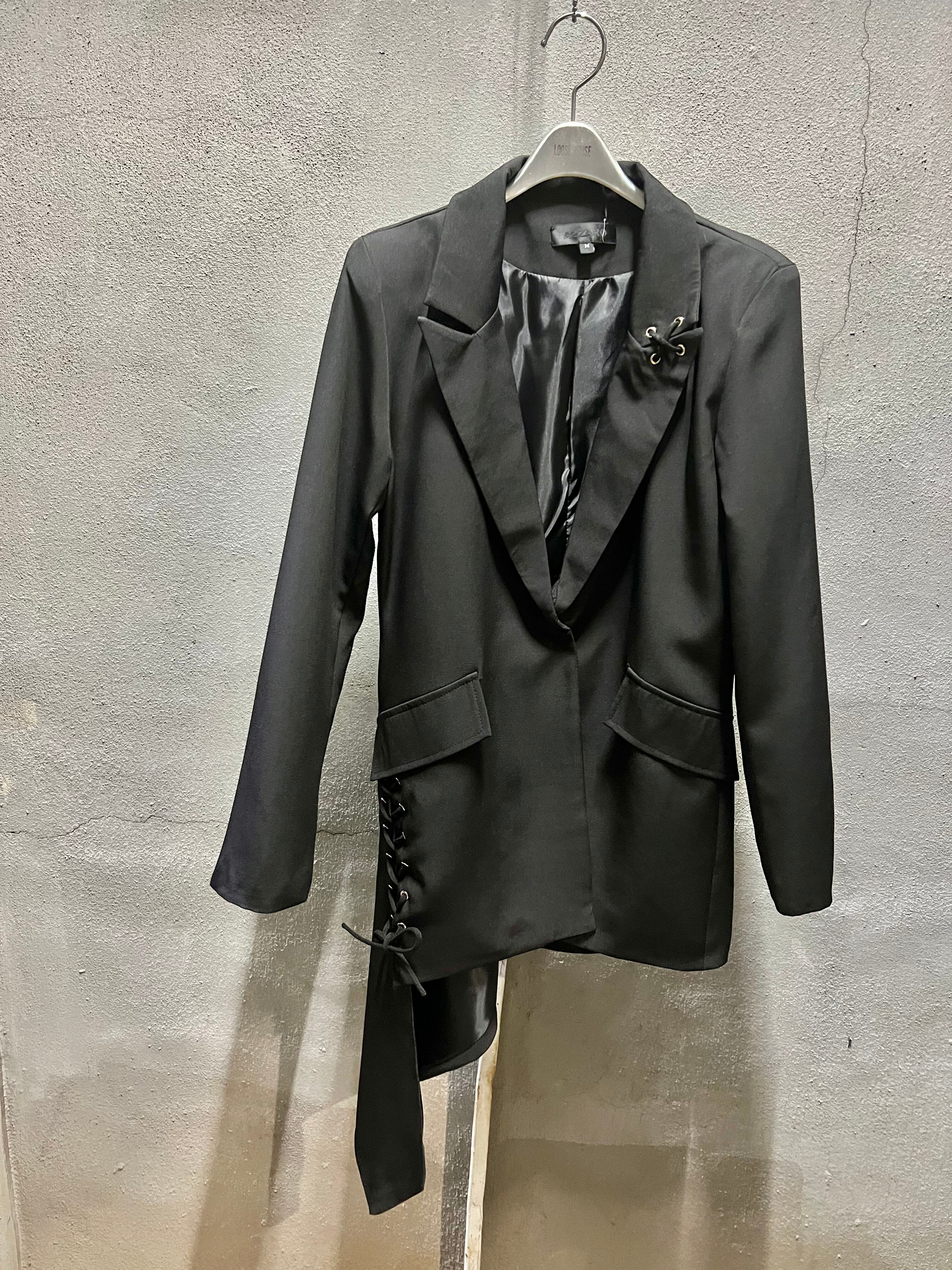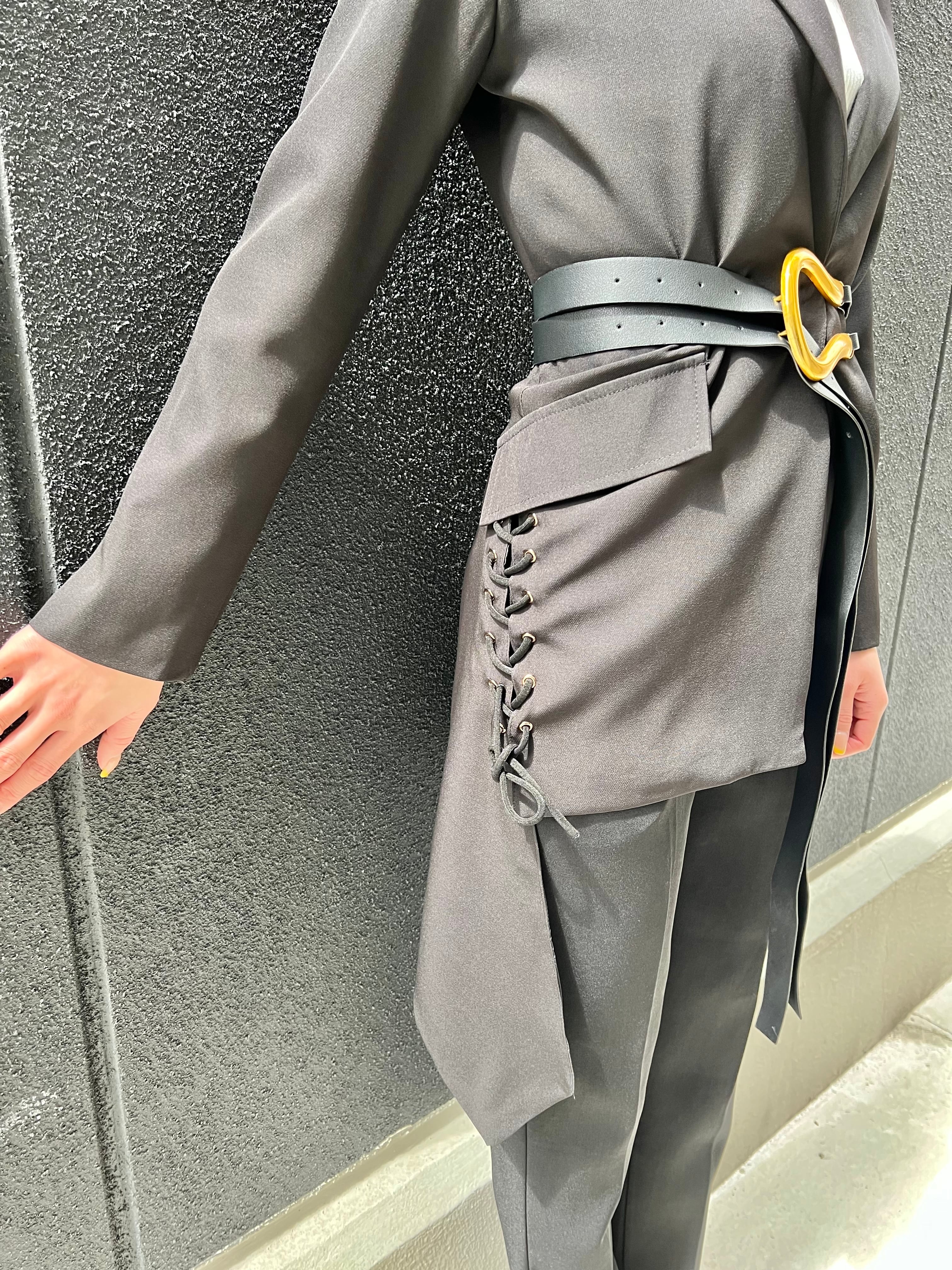 spindle design asymmetry jacket ジャケット アシンメトリー スピンドル レースアップ ベルト付き ベルトセット