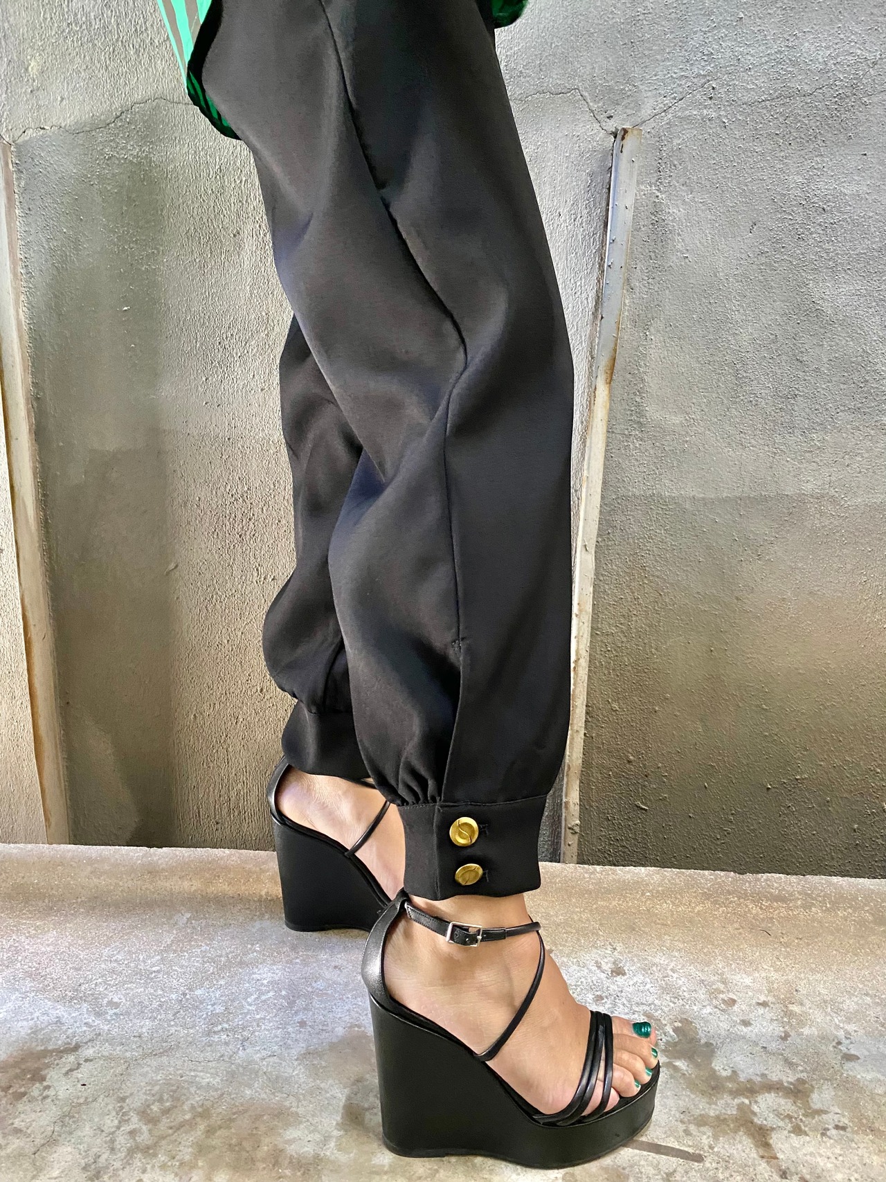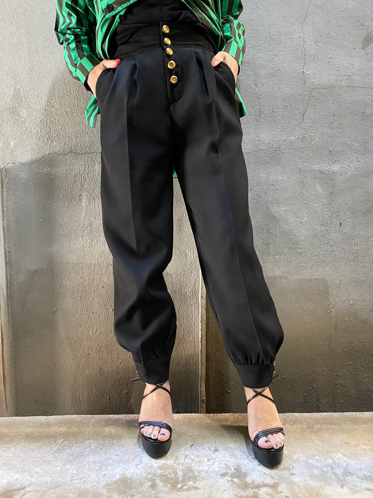 gold button highwaist 2tuck pants パンツ デザインパンツ ハイウエスト 金ボタン ジョガーパンツ