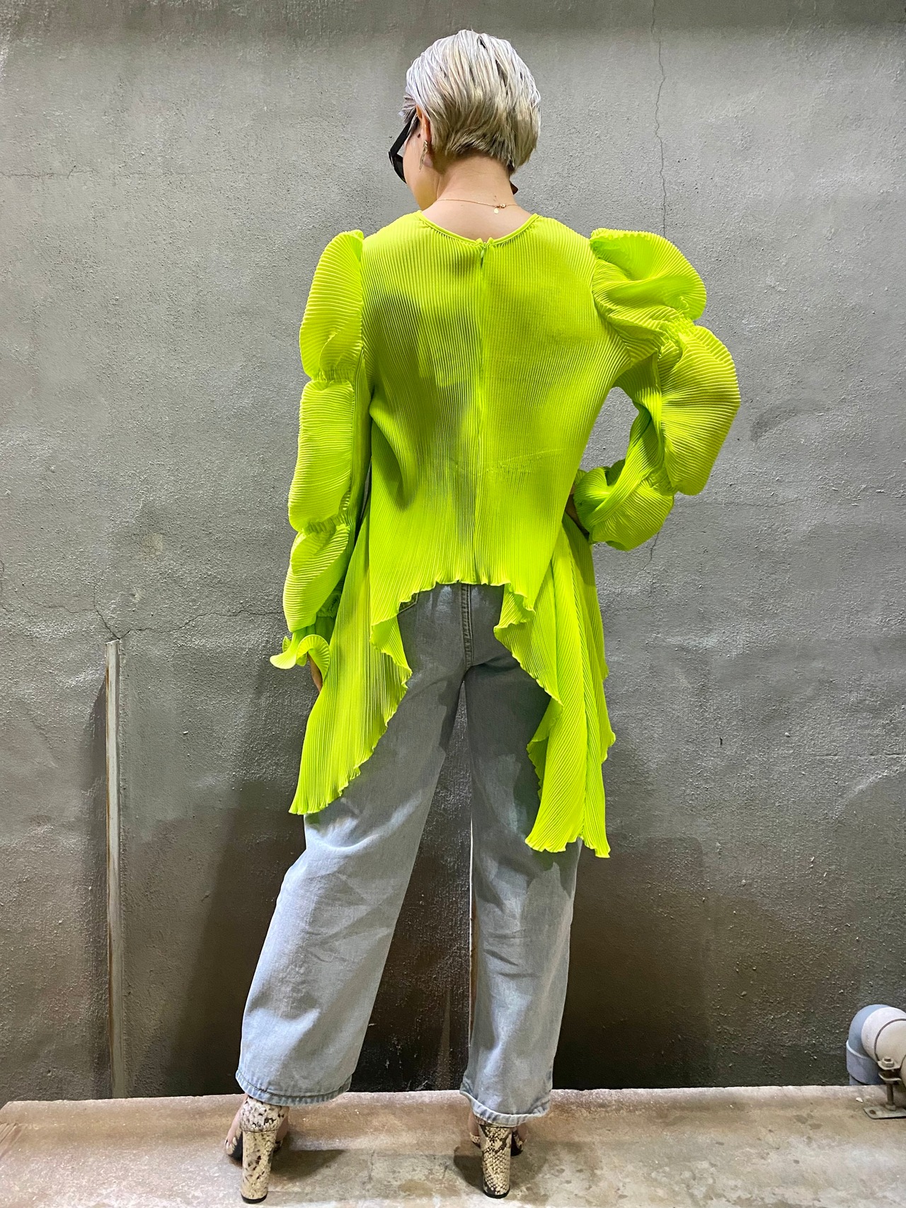 pleats chiffon side long tops トップス シフォン プリーツ デザイントップス サイドロング カラフル ネオンカラー