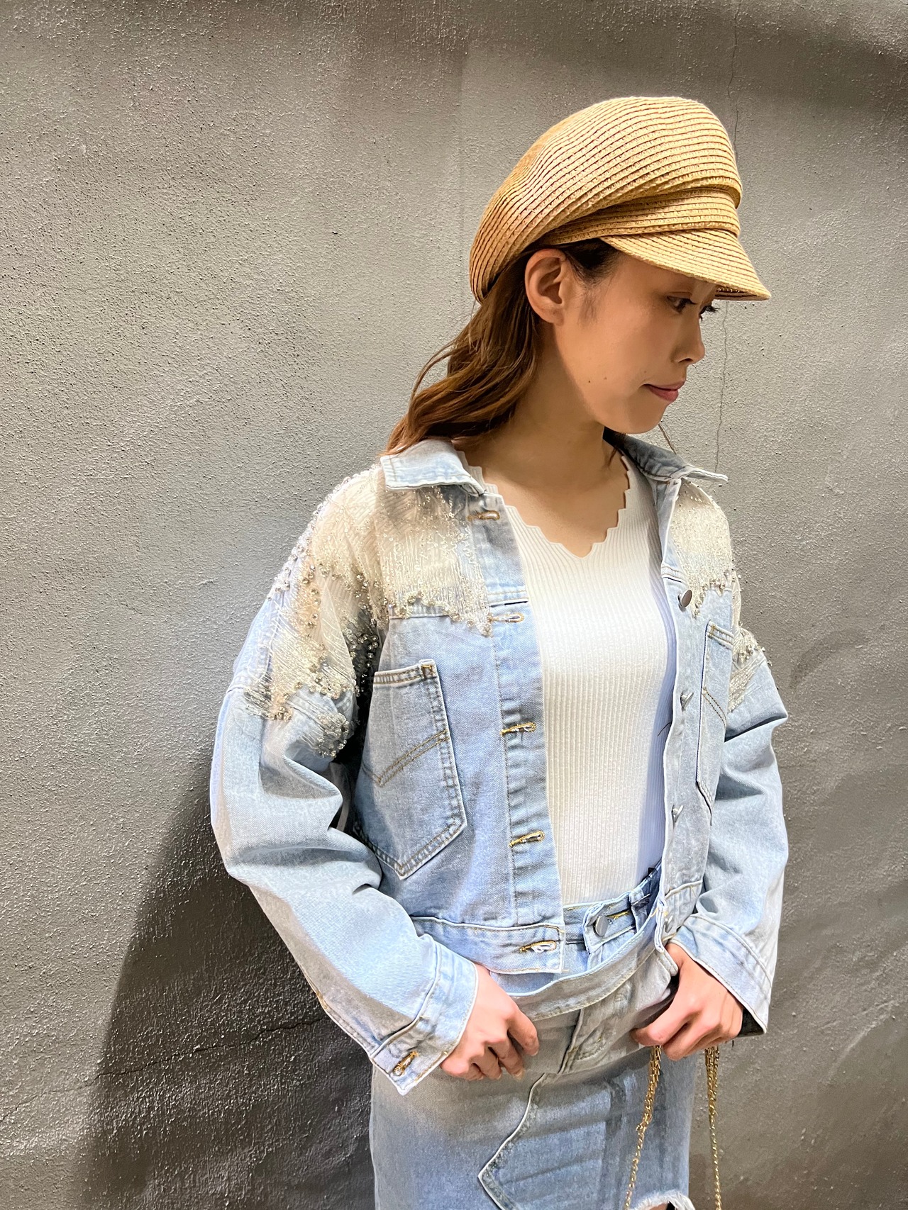 bijou lace change denim jacket デニム ジャケット デニムジャケット ビジュー レース