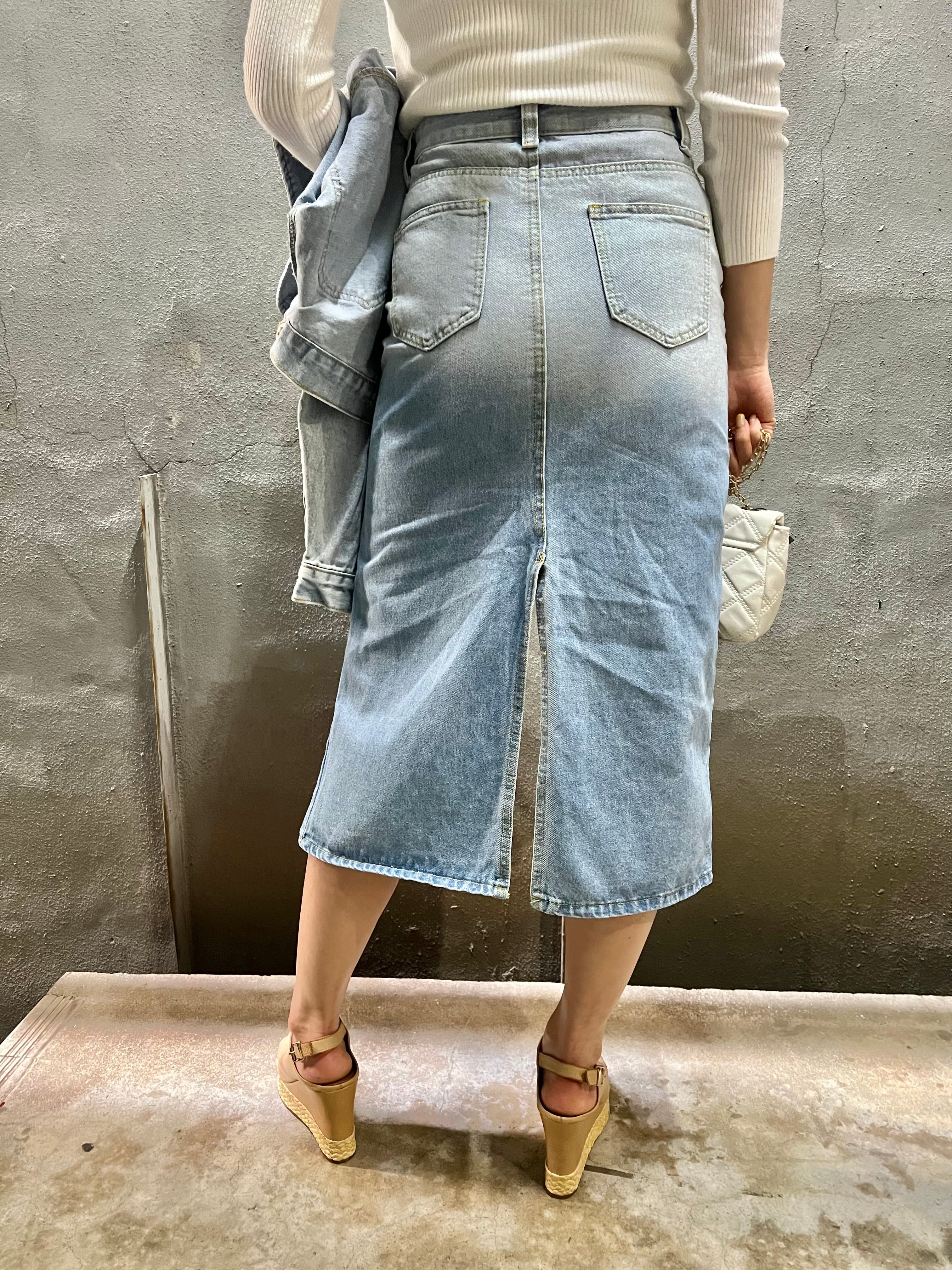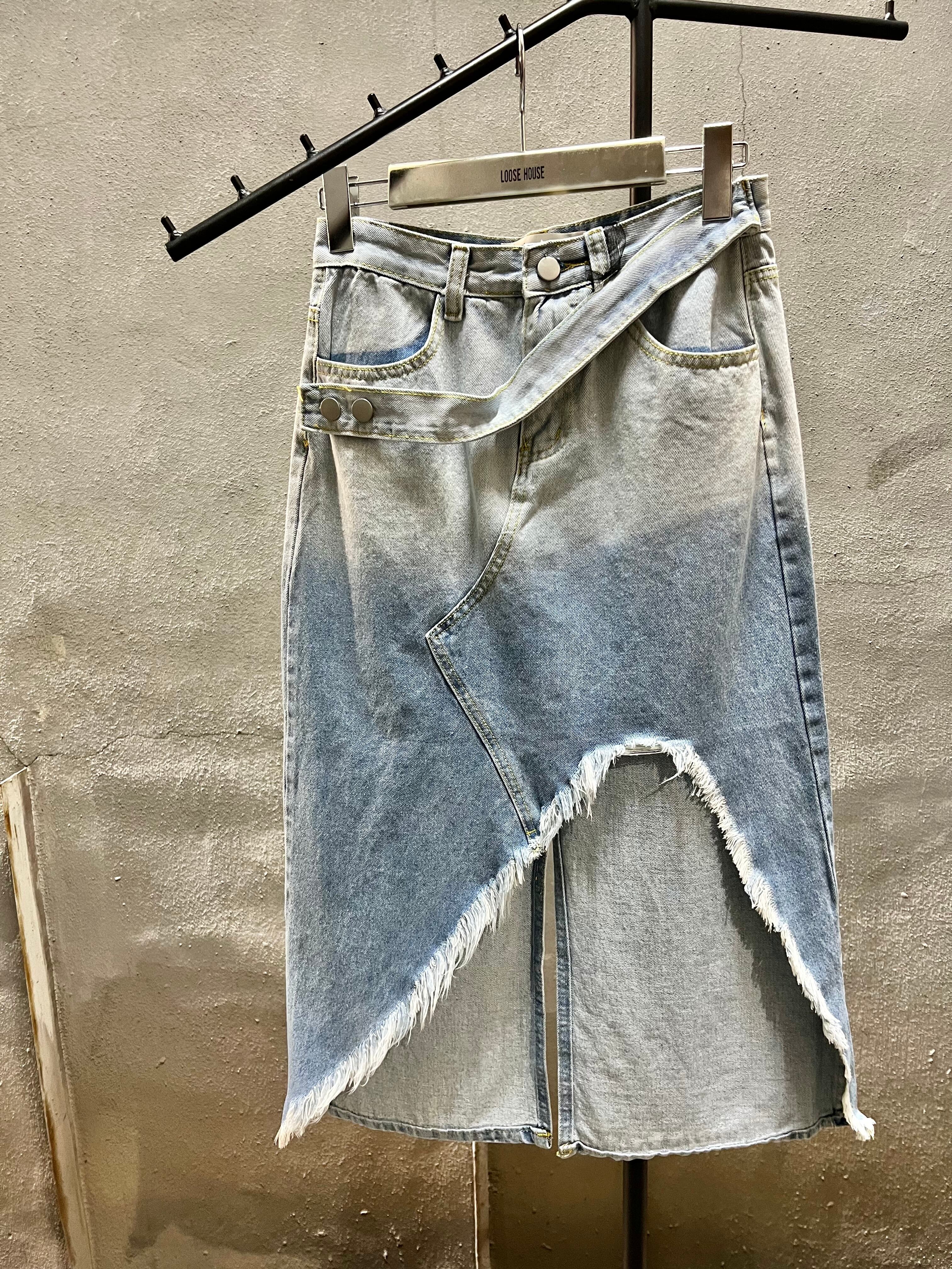 gradation breach damage denim design skirt スカート デニム デニムスカート グラデーション ブリーチ スリット
