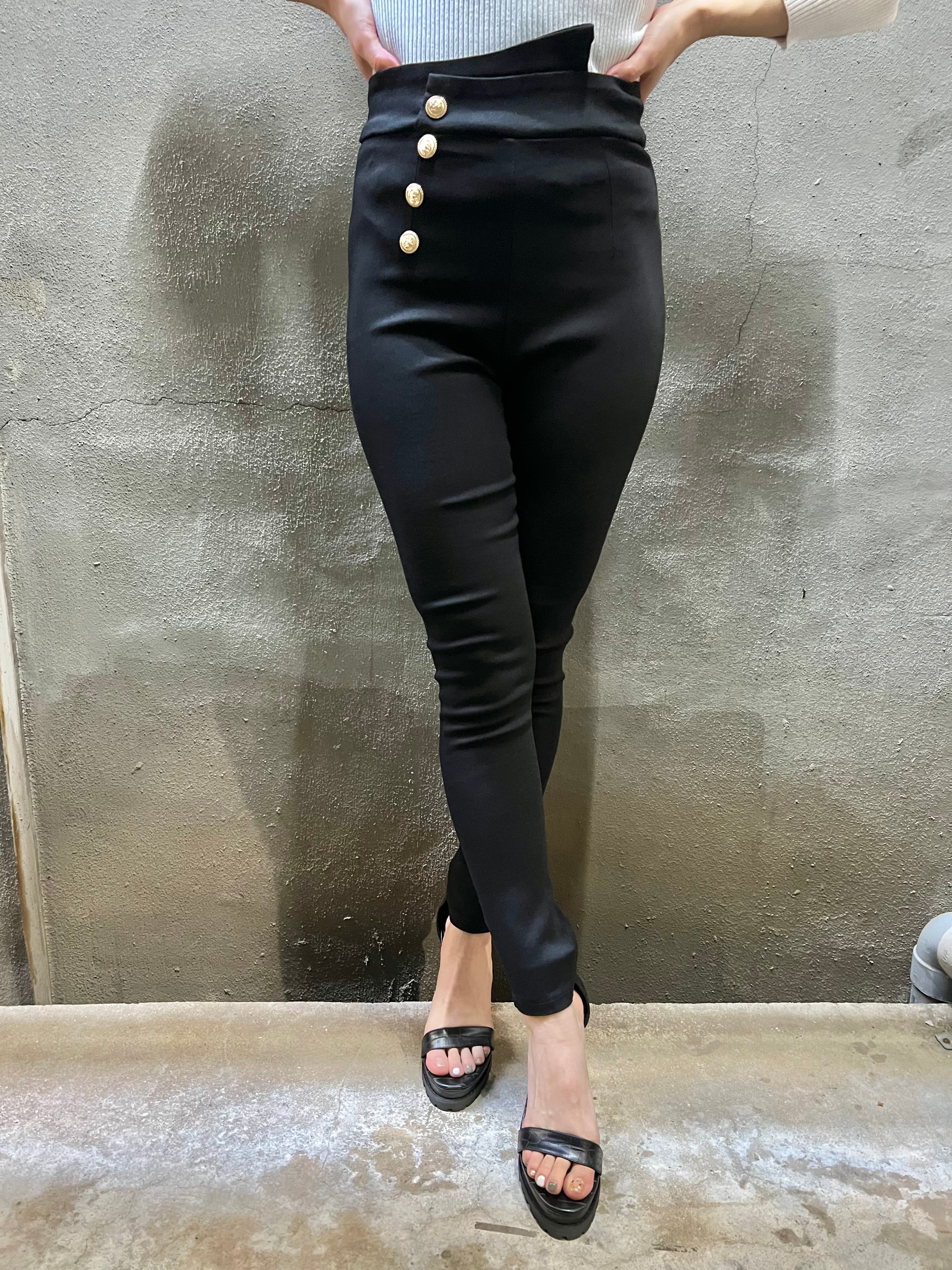 irregular high-waist gold button stretch skinny pants パンツ ハイウエスト スキニー レギパン ストレッチ 金ボタン 脚長 細見え