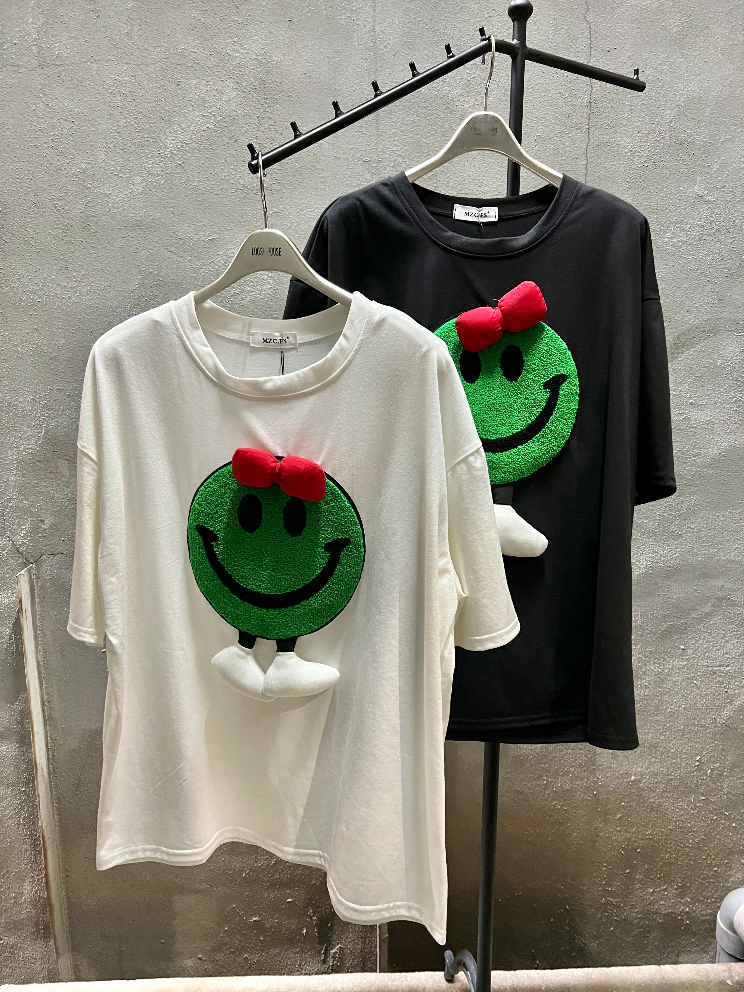 ribbon green smiley loose-fit T-shirt Tシャツ スマイリー にこちゃん リボン カジュアル