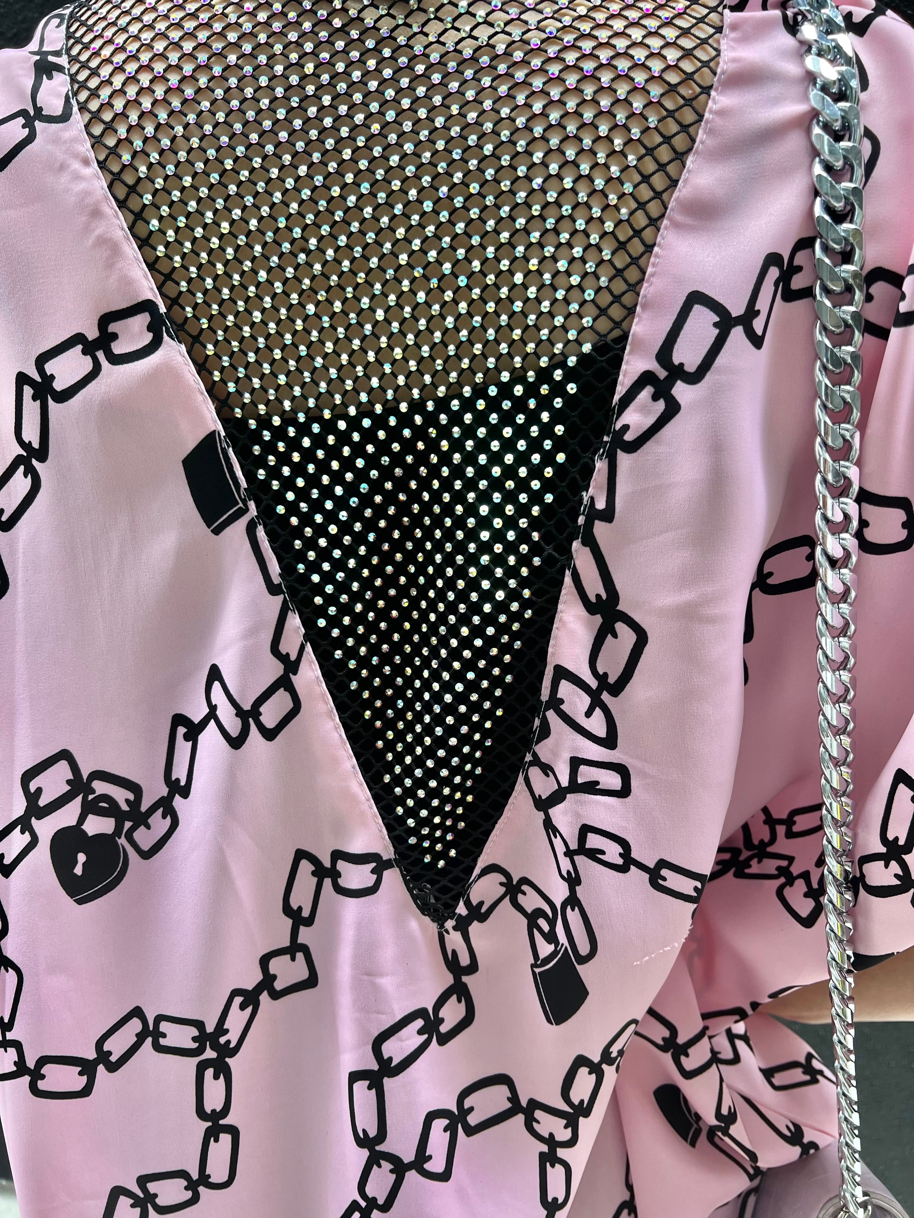 chain print × bear brick print design T-one-piece Tワンピ チュニック パロディ メッシュ チェーン柄 キラキラ