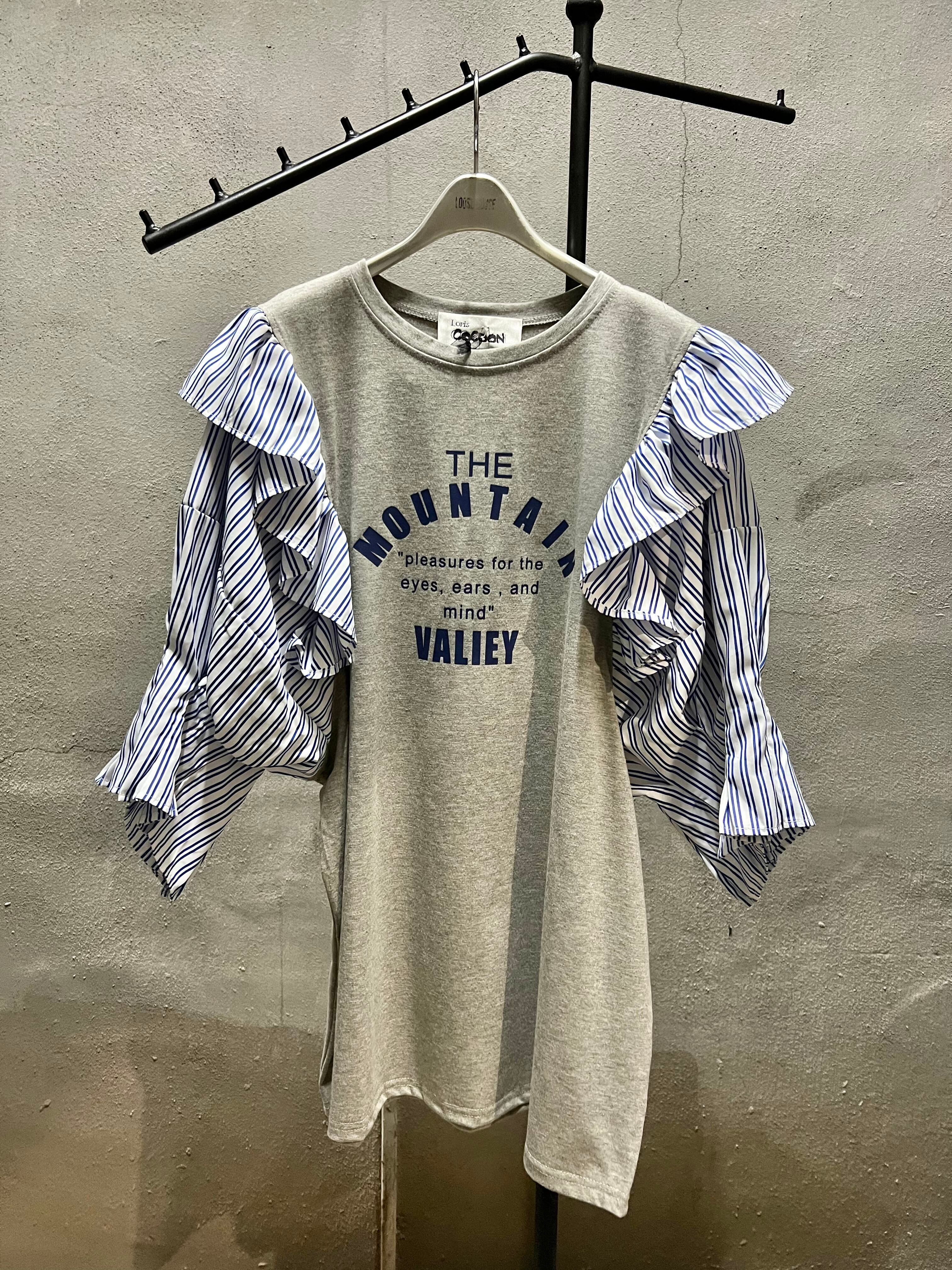 stripe sleeve change T-tunic チュニック Tシャツ デザインTシャツ ストライプ ロゴT