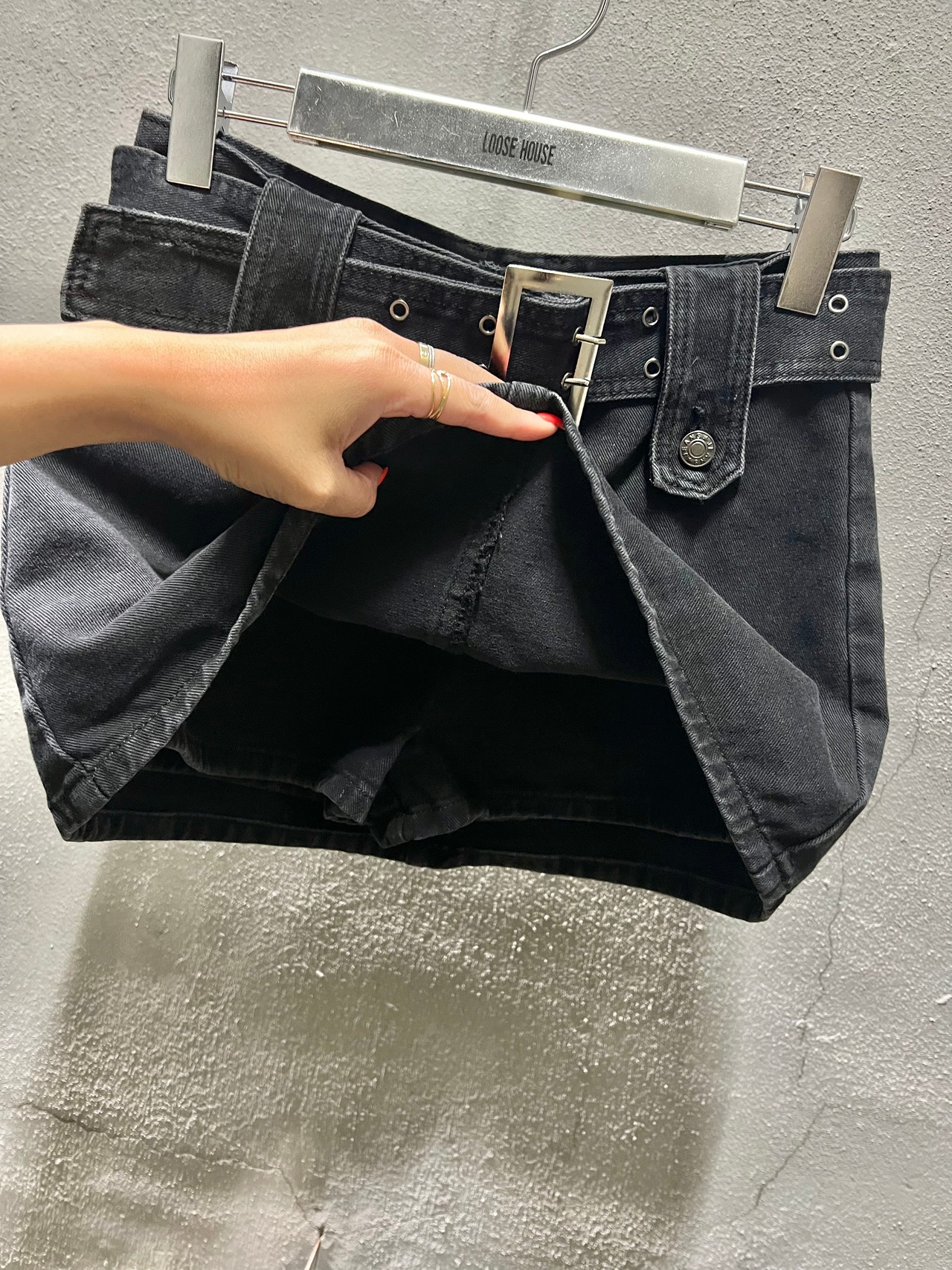 black denim micro mini skirt スカート マイクロミニ ベルト付き インナー付き Y2K