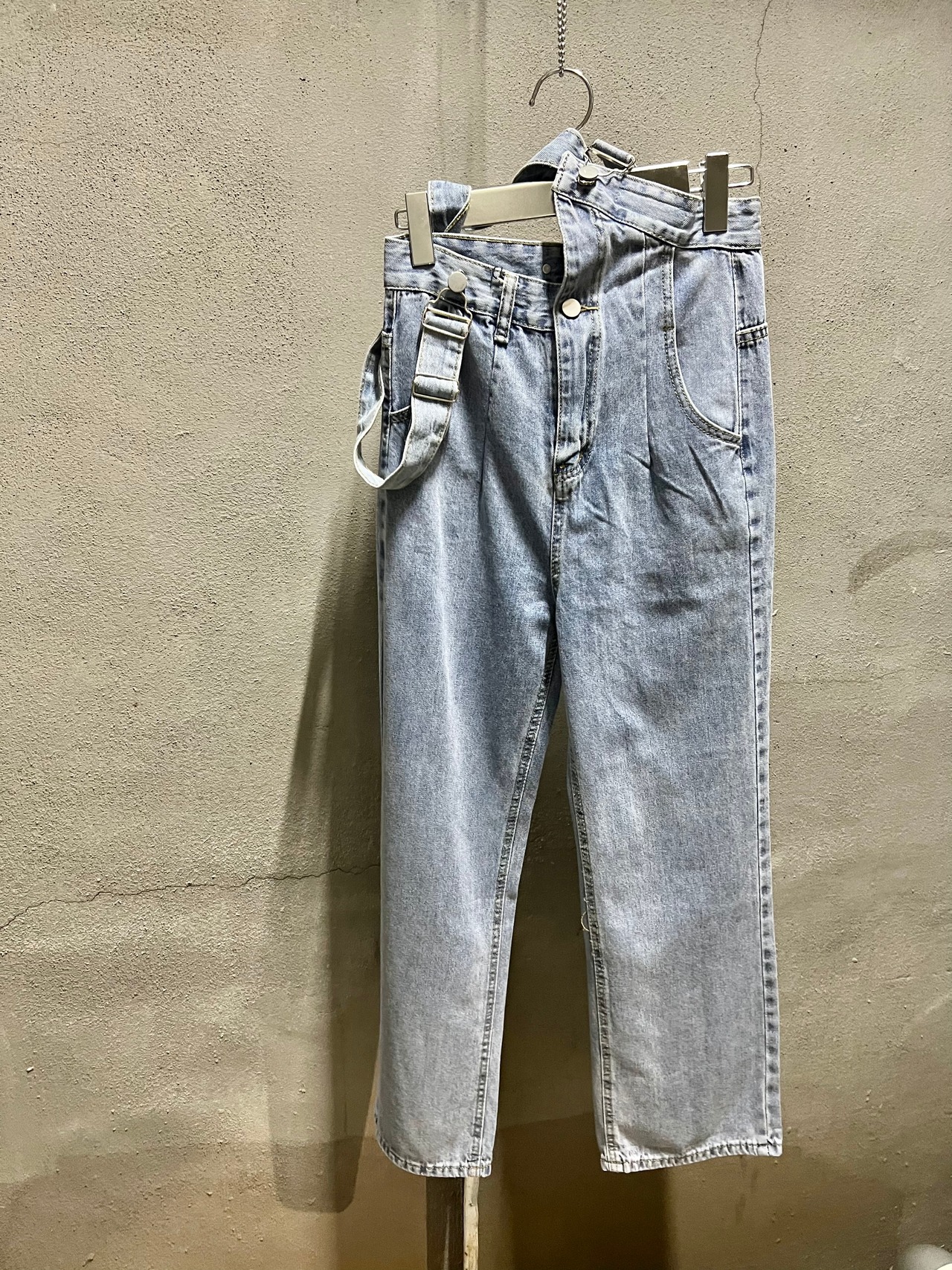one strap salopette denim pants デニム パンツ アシンメトリー ストラップ サスペンダー サロペット