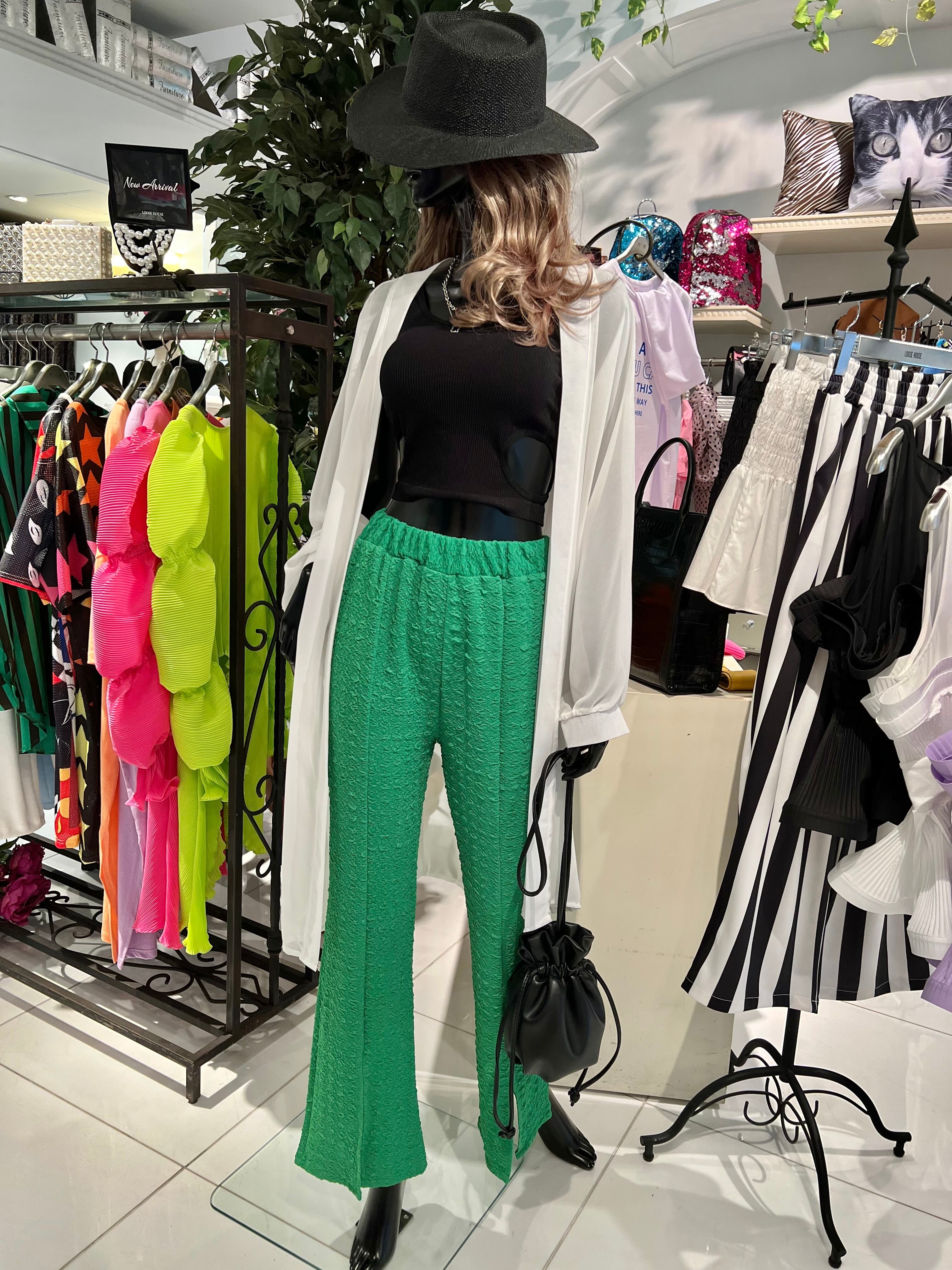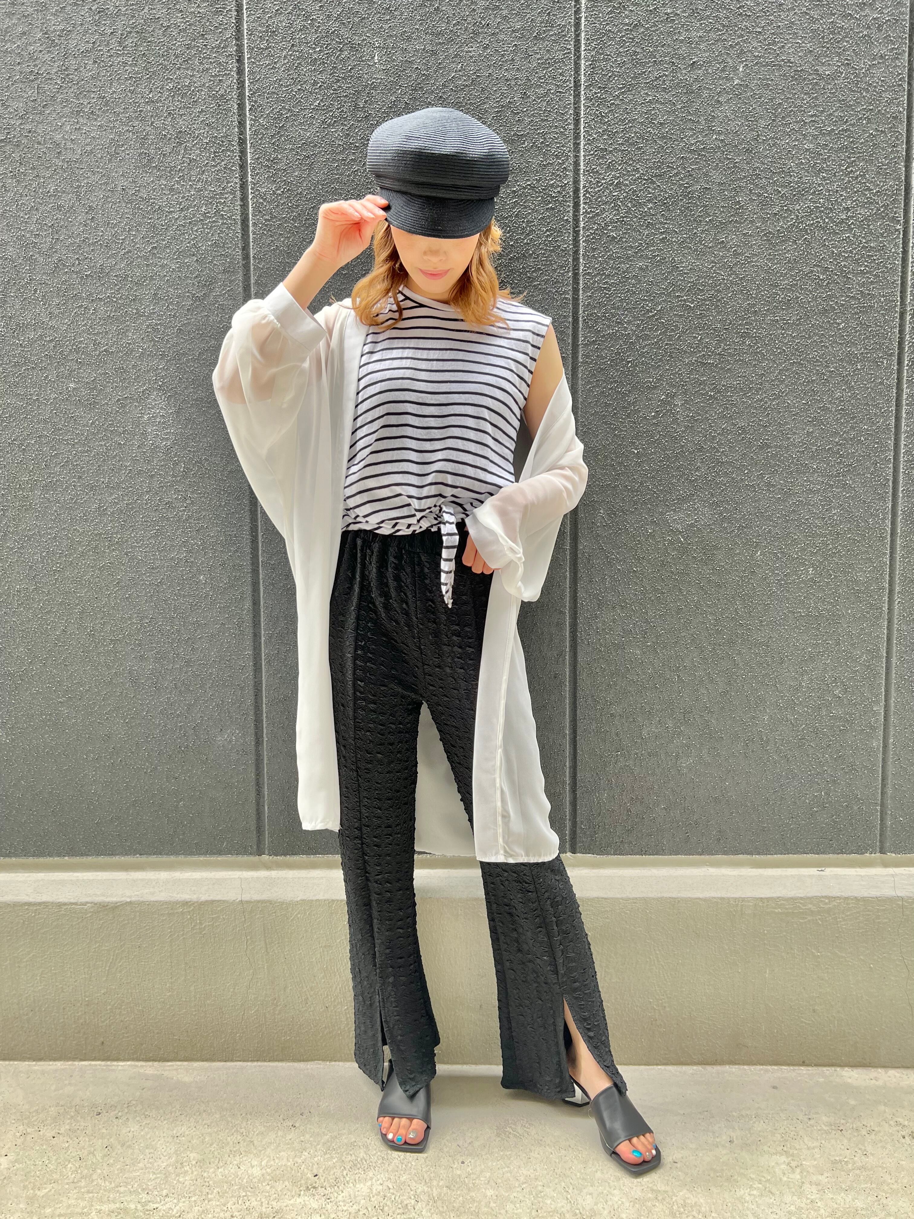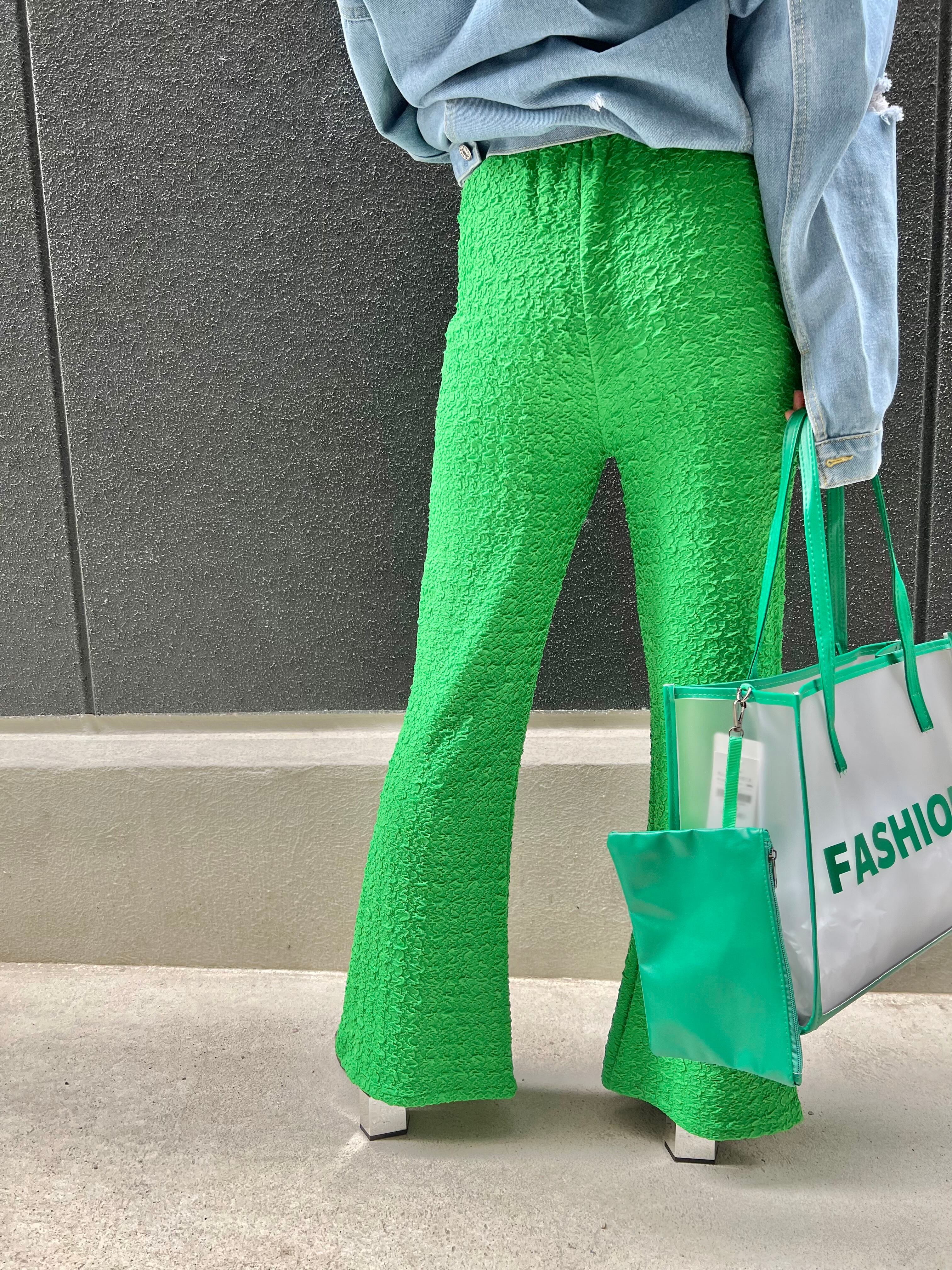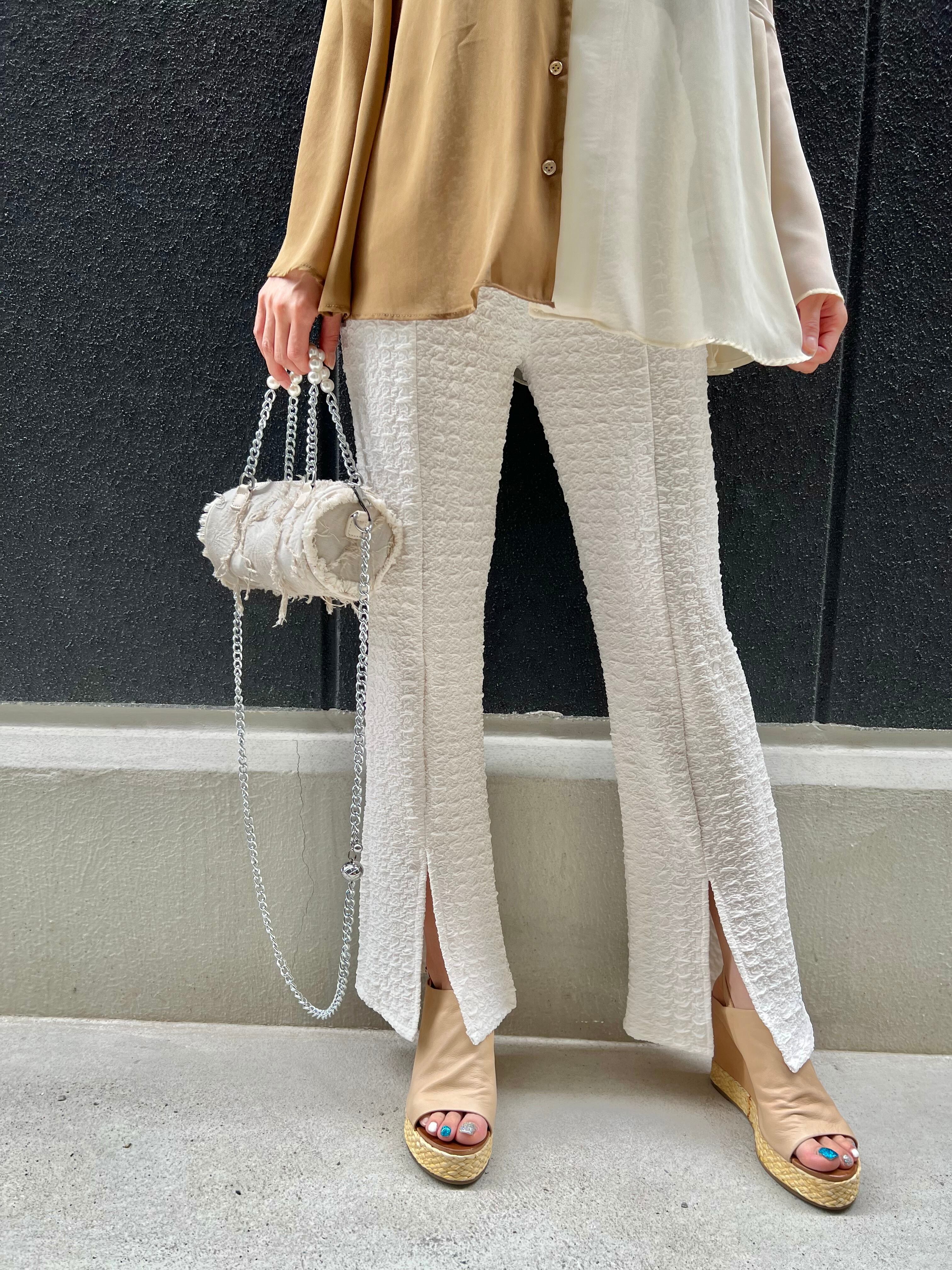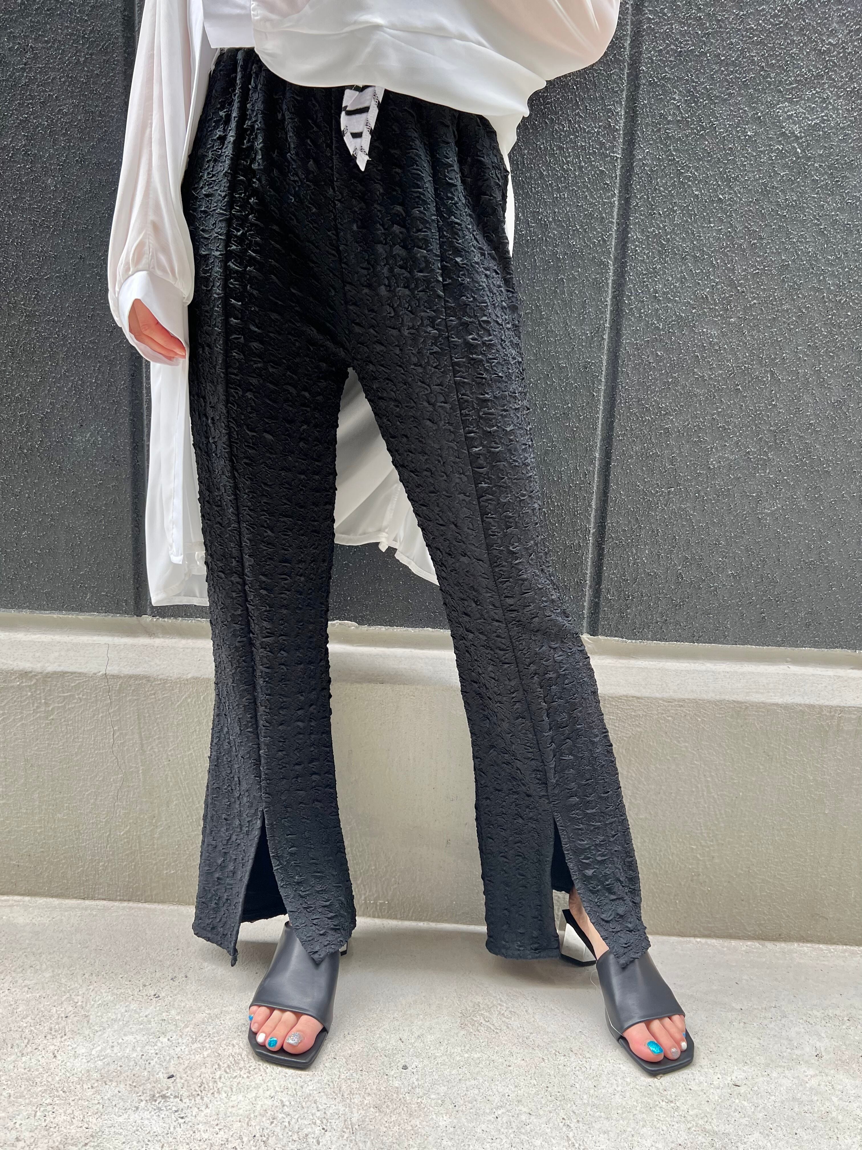 【人気商品:再入荷】emboss center slit long pants パンツ エンボス スリット ゴムウエスト 楽ちん