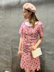 heart pattern russel lace one-piece ワンピース ワンピ タイト ハート 襟 赤 ラブリー キュート