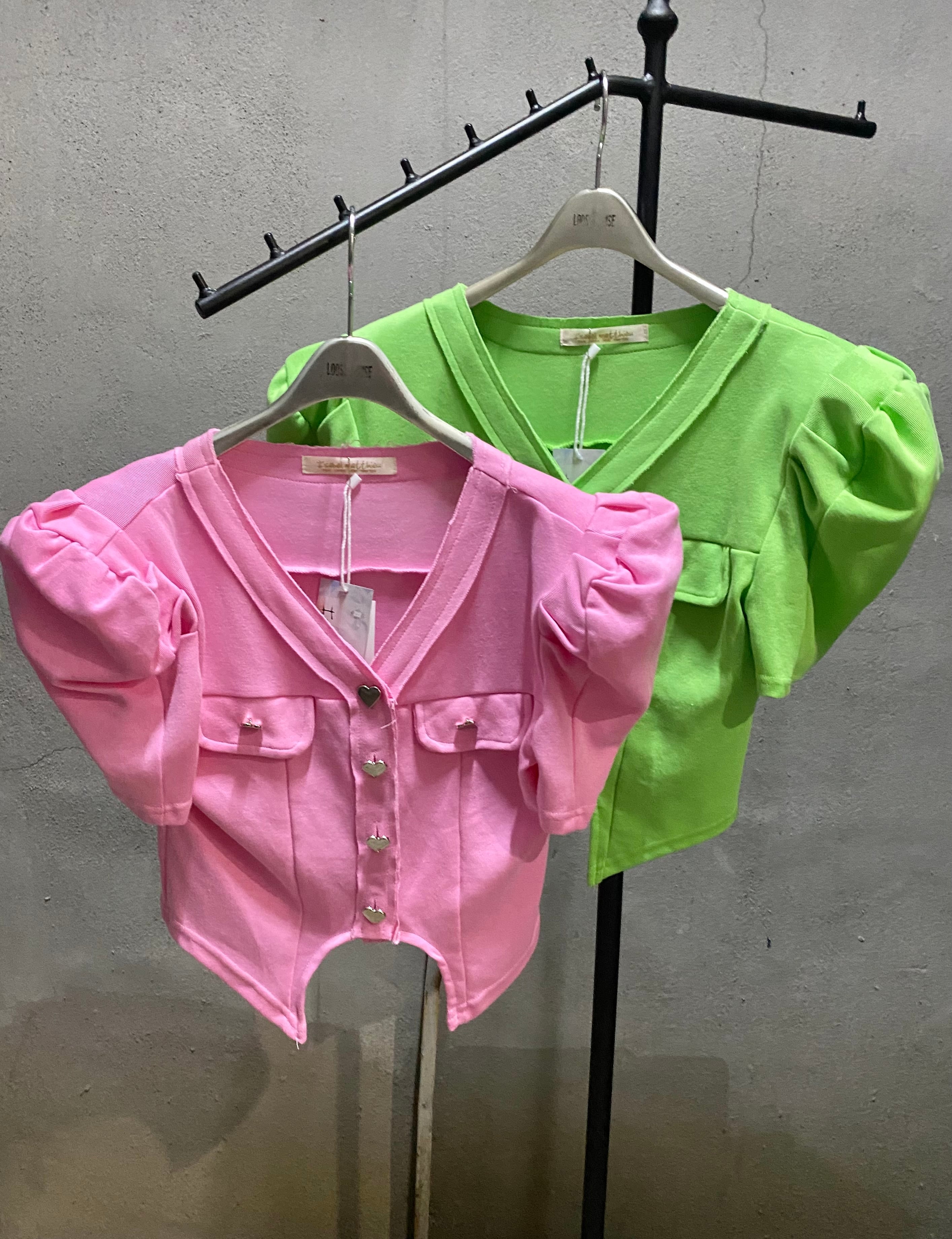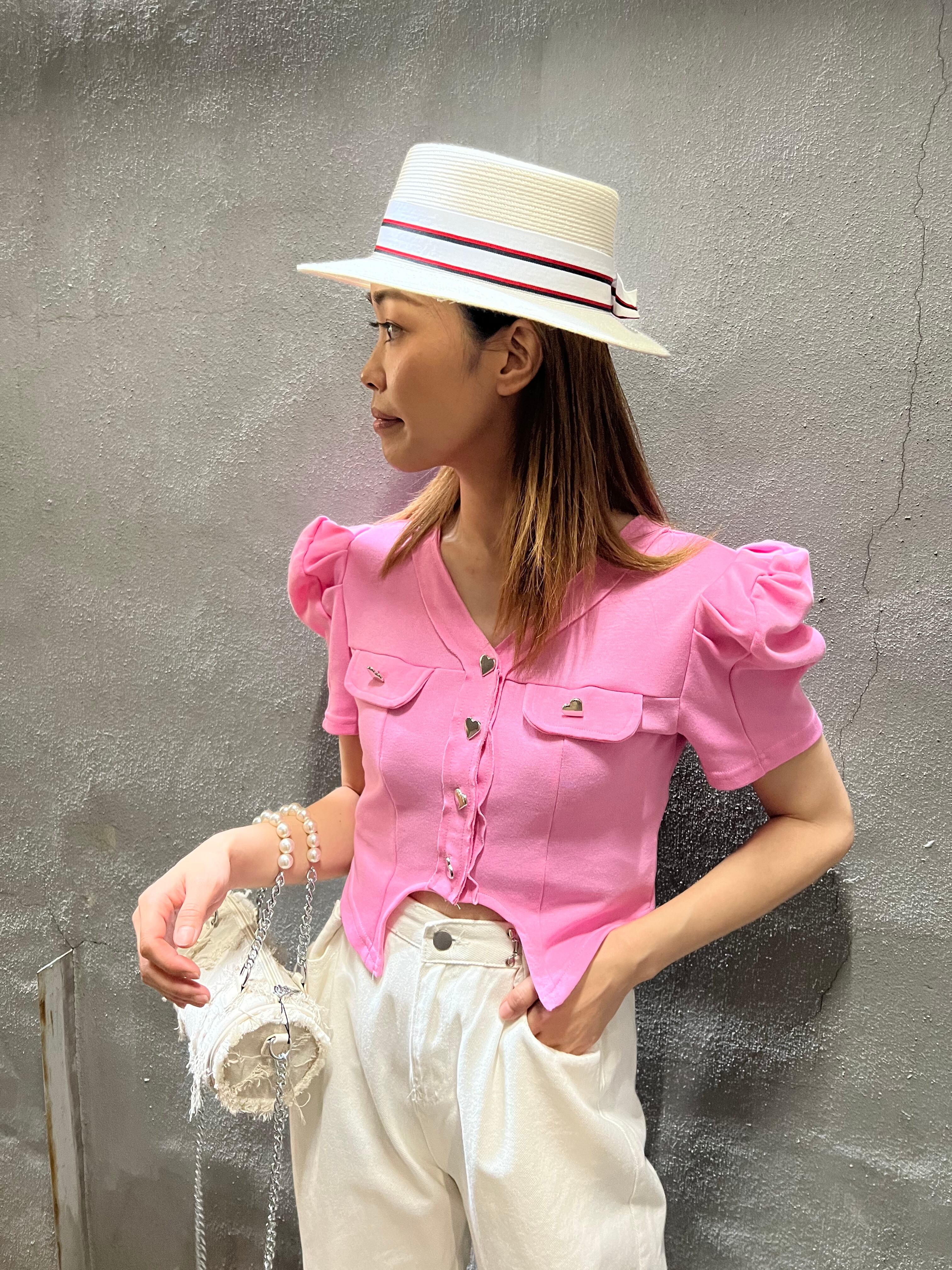 jacket design v neck cut tops トップス カーディガン パフスリーブ デザインスリーブ ハート ボタン デザイントップス Vネック
