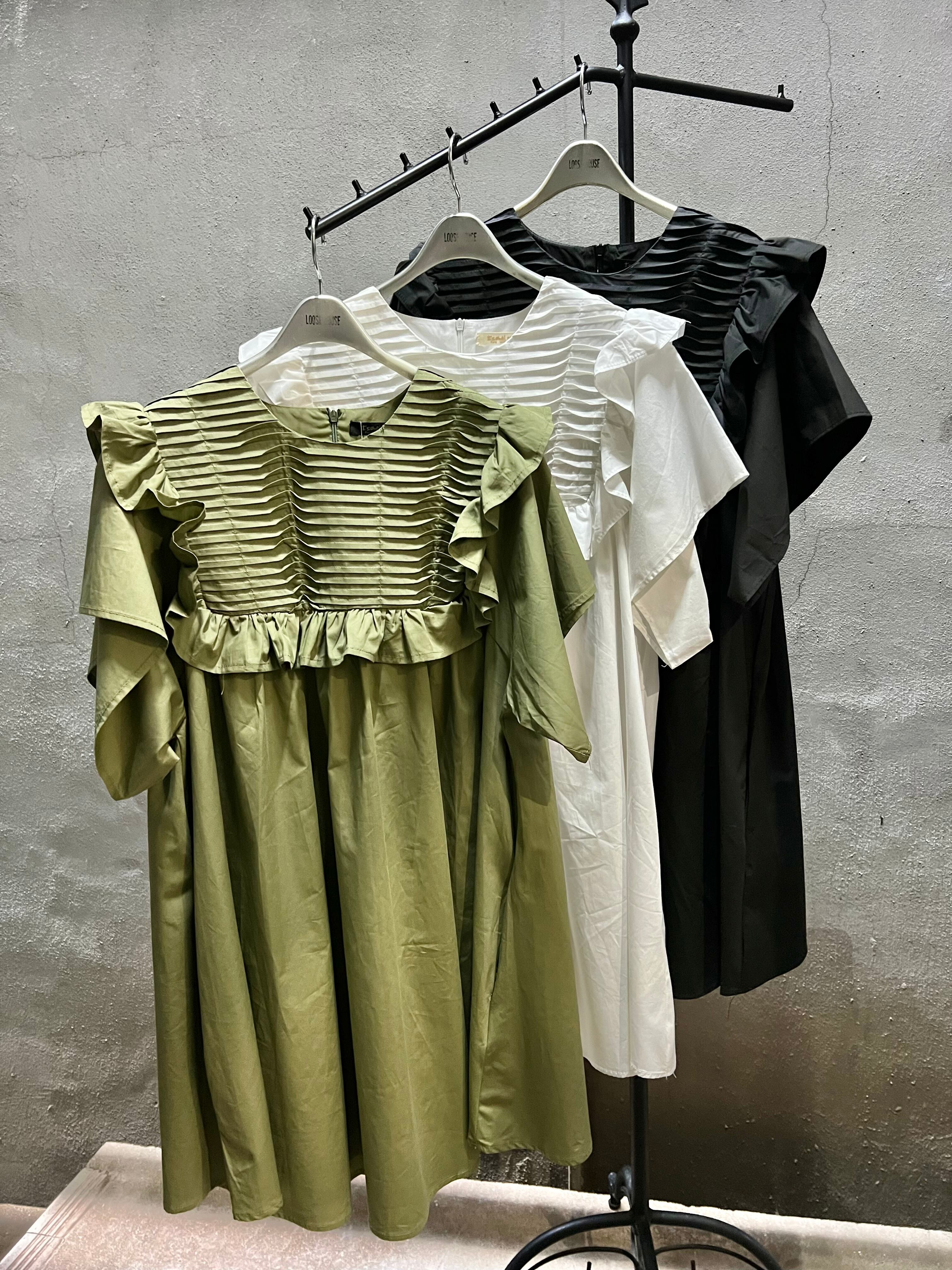 pleats frill loose-fit mini one-piece ワンピース ワンピ プリーツ フリル ミニワンピ