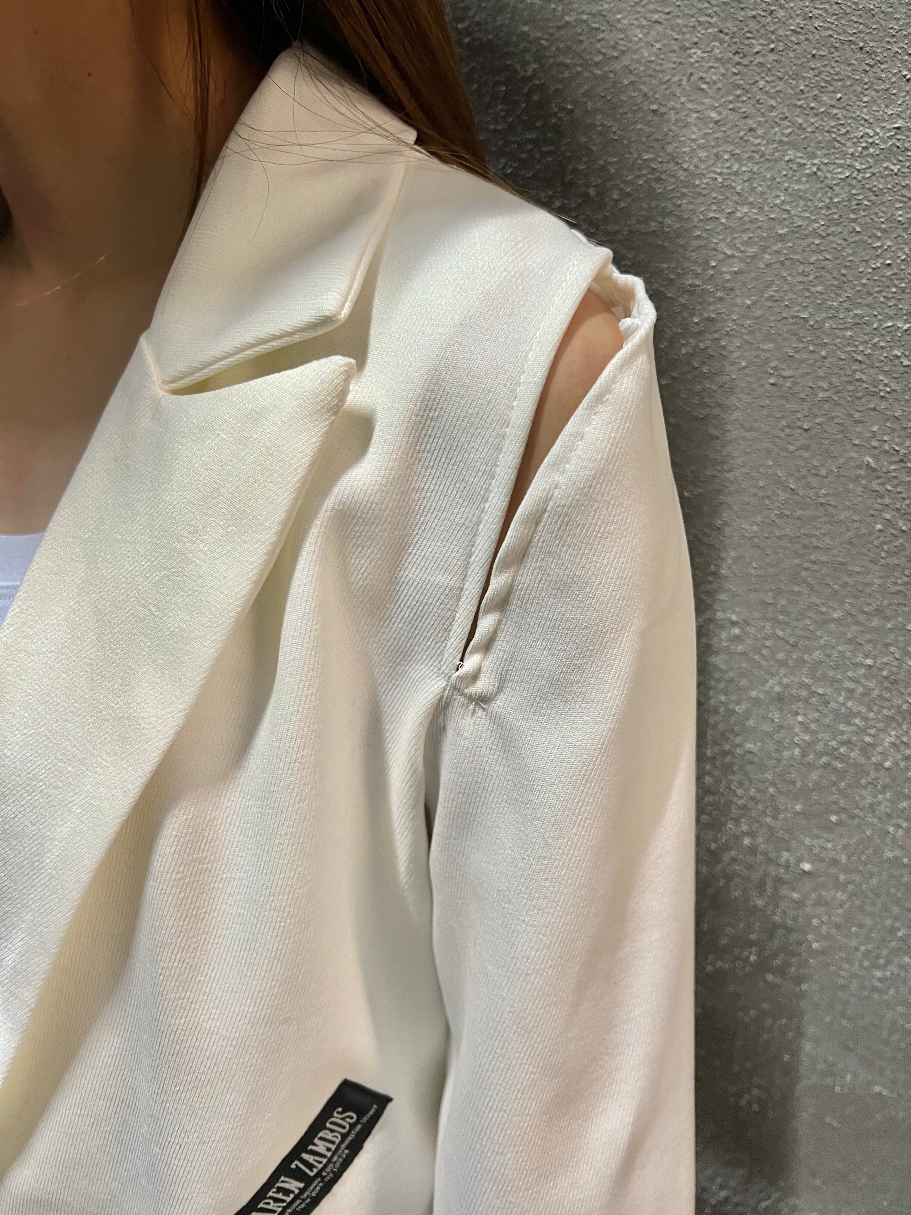 open shoulder backbuttom tailored jacket ジャケット テーラード ホワイト ボタン デザインジャケット タグ