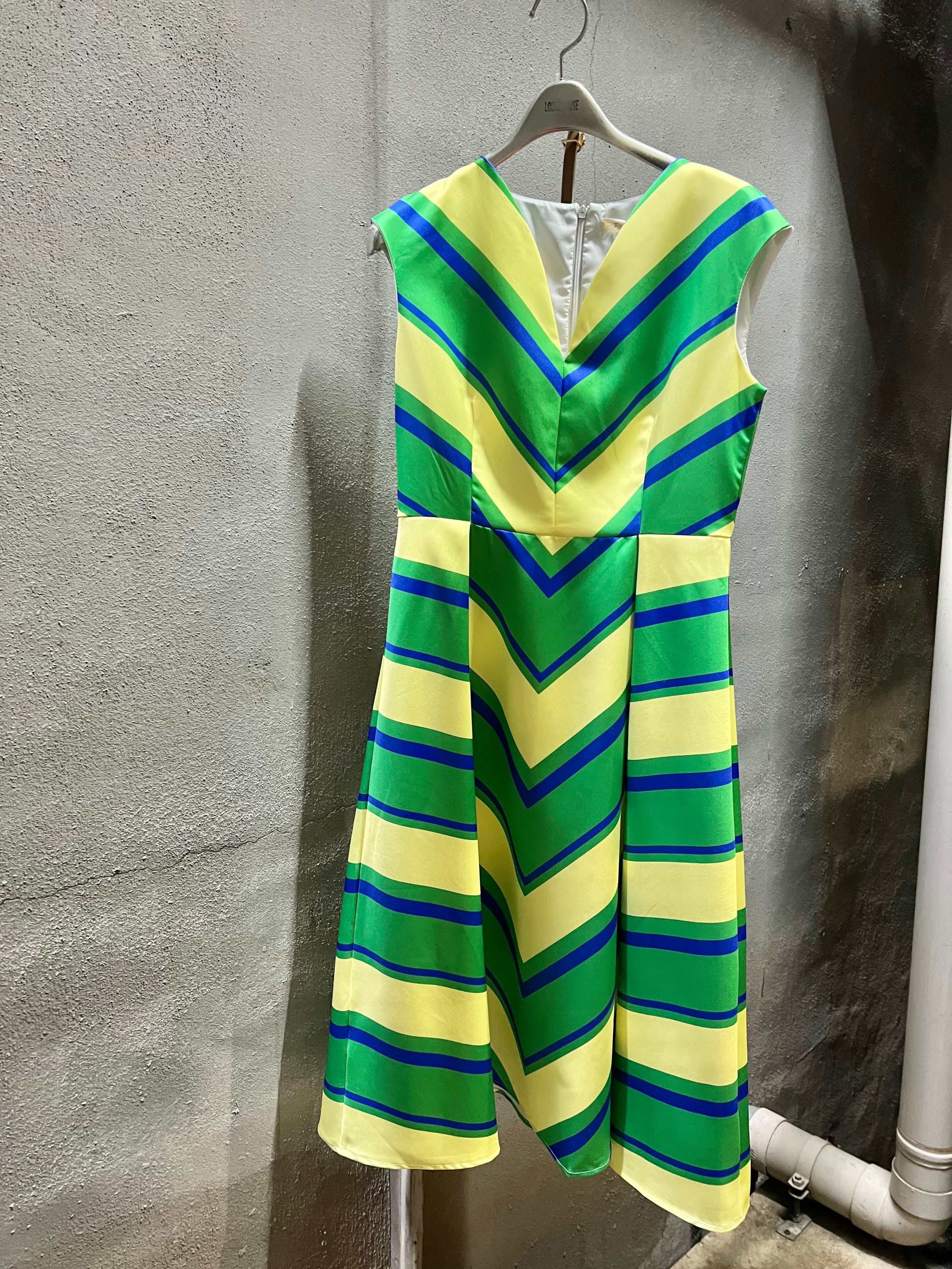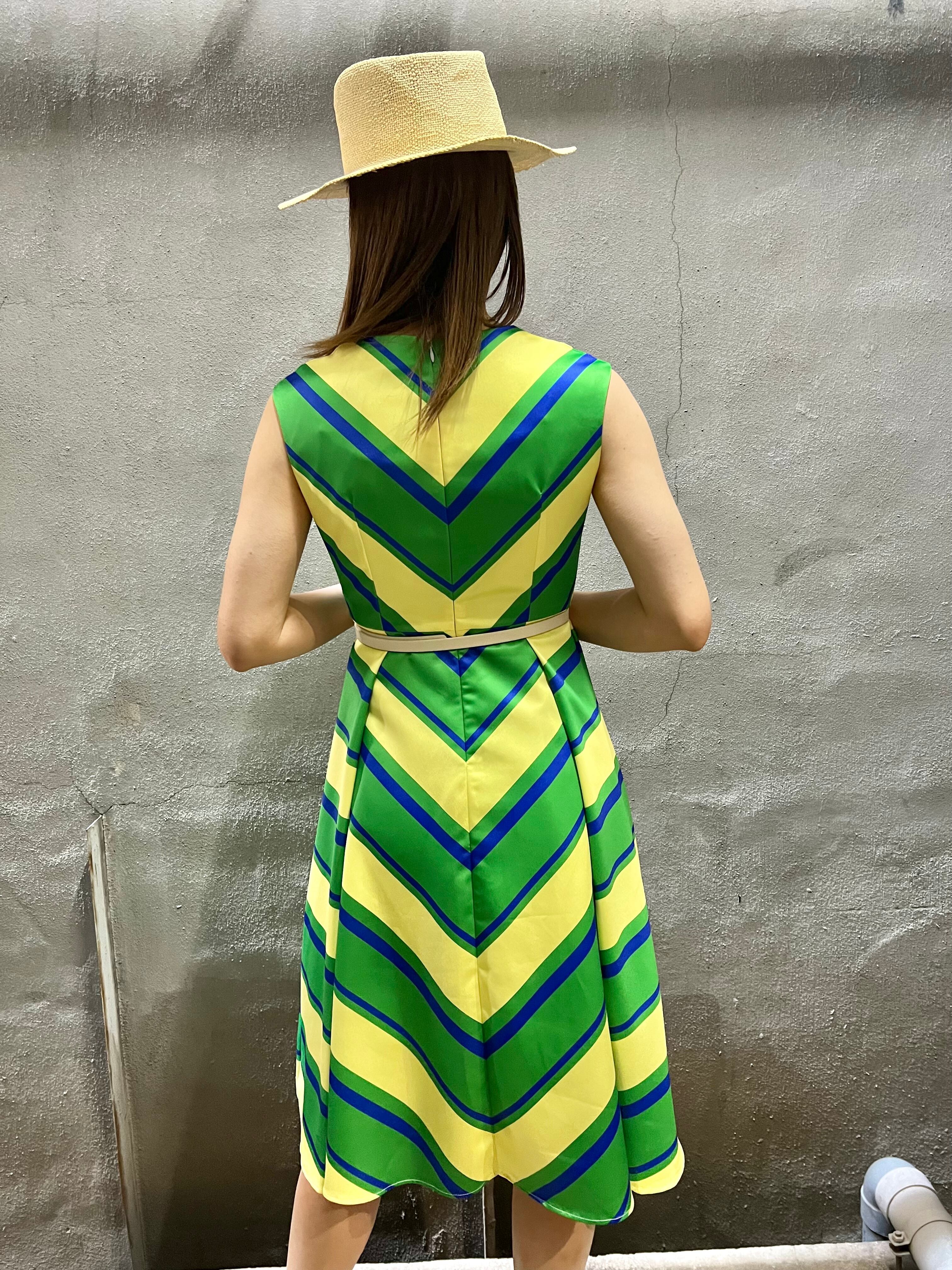 bias change border fit & flare one-piece ワンピース ワンピ ボーダー カラフル ノースリーブ イエロー グリーン フィットアンドフレア