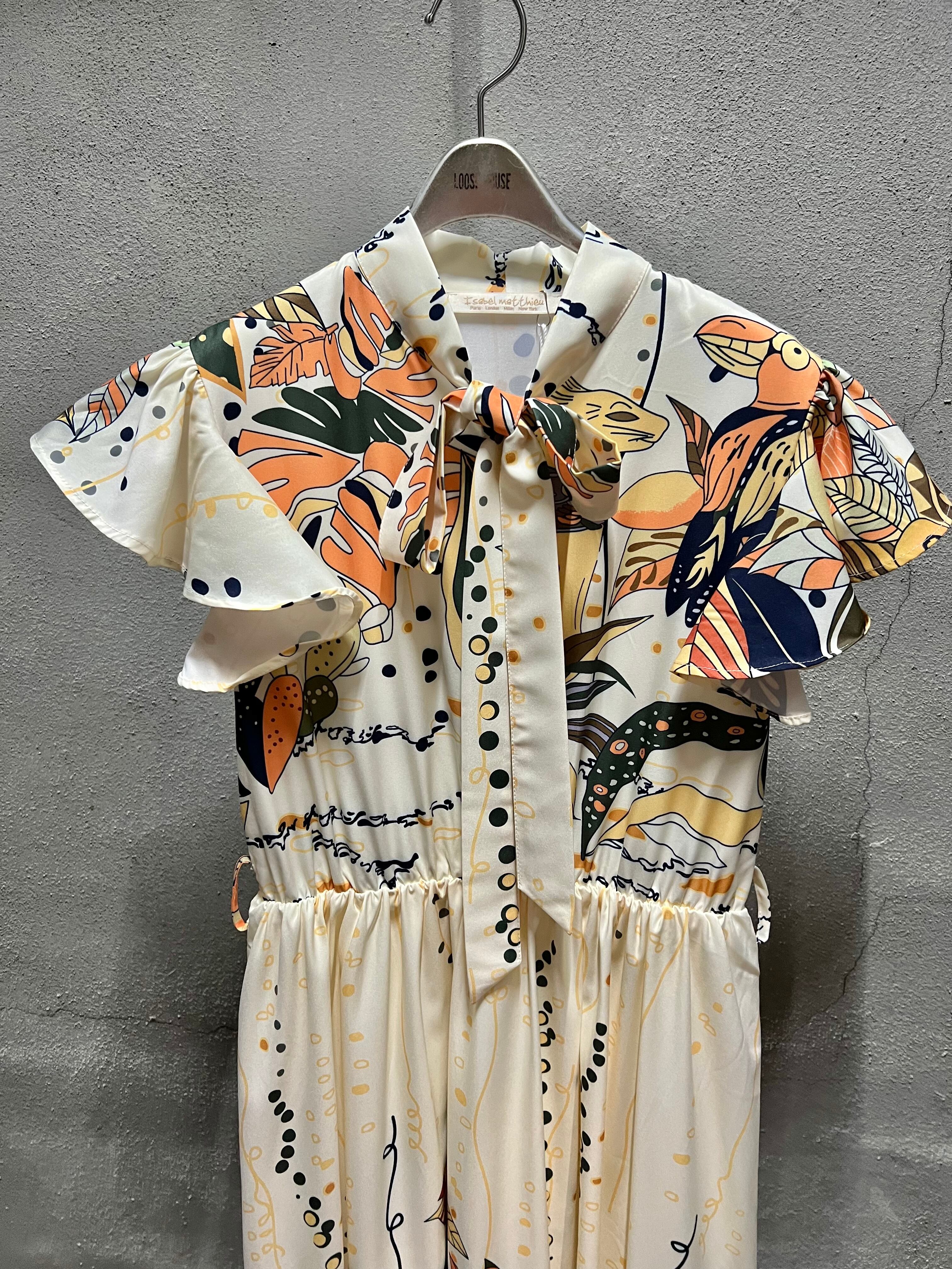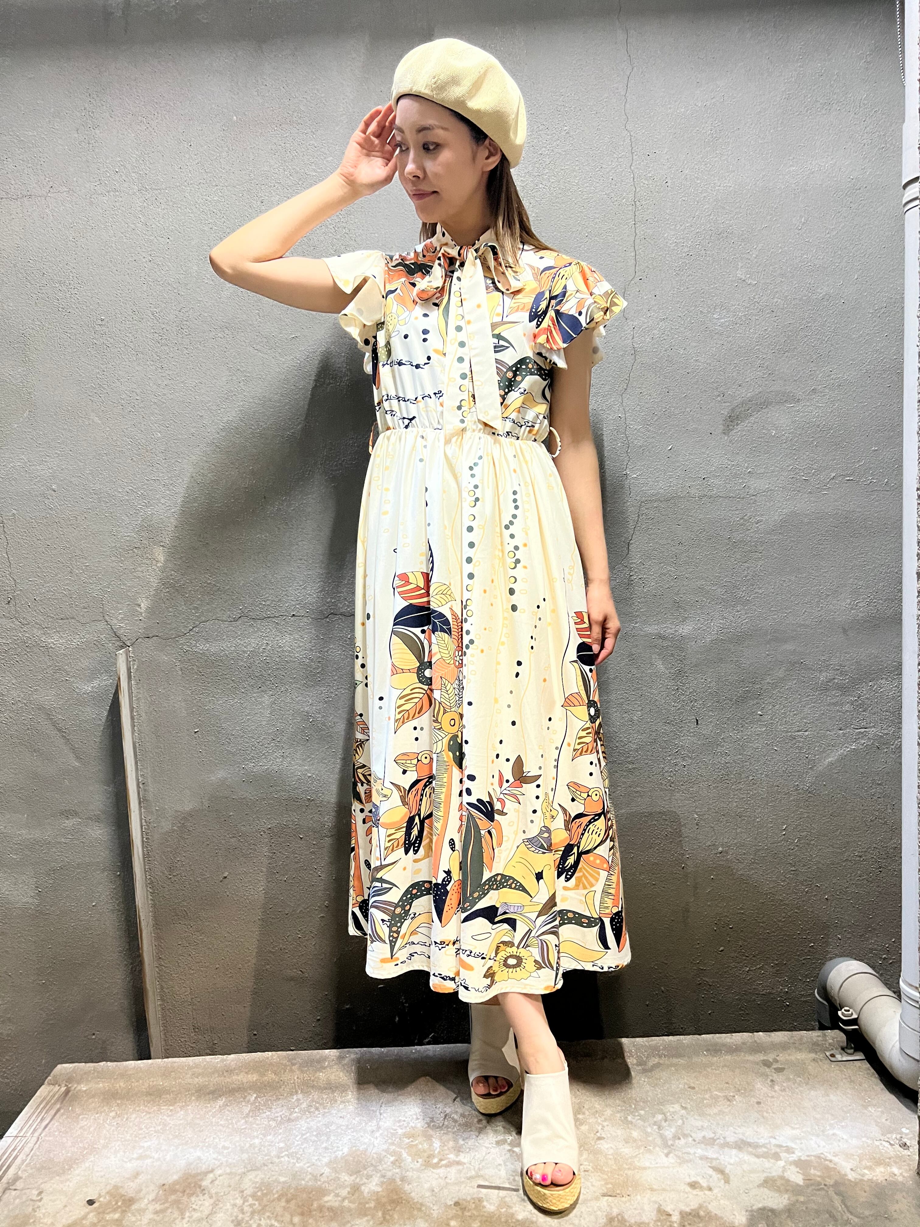 vintage taste jungle print one-piece ワンピース ワンピ ヴィンテージ風 柄ワンピ フリル