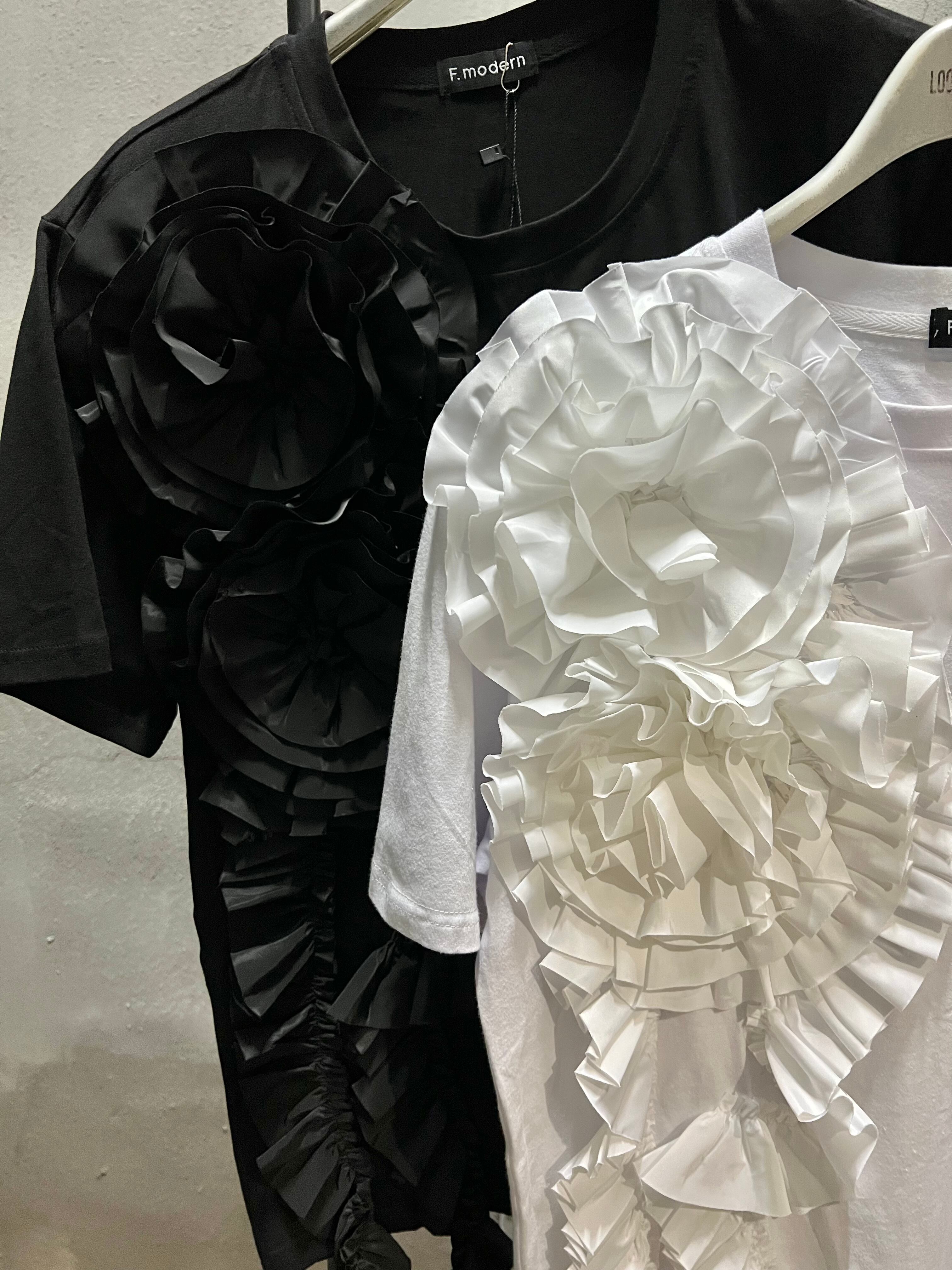 3D flower frill T-tops Tシャツ トップス フラワー フリル