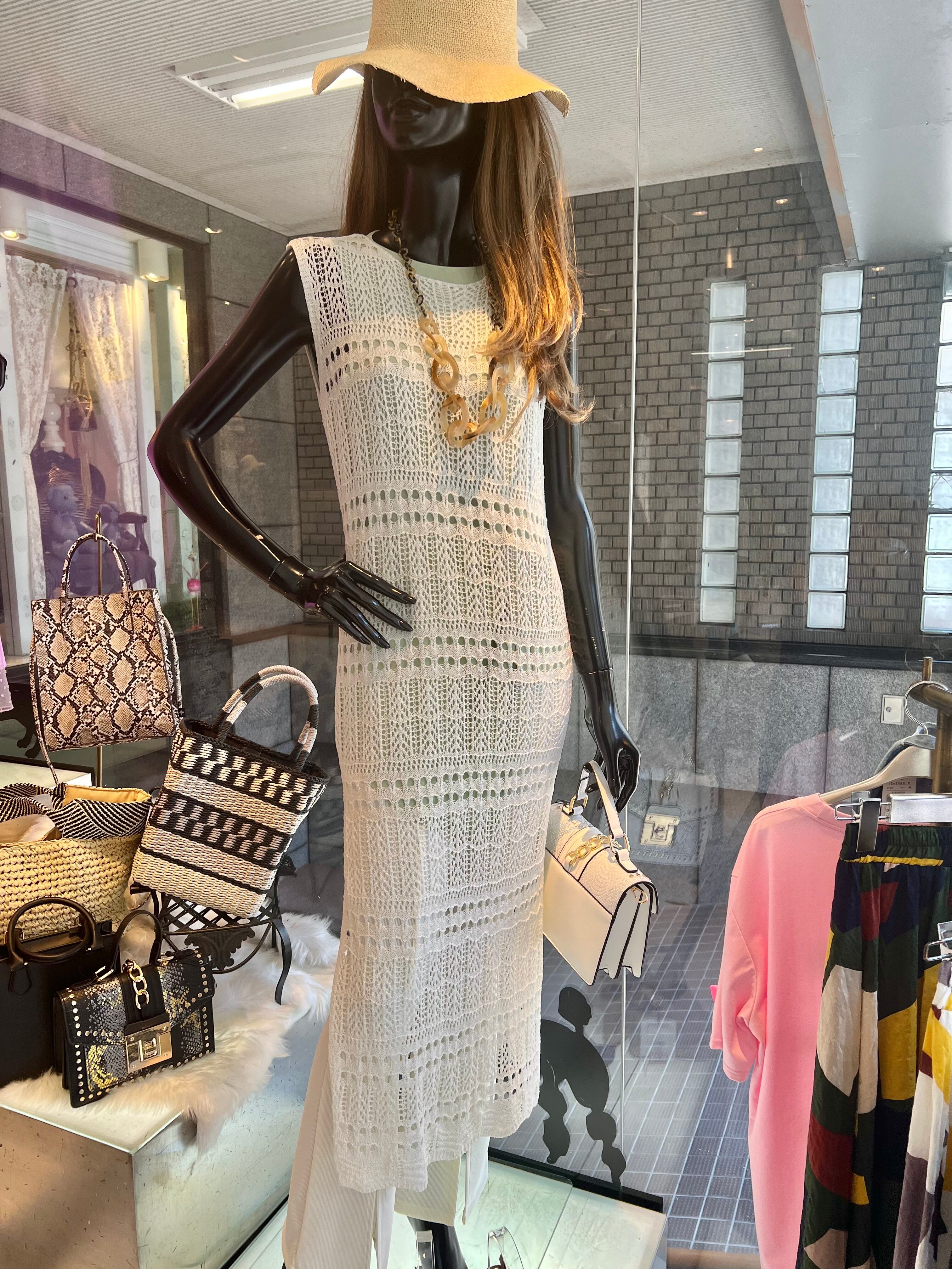 see-through knit one-piece ワンピース ニットワンピ ワンピ 透かし編み キャミワンピ 2点セット