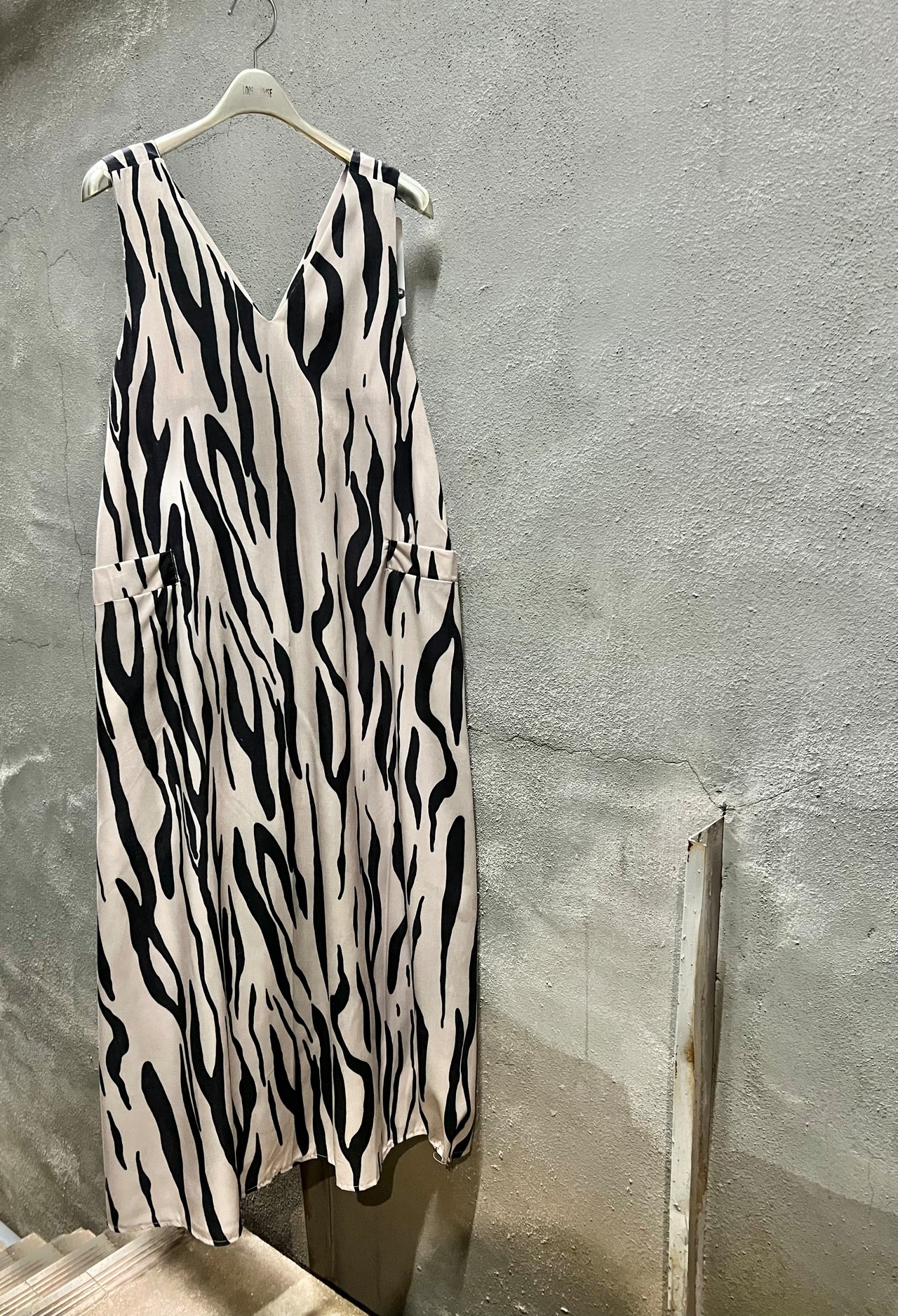 zebra print Vneck sleeveless one-piece ワンピース ワンピ ロングワンピ 柄ワンピ ゼブラ柄 ポケット