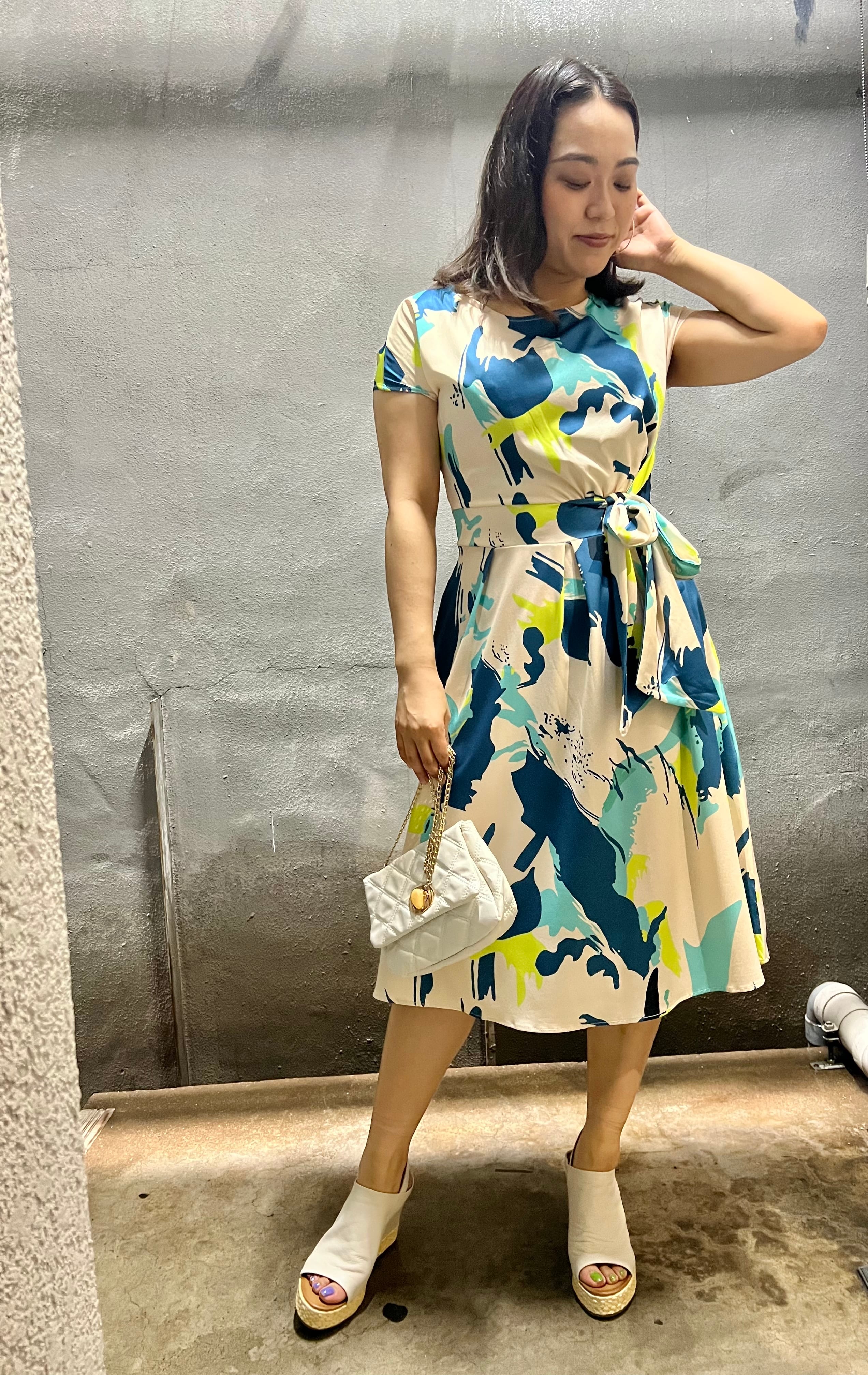 colorful print cache-coeur touch flare one-piece ワンピース ワンピ カシュ風 ブルー