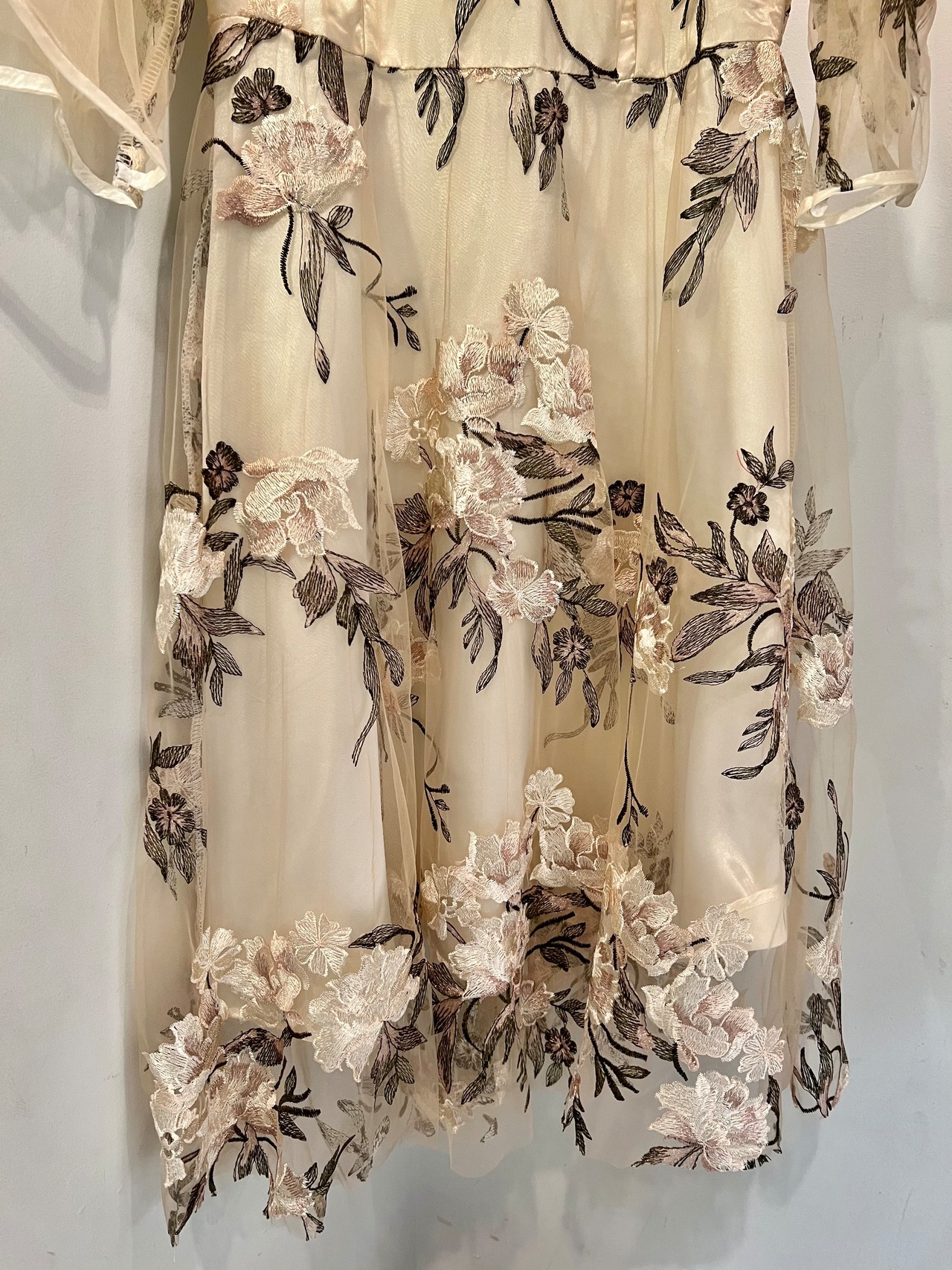 embroidery tulle ribbon waist one-piece ワンピース ワンピ エンブロイダリー チュール 花柄 刺繍