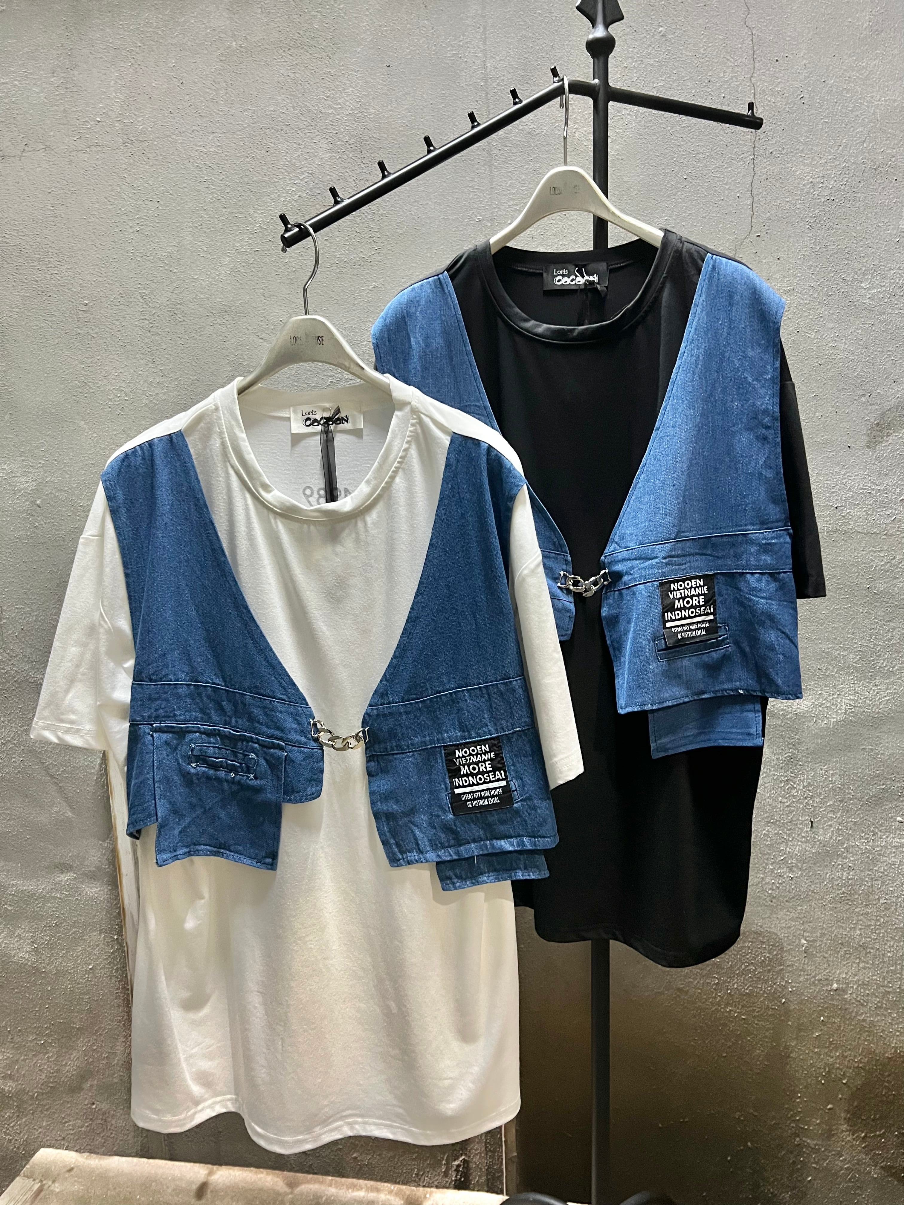 denim vest vouch docking T-tunic トップス チュニック Tシャツ デザイントップス デニム レイヤード 重ね着風