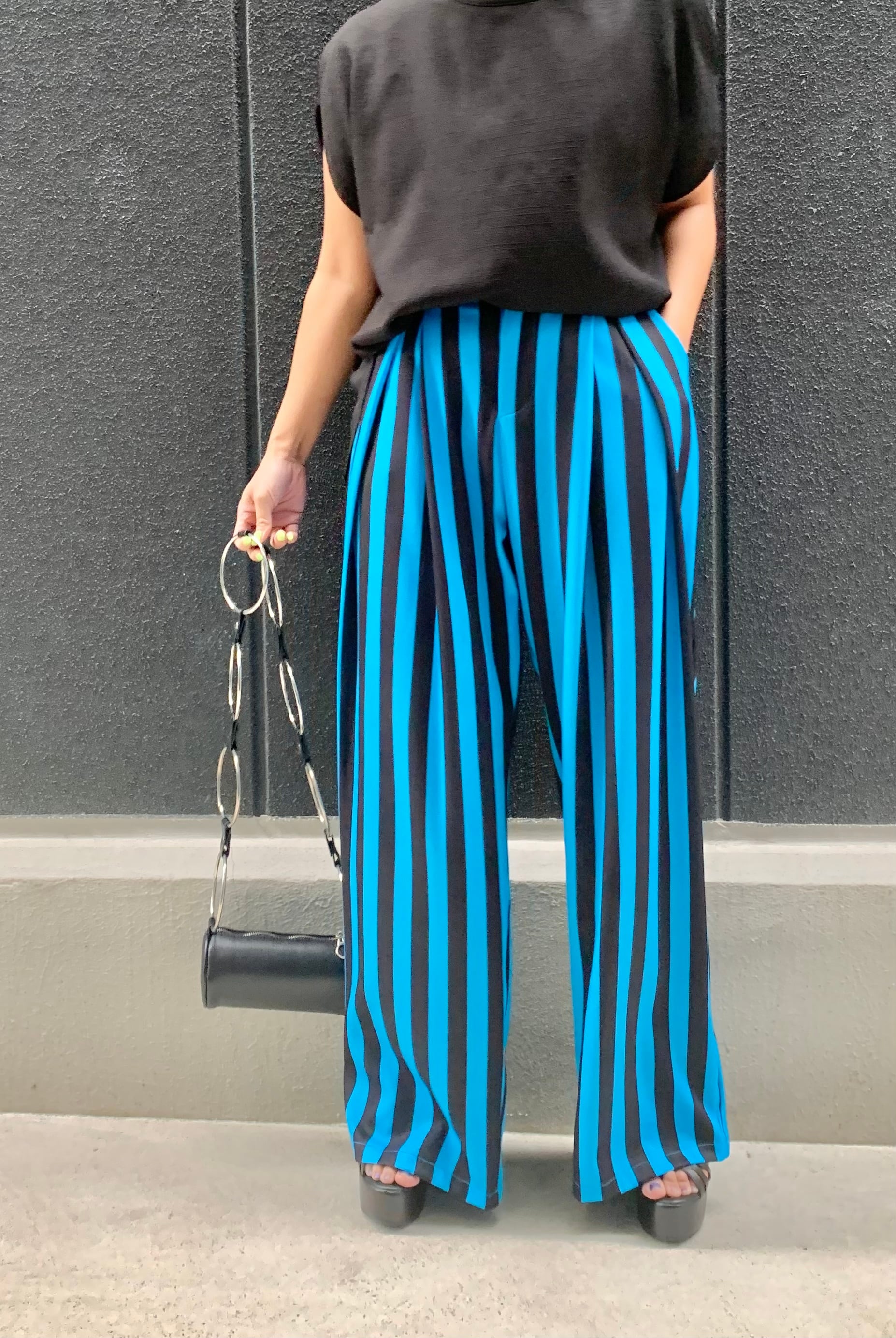stripe button waist long pants パンツ ストライプ 縦縞 ワイドパンツ