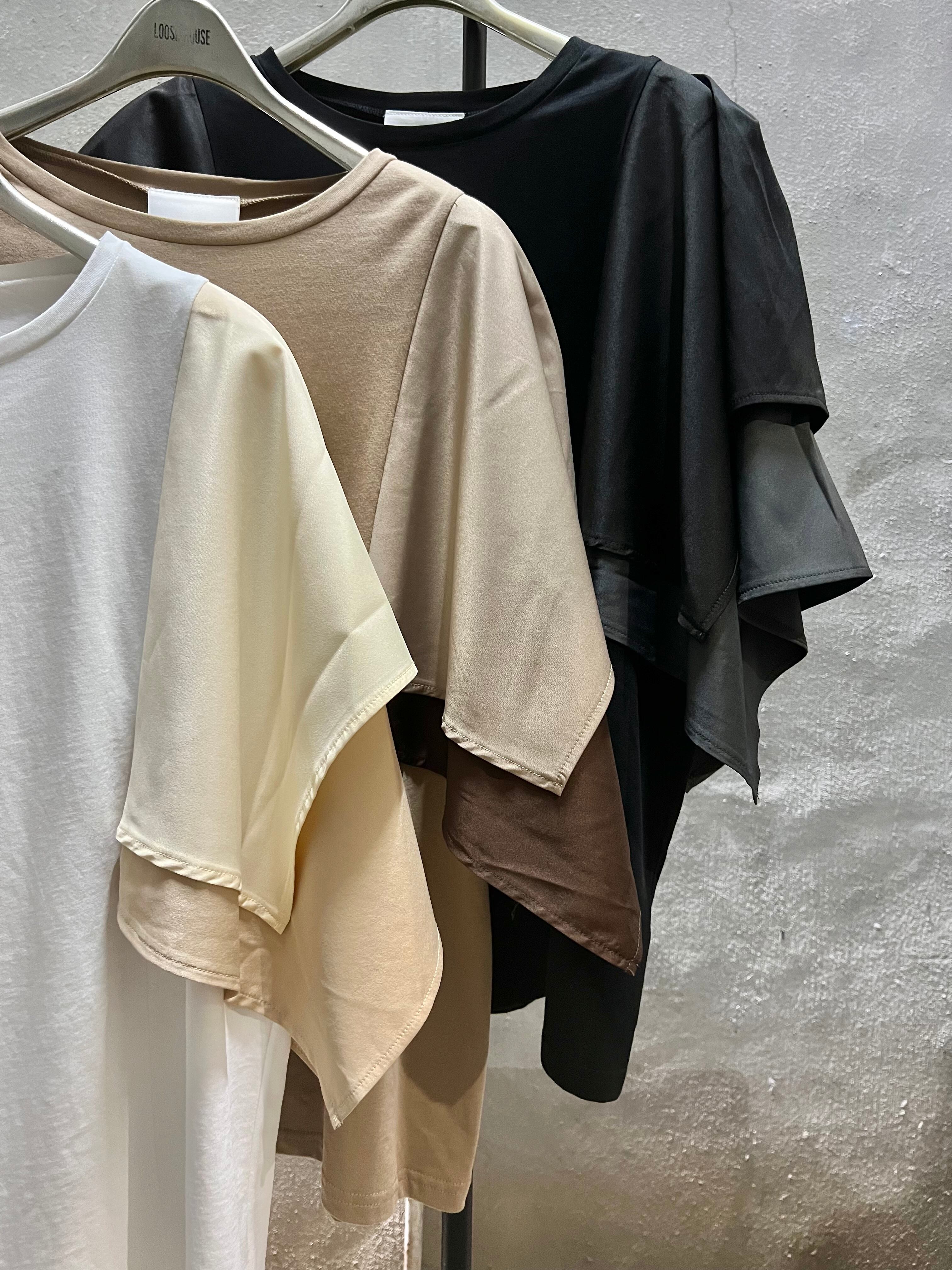 mix color sleeve design tops トップス デザイントップス フリルスリーブ