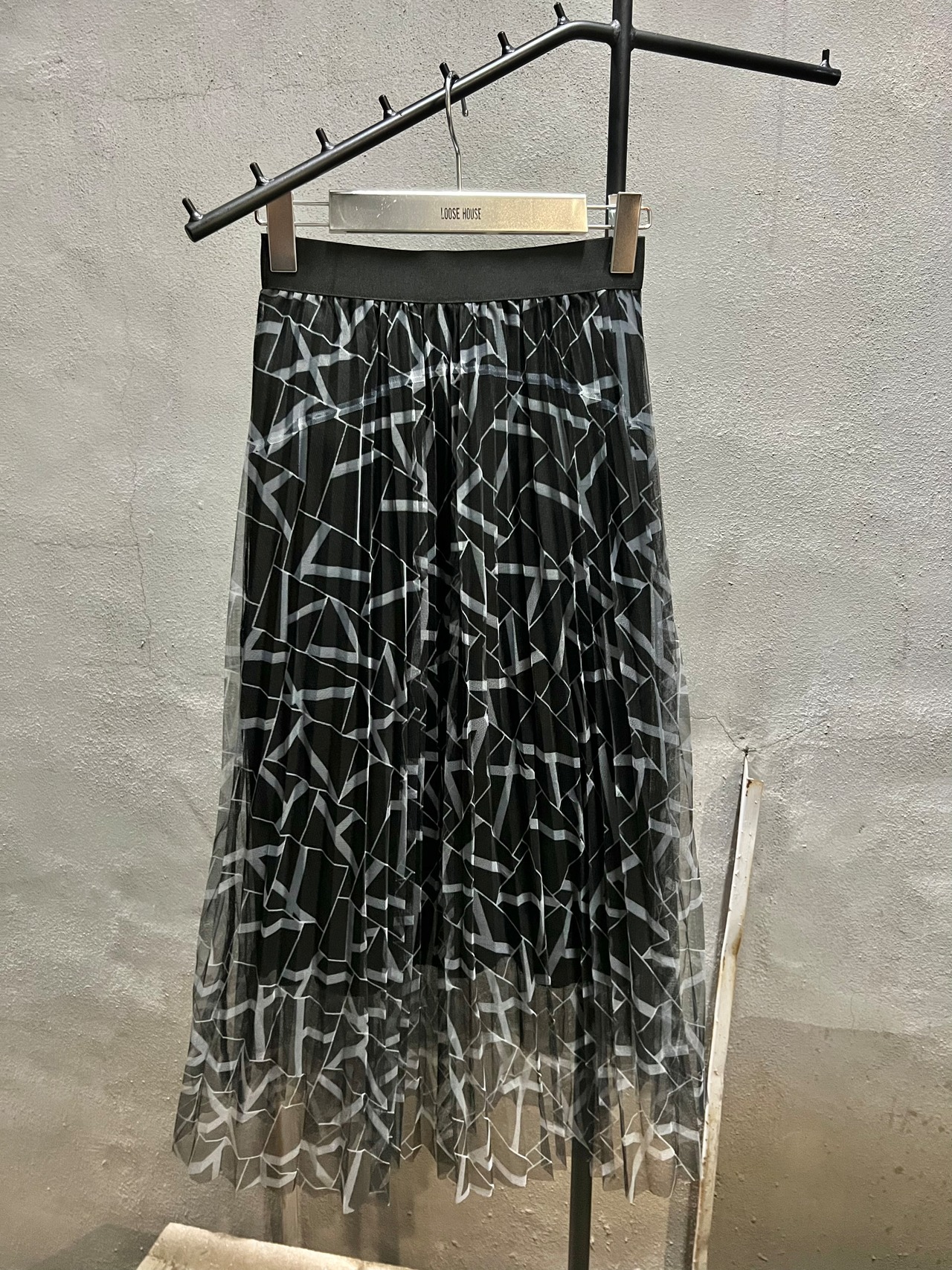 geometric pattern print tulle pleats skirt スカート チュール プリーツ ゴムウエスト
