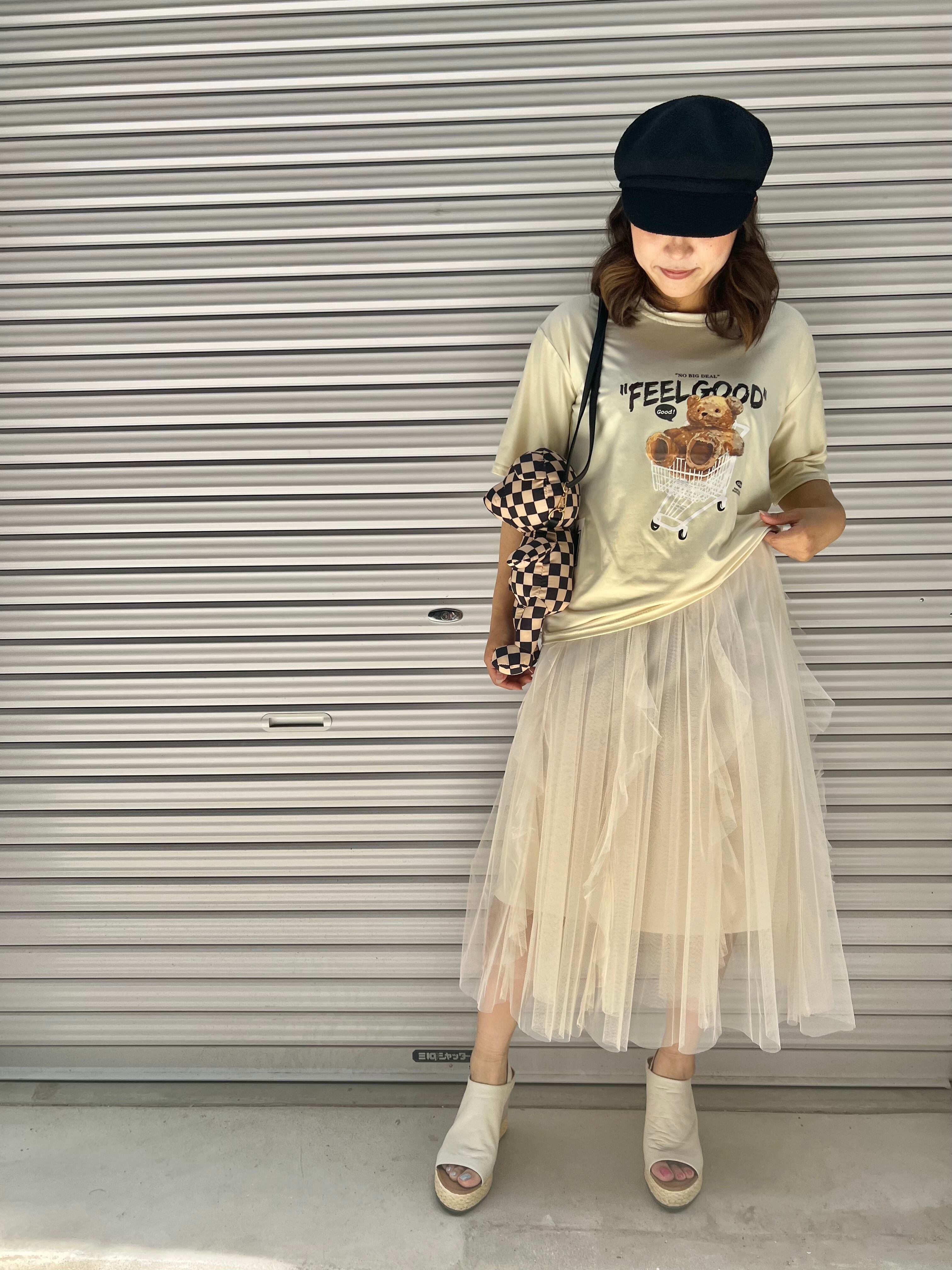 tulle mesh frill trimming long skirt スカート チュール フリル ゴムウエスト