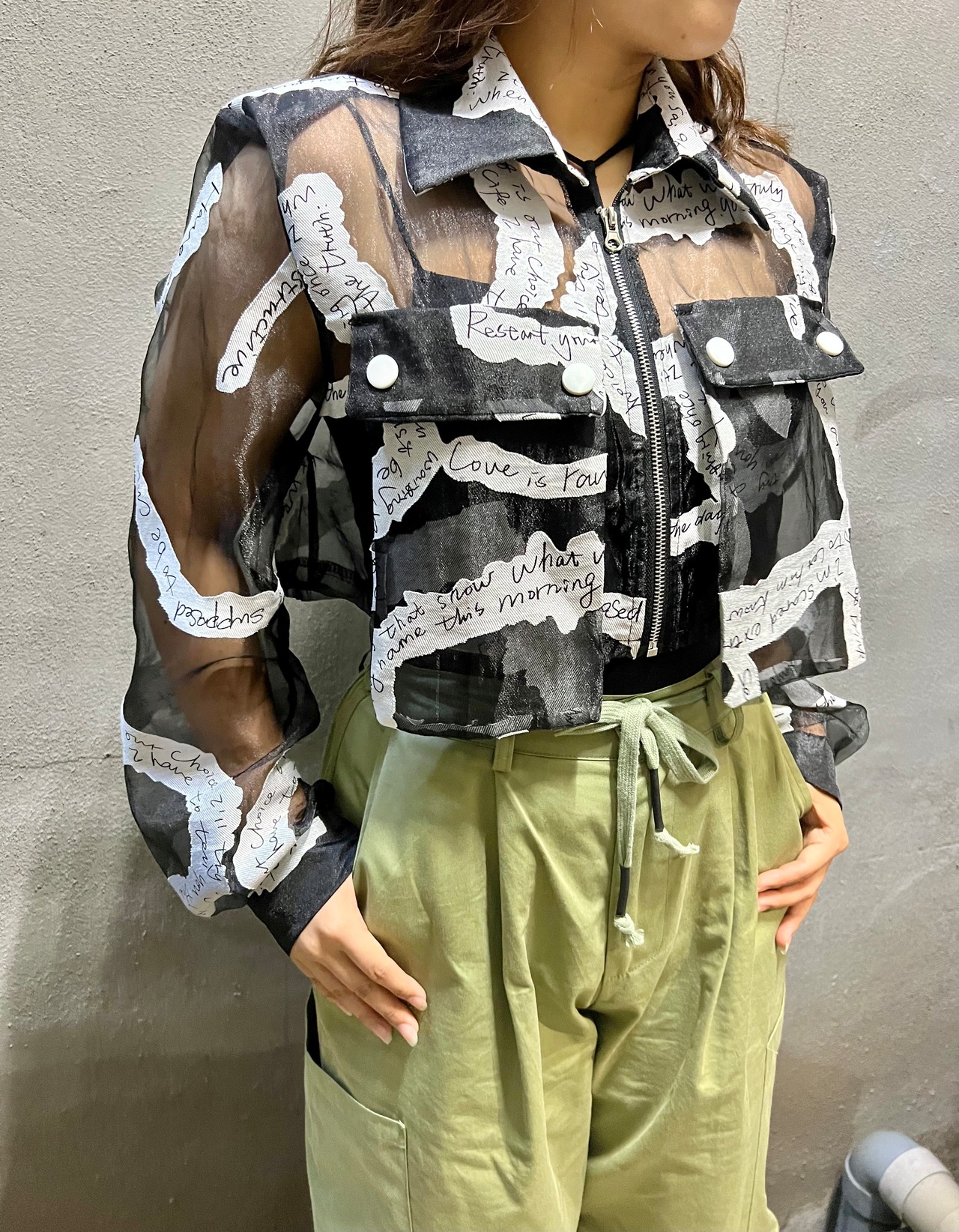 organdy text ribbon short jacket ジャケット ショート丈 オーガンジー テキスト リボン シースルー 透け感