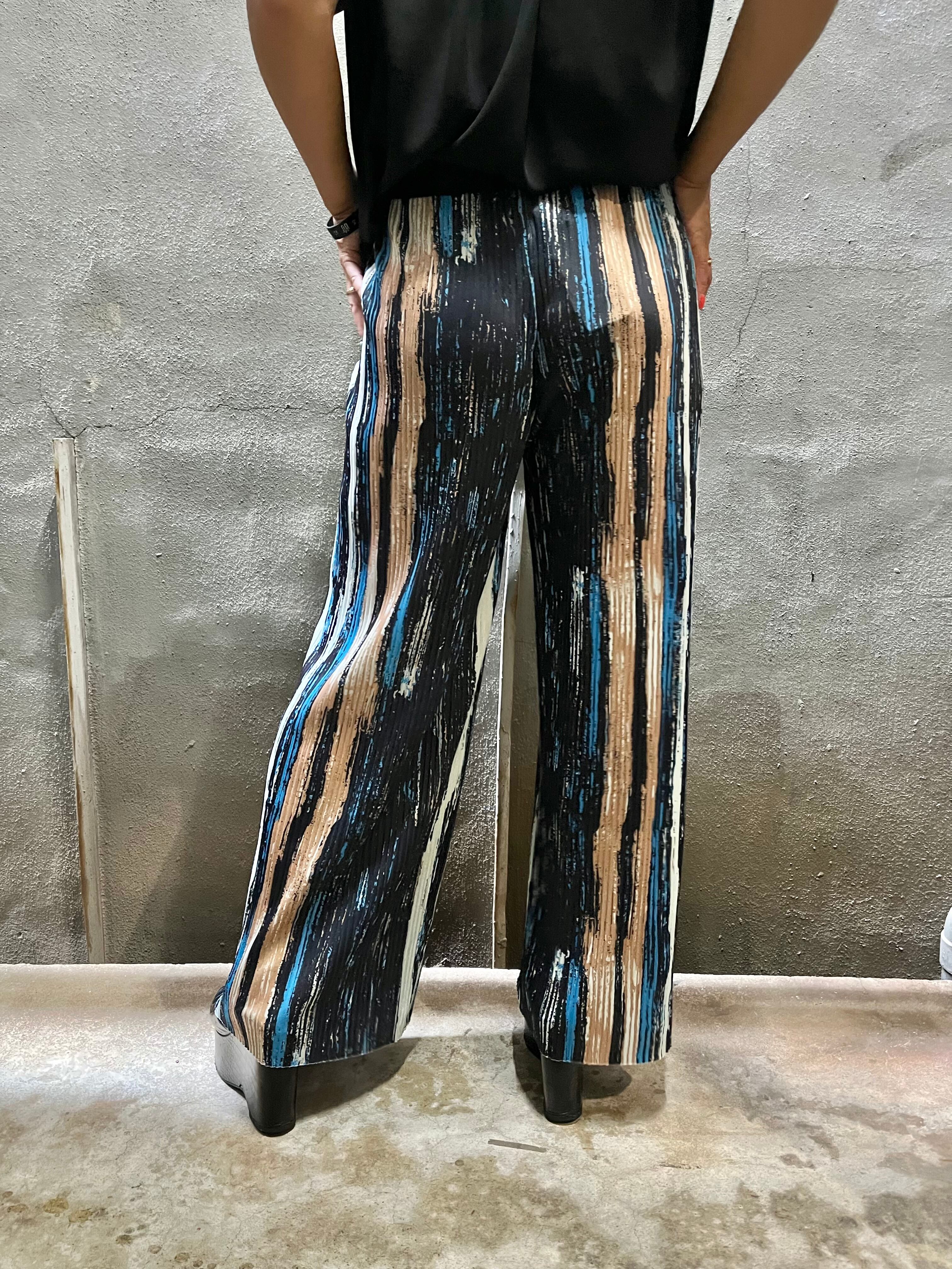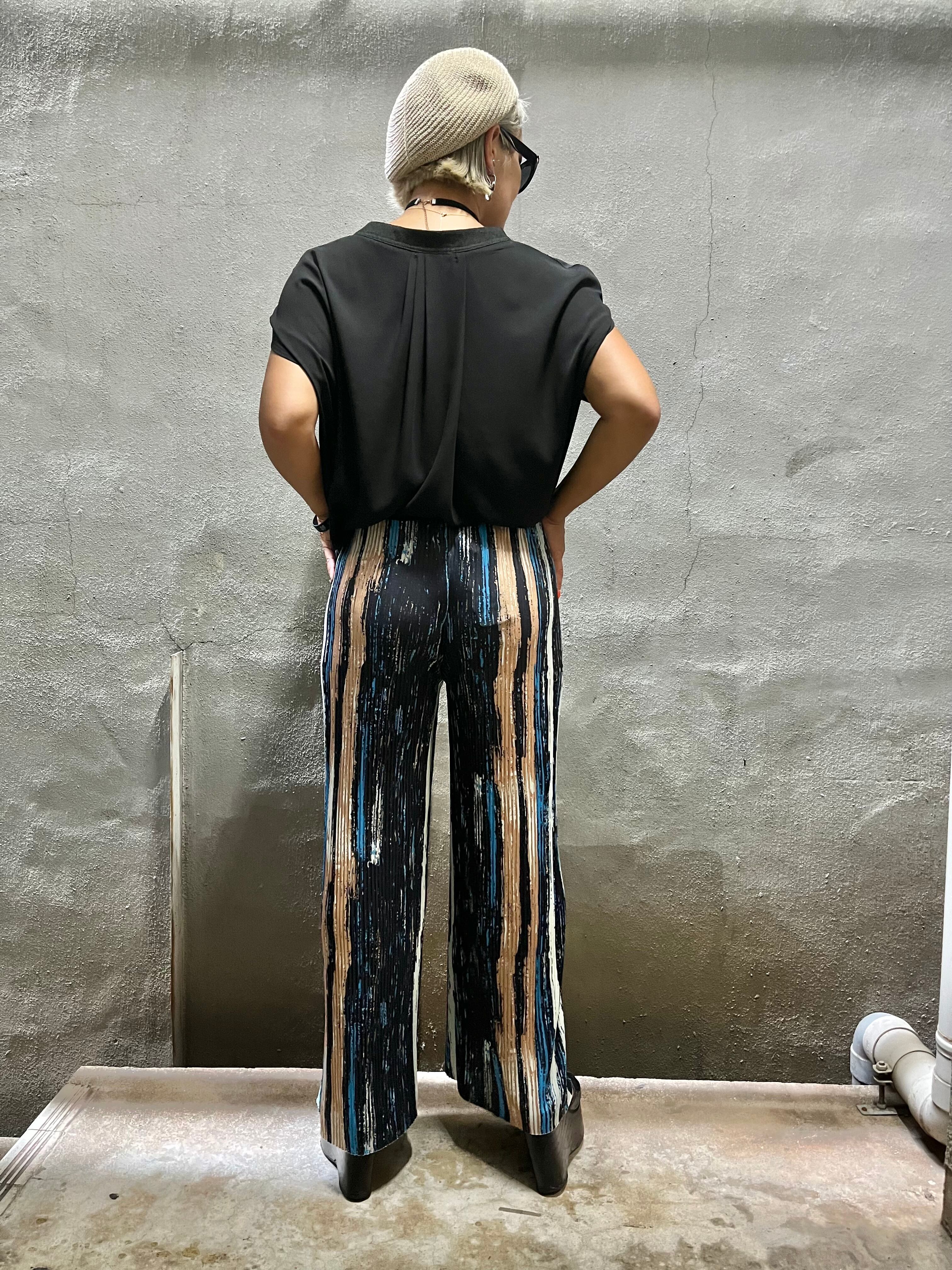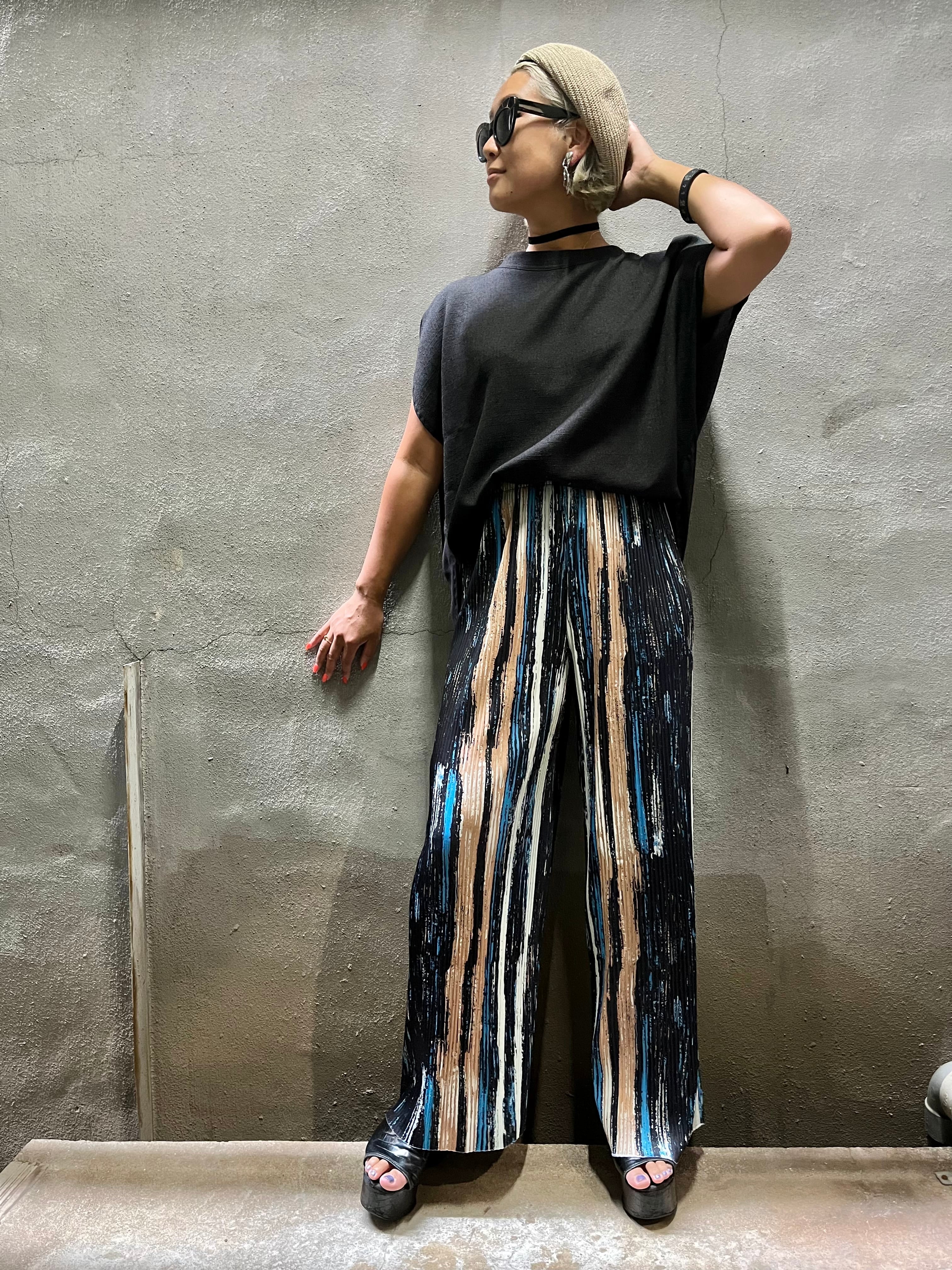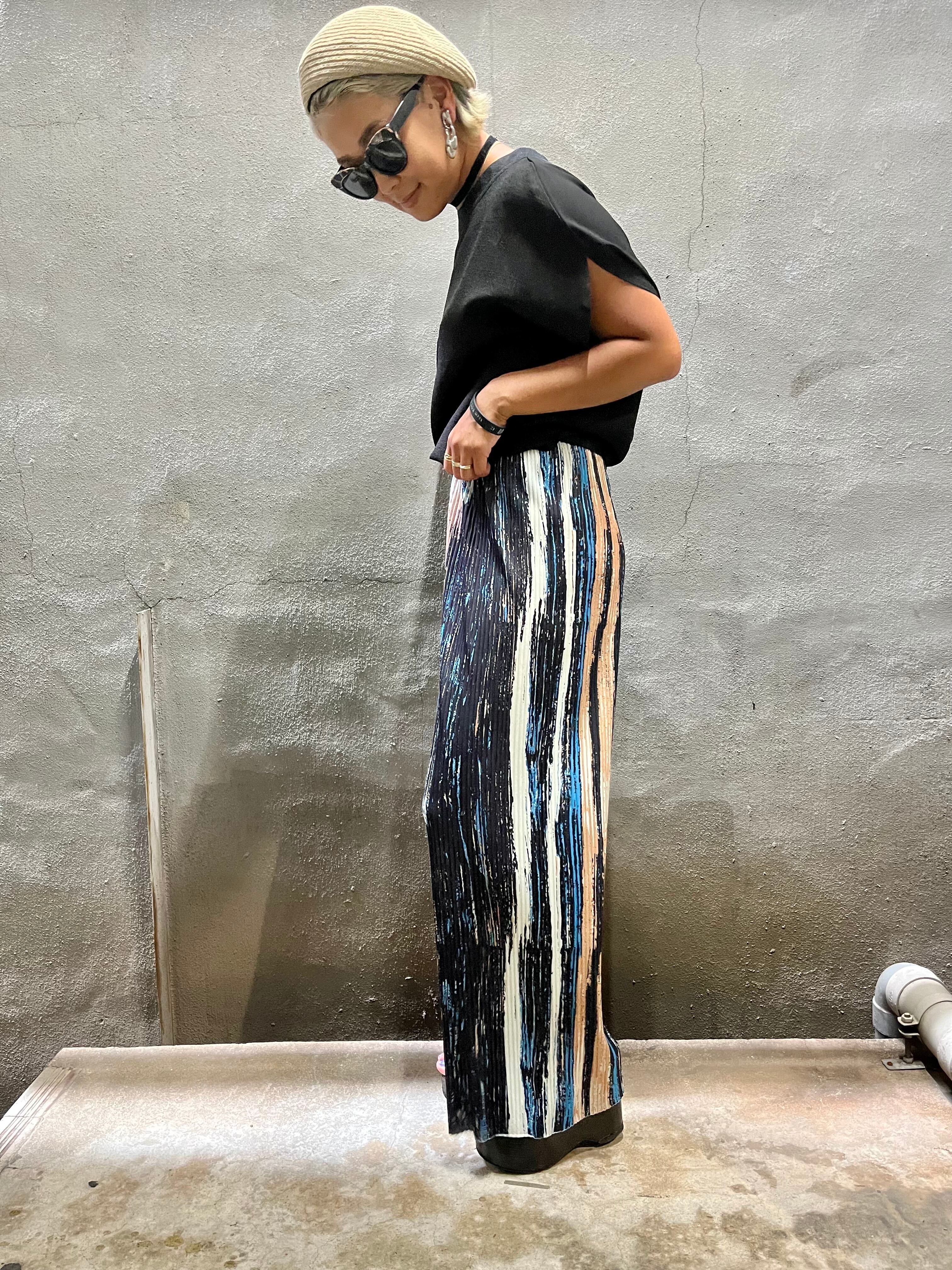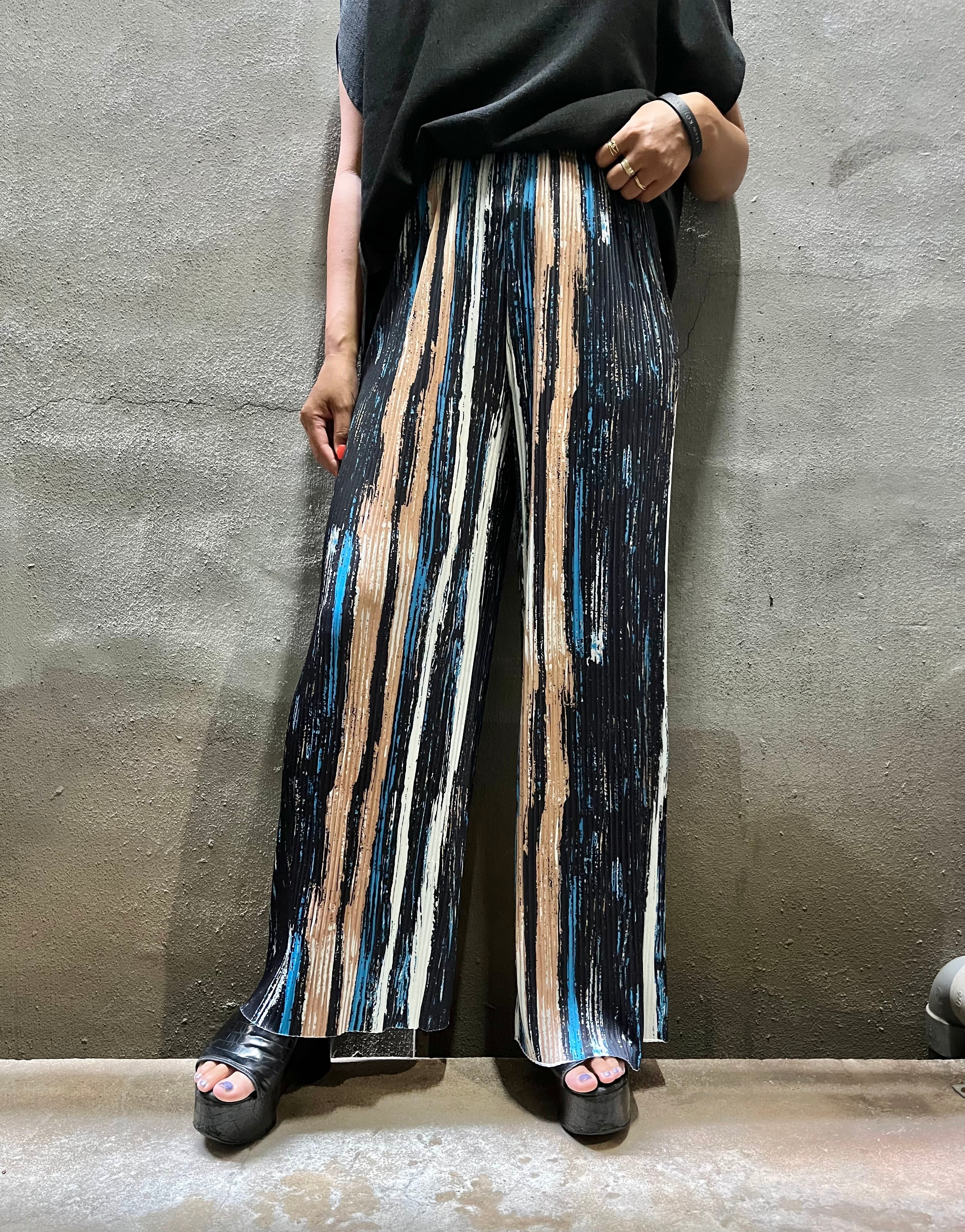 multicolored stripe pleats long pants パンツ 柄パンツ プリーツ ストライプ ゴムウエスト
