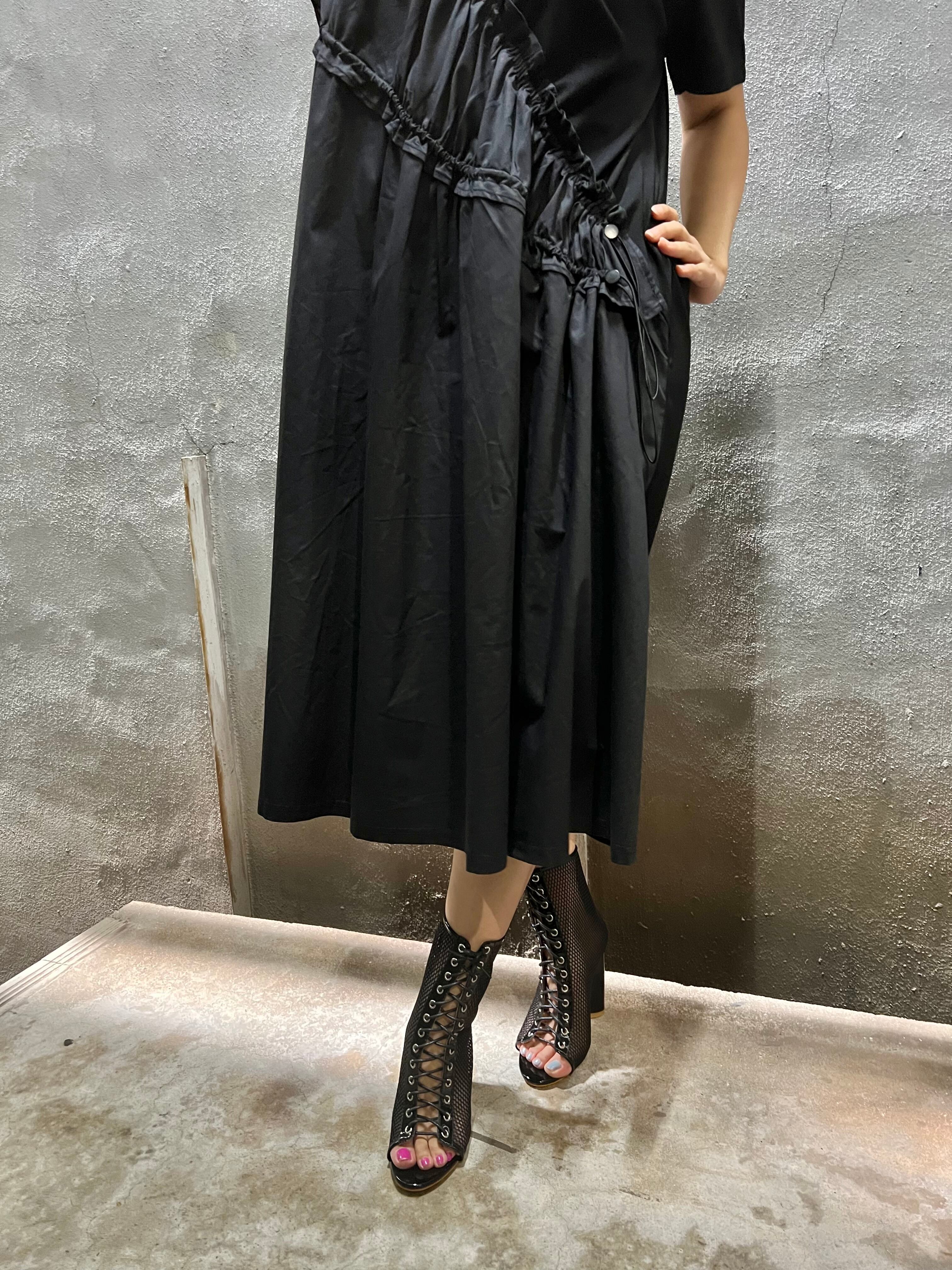 different fabric change gather flare one-piece ワンピース ワンピ デザインワンピ 黒 ギャザー 異素材