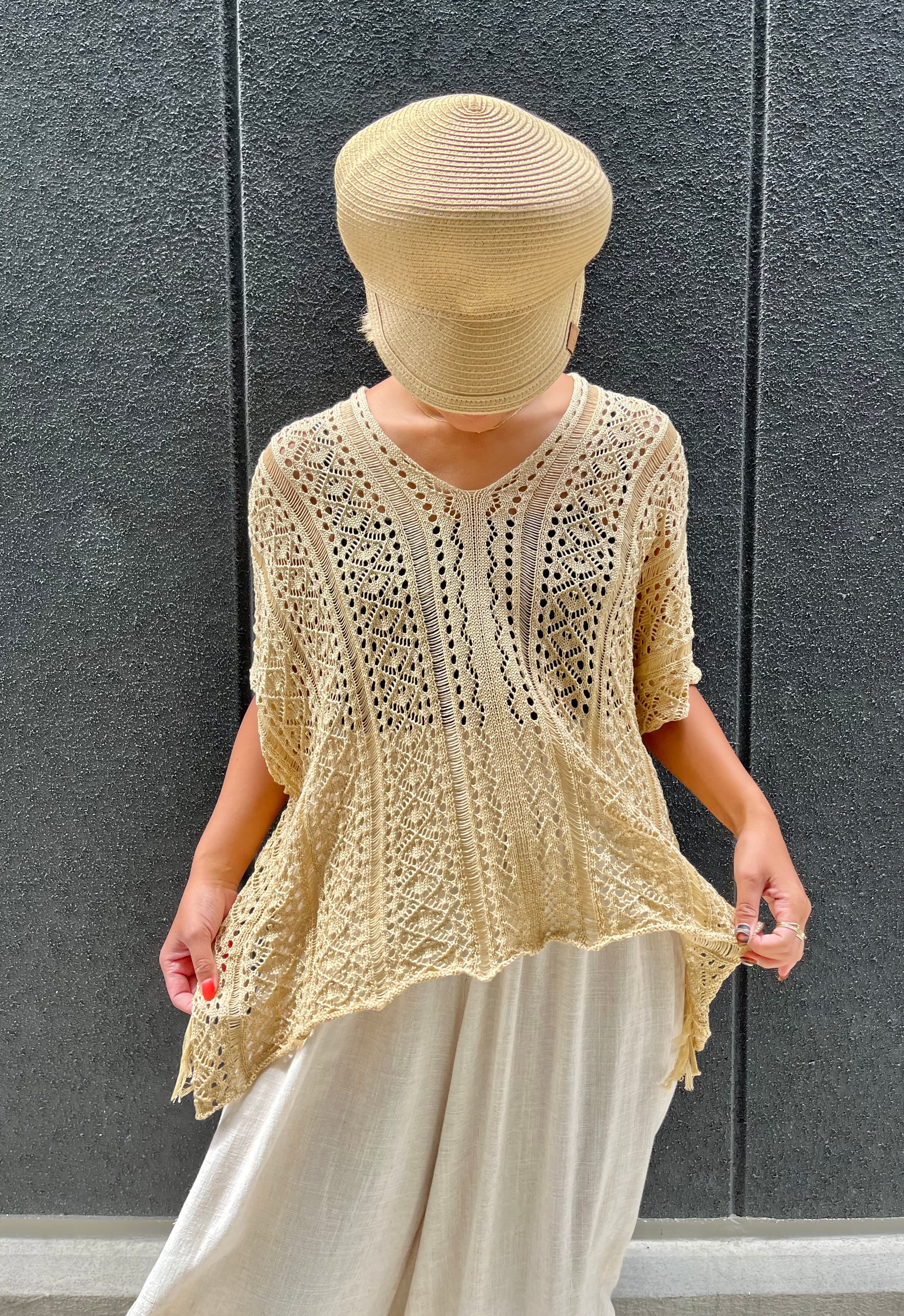 drop shoulder design knit tops ニット 柄編み ドロップショルダー ポンチョ風