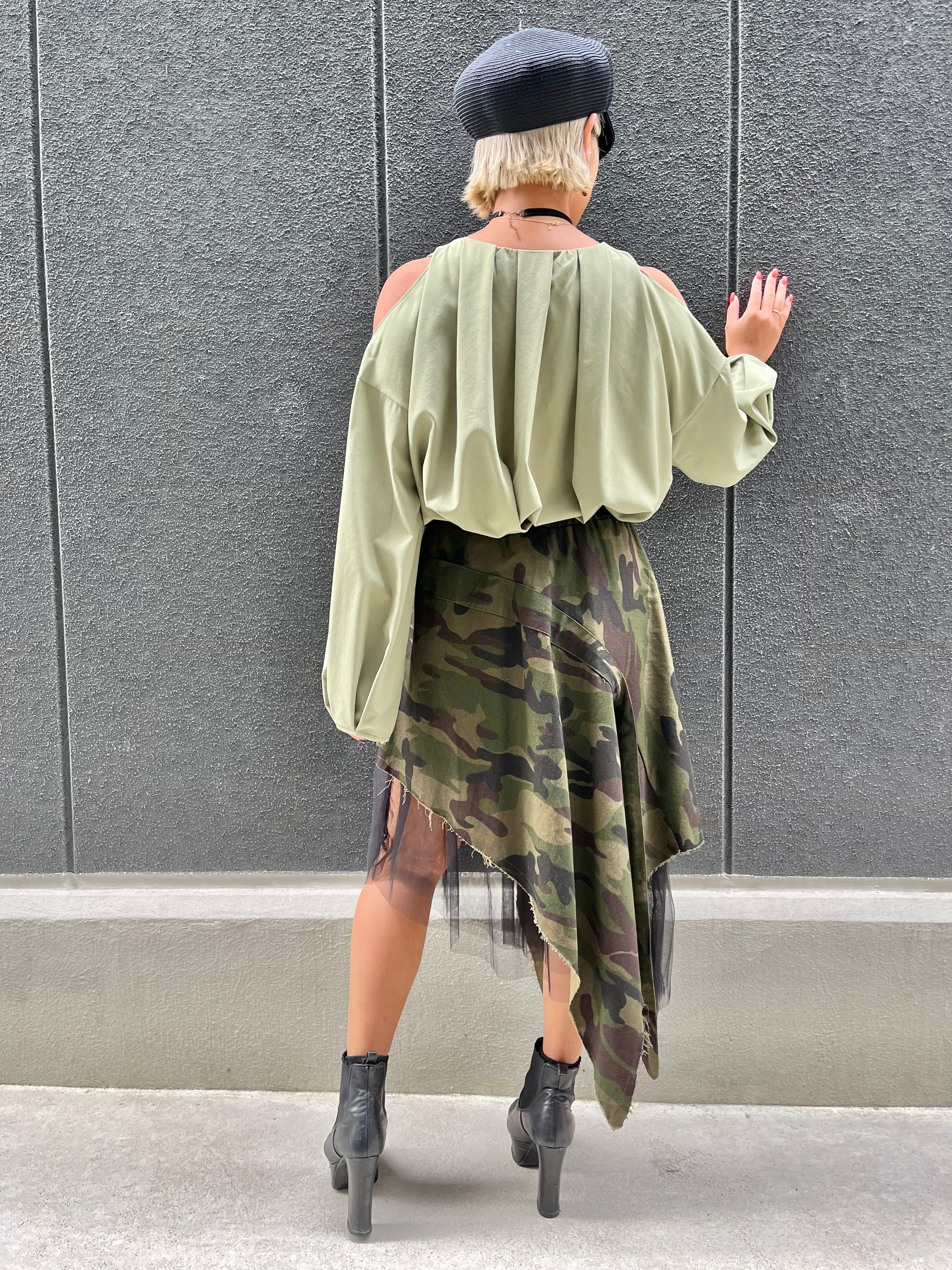 damage cut tulle irregular change print skirt スカート ゼブラ カモフラ チュール アシンメトリー デザインスカート