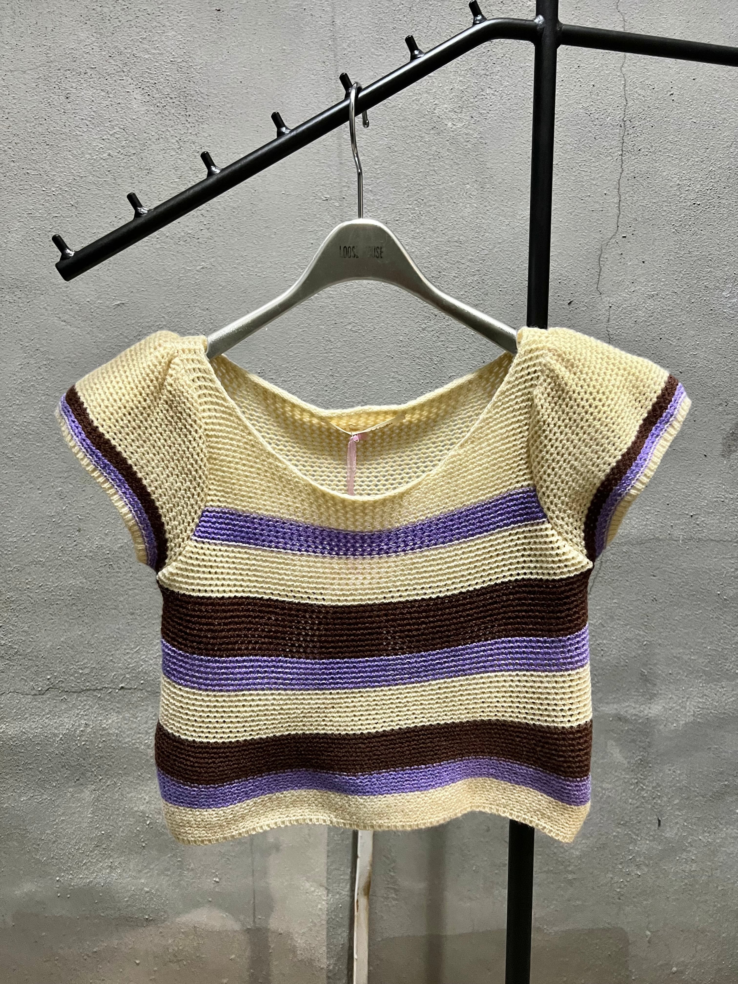 color border short sleeve knit tops トップス ニット カラフル ボーダー