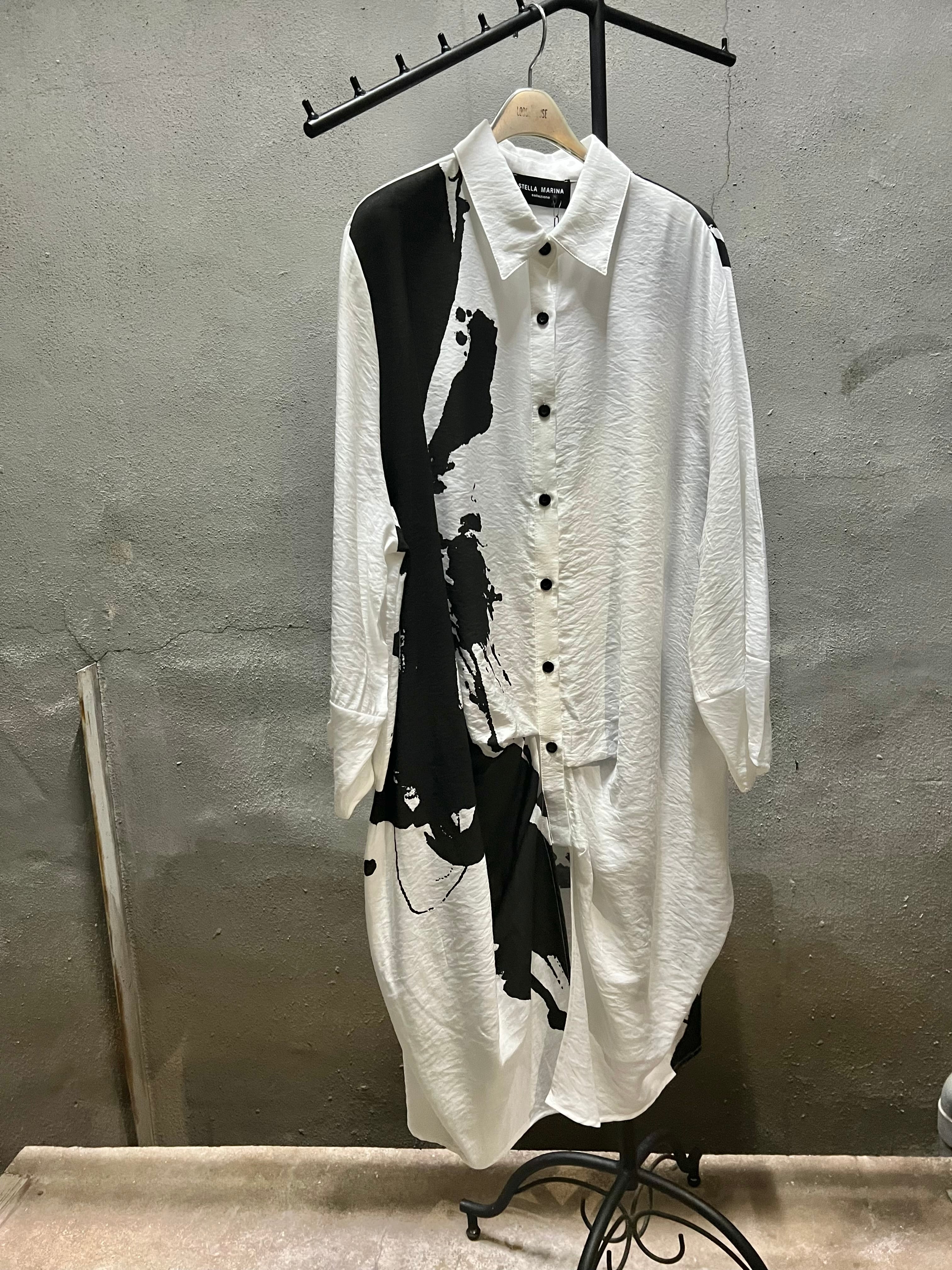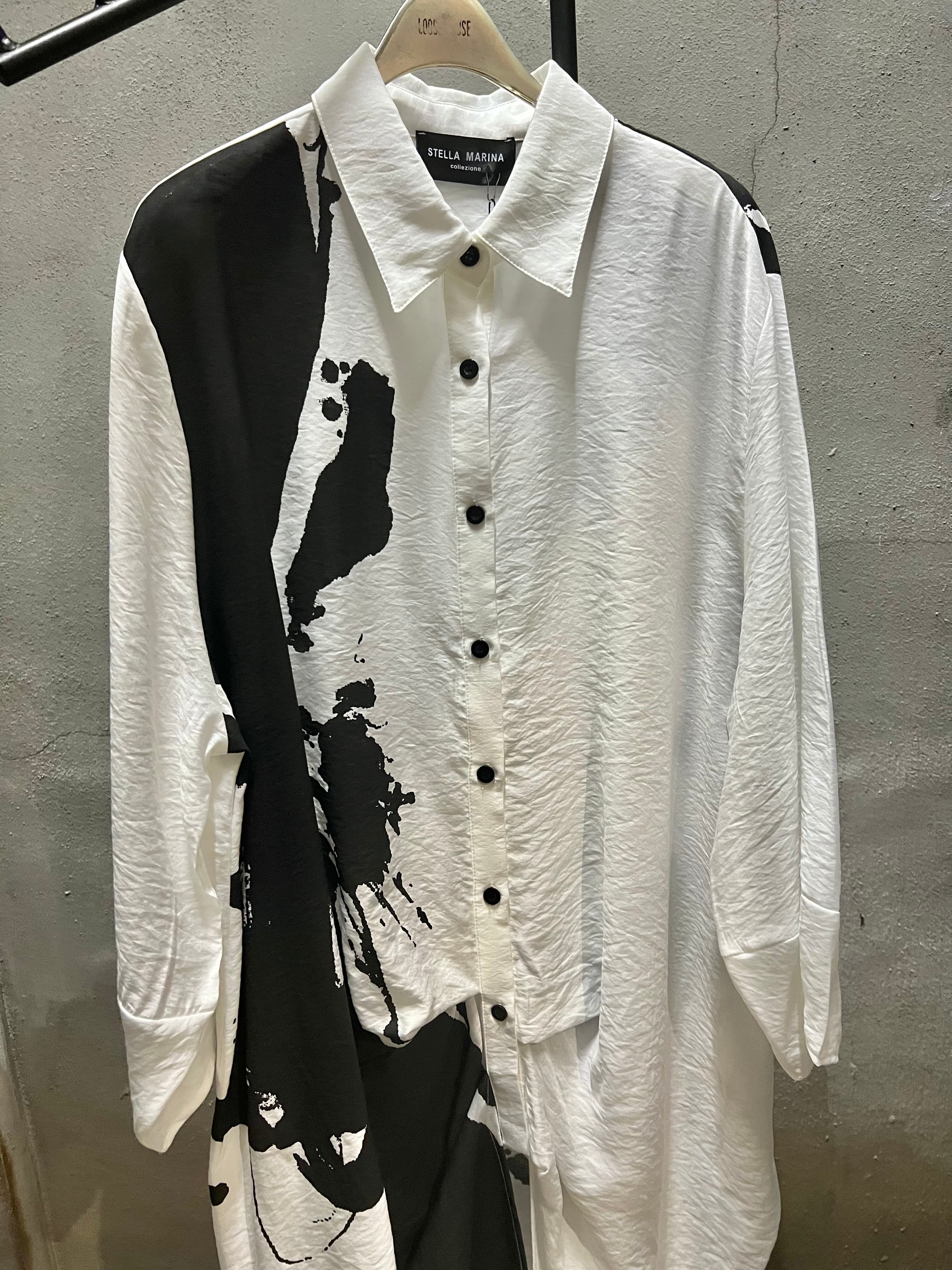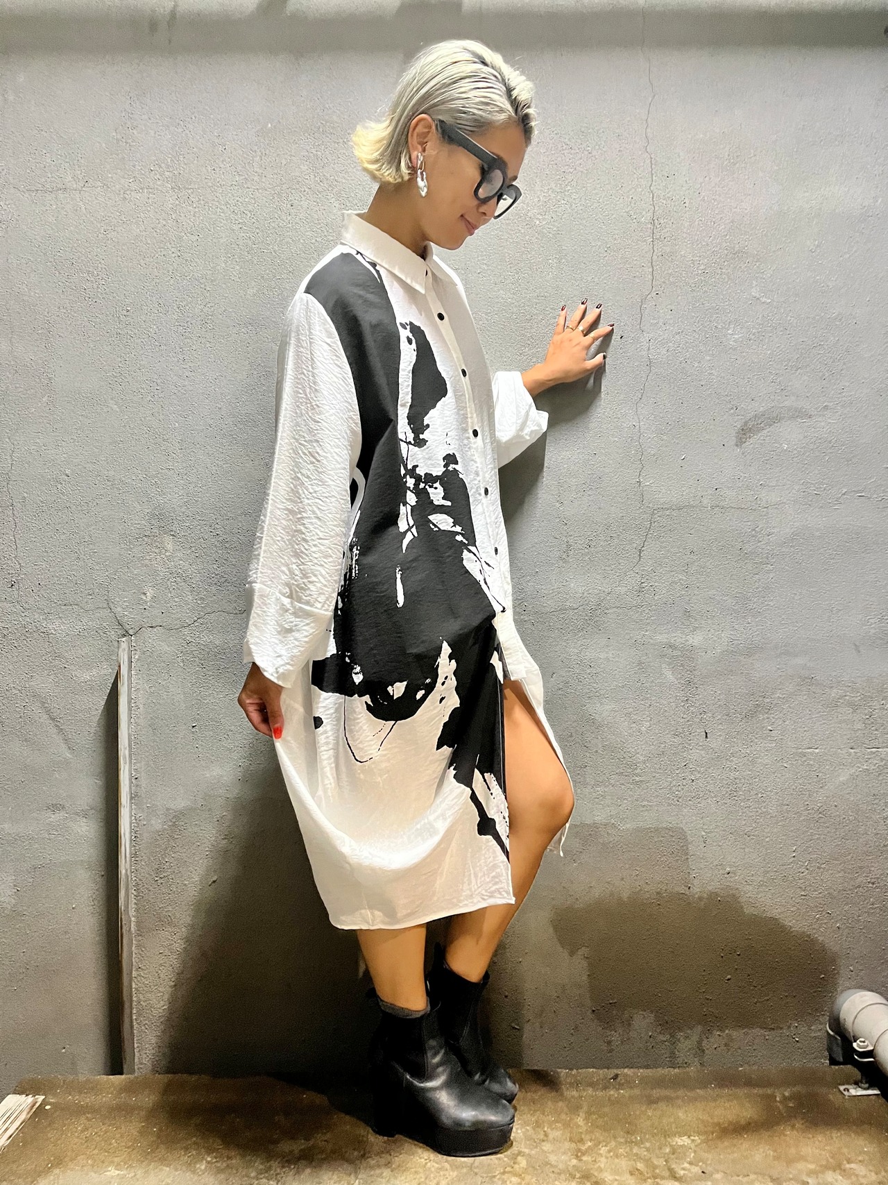 ink pattern design shirt tunic シャツ チュニック デザインシャツ インク デザイン バイカラー 白黒 モノトーン モード